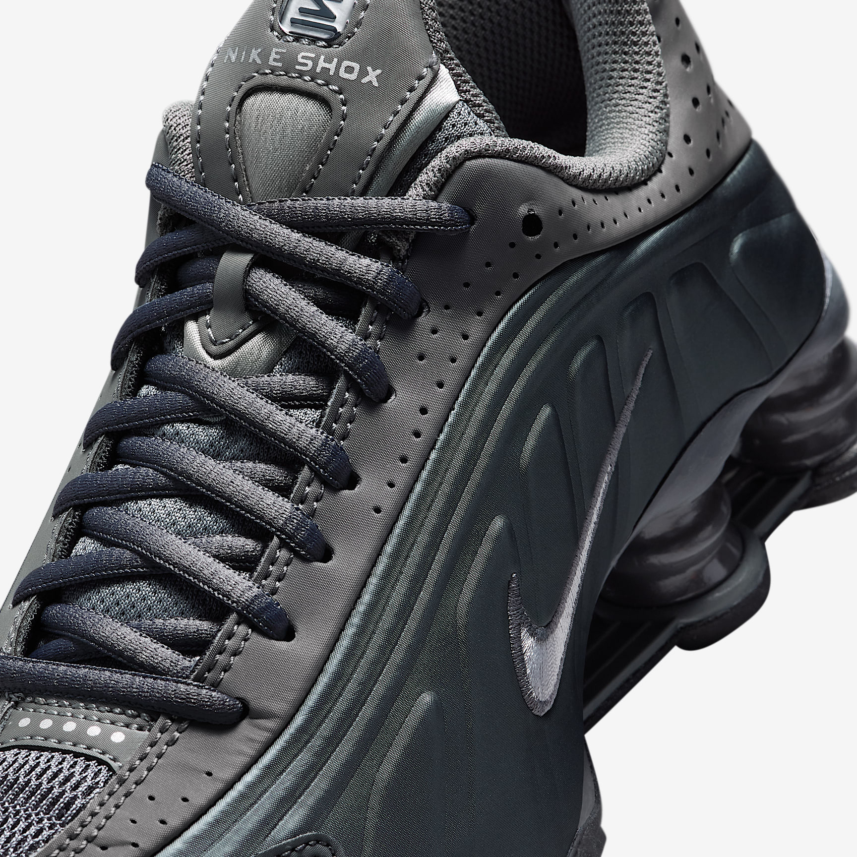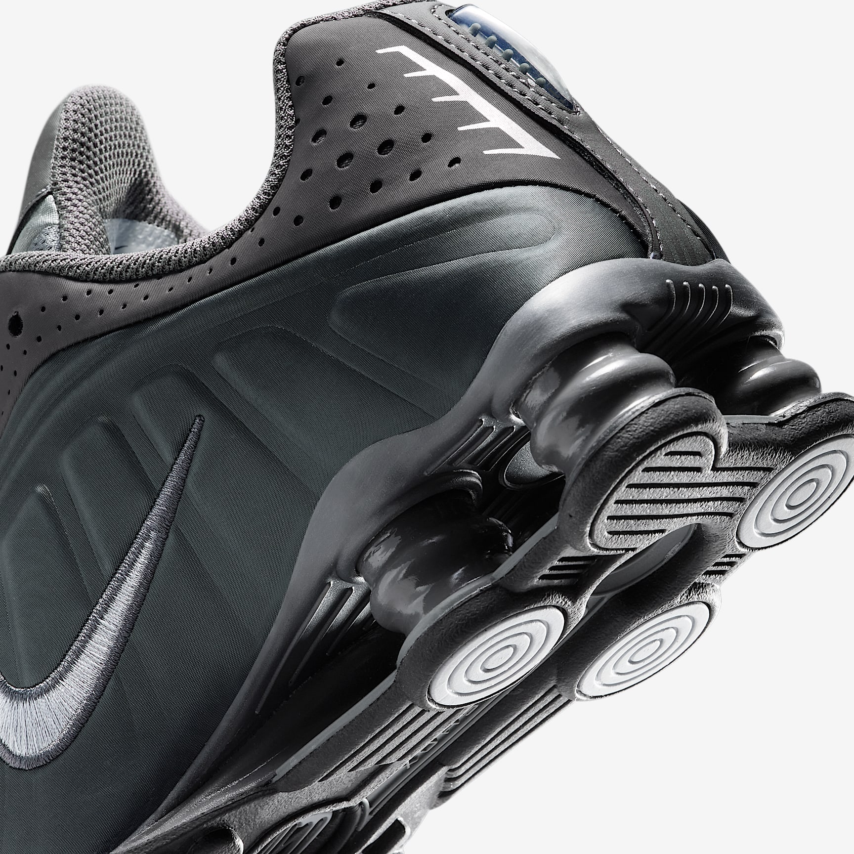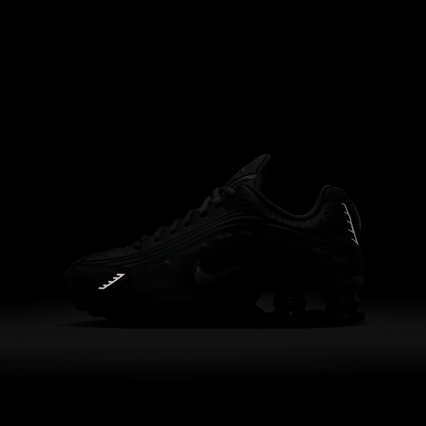 A recrafted version of the early 2000s icon, the Nike Shox R4 replicates the original with its futuristic design lines and performance-inspired cushioning. Nike Shox columns in the heel distribute weight to maximise comfort and provide a bold look. Benefits * The synthetic upper with laser perforations is breathable and durable. * Originally designed to support the stride of runners, Nike Shox columns compress and regain shape for responsive cushioning. * The modified, circular Waffle outsole offers great traction. Product Details * Classic laces * Synthetic leather * Rubber outsole