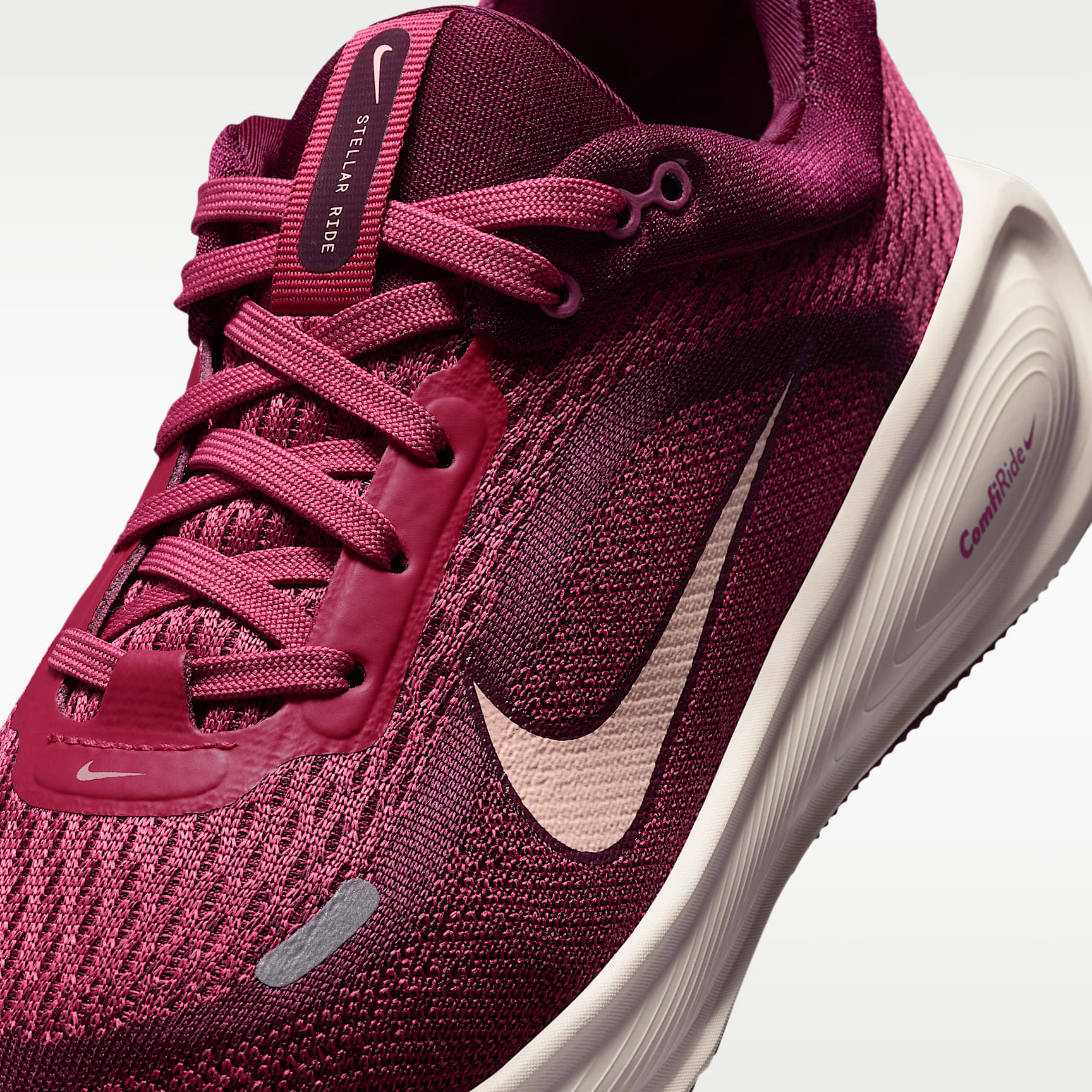 With a thick stack of soft and responsive ComfiRide foam, the Nike Stellar Ride is built for the long run. Mesh up top provides the breathability you need to go the distance. A padded, low-cut collar gives you a plush, premium fit. Lace up and find your stride, whatever the distance. A Stellar Ride The thick ComfiRide foam midsole takes design cues from the Vomero and provides soft, responsive cushioning. Breathable upper Engineered mesh on the upper helps your feet breathe for a comfortable-but-contained feel however far you run. Durable Traction The rubber outsole provides durable traction with multiple tread patterns for added grip. Product Details * Classic laces * Pull tab on tongue * Reflective design details * Not intended for use as Personal Protective Equipment (PPE)