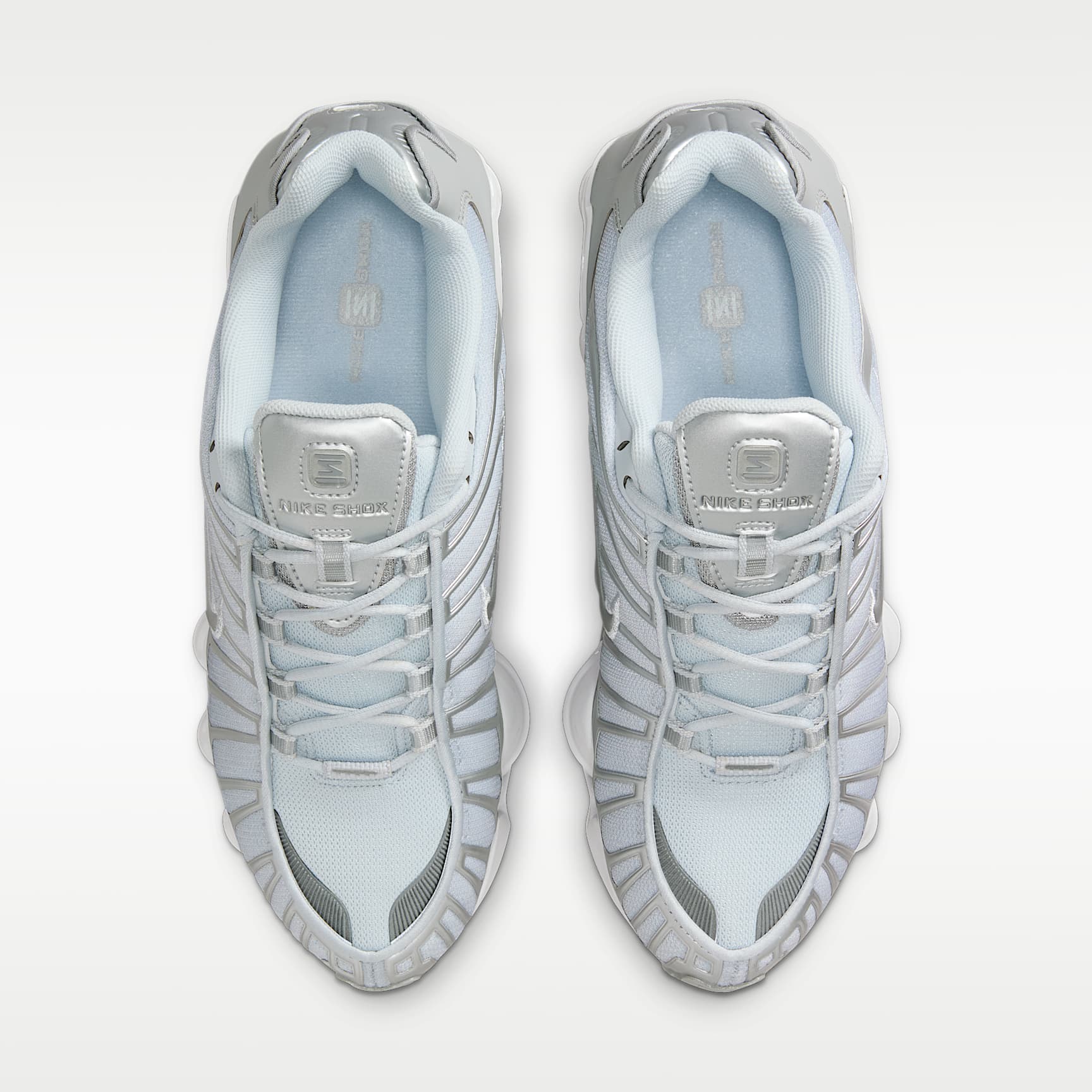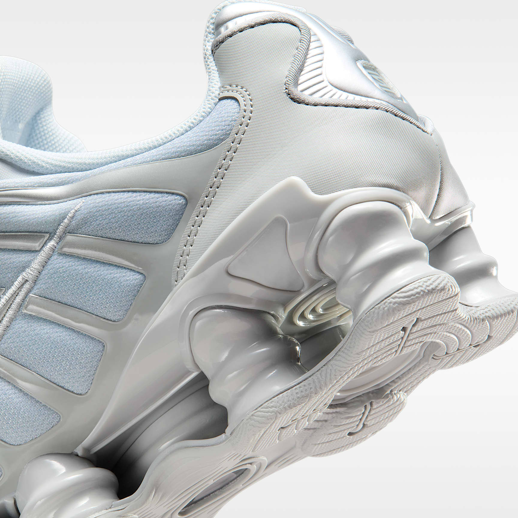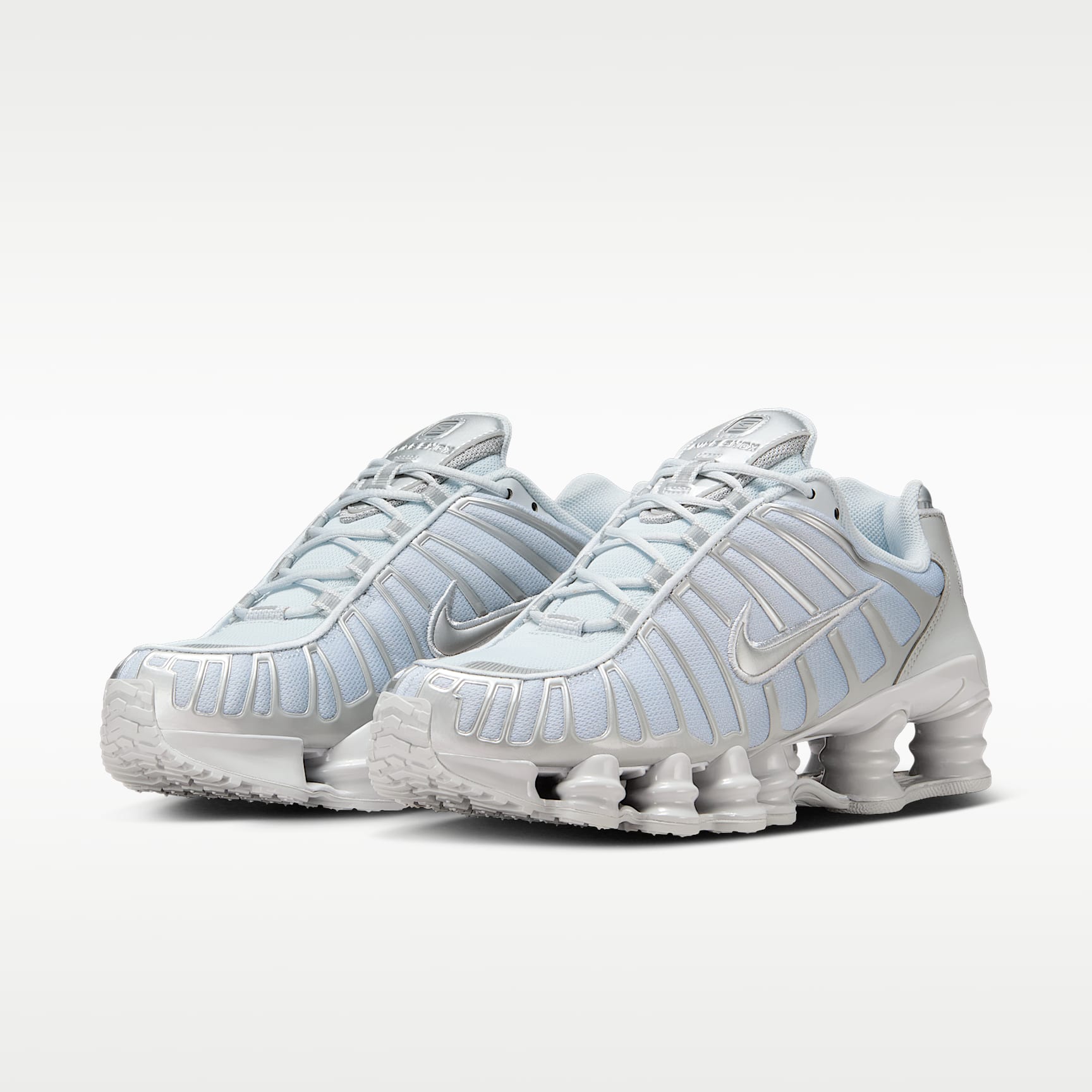 The Nike Shox TL takes mechanical cushioning to the next level. A recrafted version of the 2003 icon, it features breathable mesh in the upper and full-length Nike Shox technology for optimal impact absorption and a bold look on the streets. Benefits * Nike Shox technology combines resilient, flexible columns with moderator plates for outstanding cushioning that compresses and regains its shape. * Combination upper with full TPU cage is near-exact replica of the 2003 Nike Shox TL. * Molded overlays throughout midfoot provide support and snug fit. * TPU plate in heel between midsole and Nike Shox technology helps provide lateral stability and support. Product Details * Foam midsole * Rubber outsole