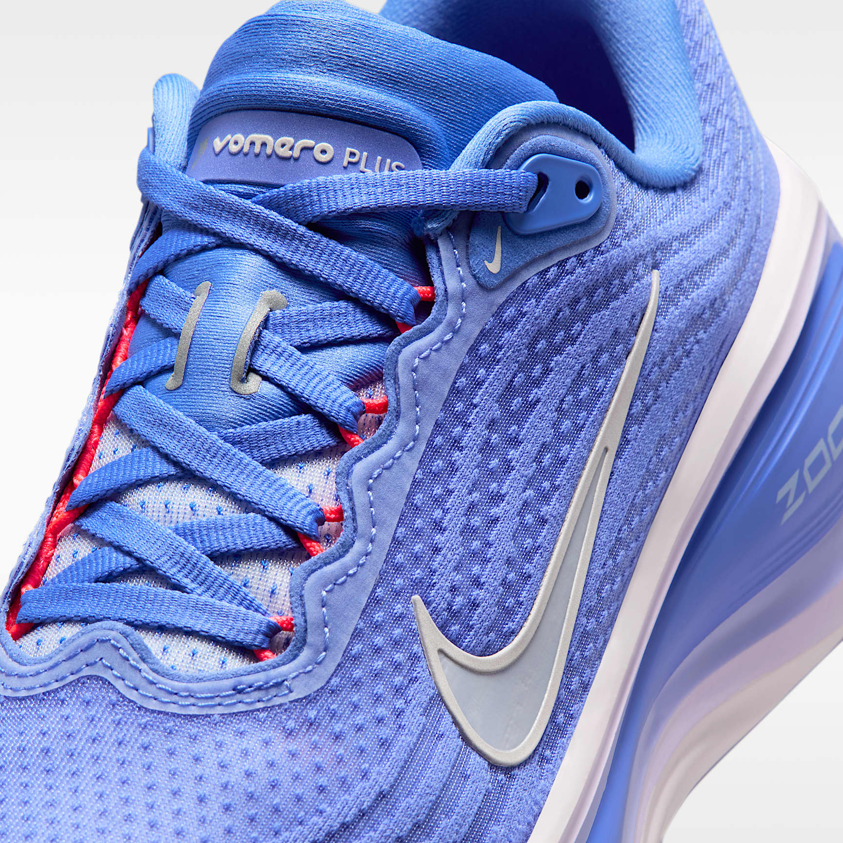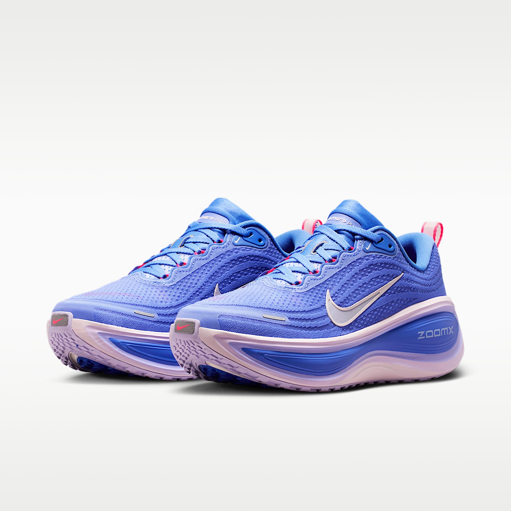 A tall stack of responsive, light foam offers next-level cushioning. Take maximum cushioning to the next level with the Vomero Plus. It provides an ultra-comfortable ride for everyday runs thanks to a mountainous stack of full-length ZoomX foam, the most responsive foam in the industry. Plus, the engineered mesh upper is made from soft, breathable yarn for a comfortable fit. ZoomX foam midsole The ultra-responsive ZoomX foam midsole delivers Nike's highest energy return. Soft upper An engineered mesh upper provides soft breathability. Durable Traction The high-abrasion rubber outsole offers durable traction. Product Details * Weight: Approx. 242g/8.5 oz (Women's US 8) * Heel-to-toe drop: 10mm * Webbed lace loops for an adjustable fit * Reflective design details * Not intended for use as personal protective equipment (PPE)