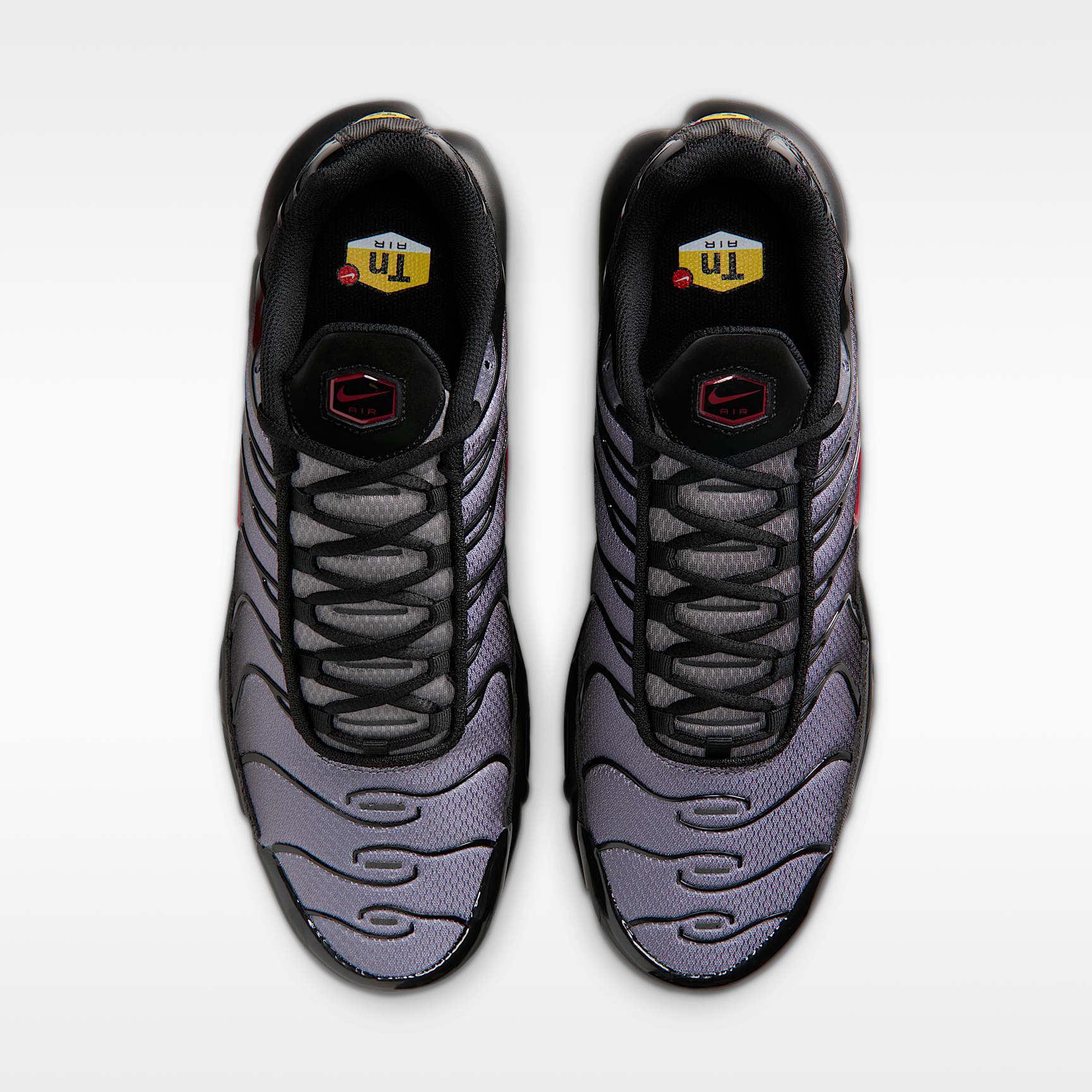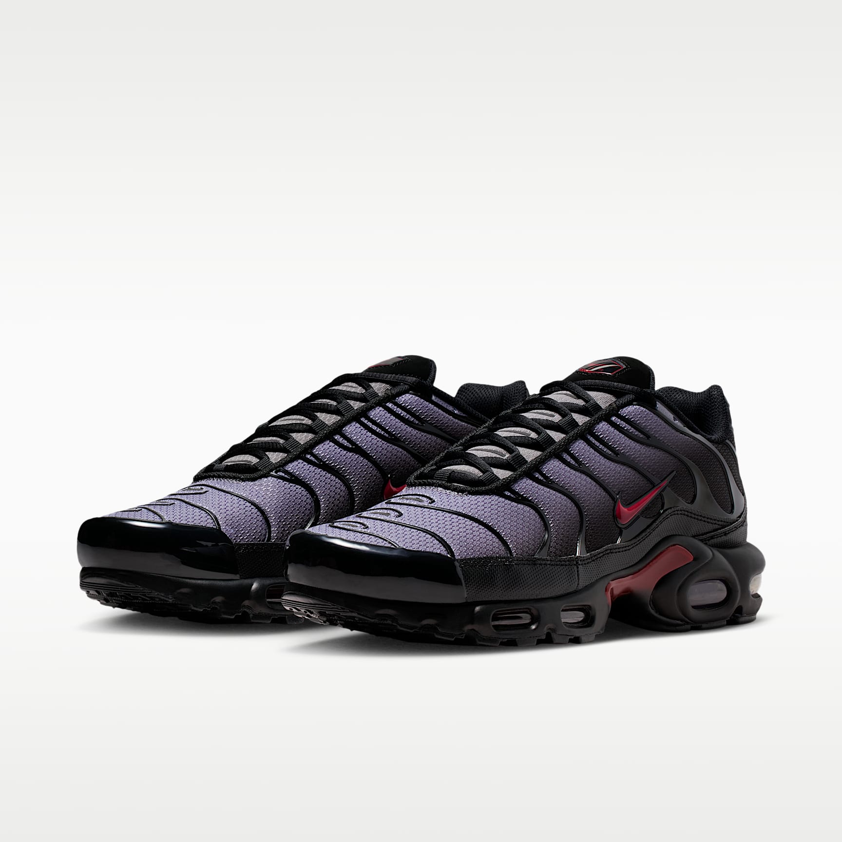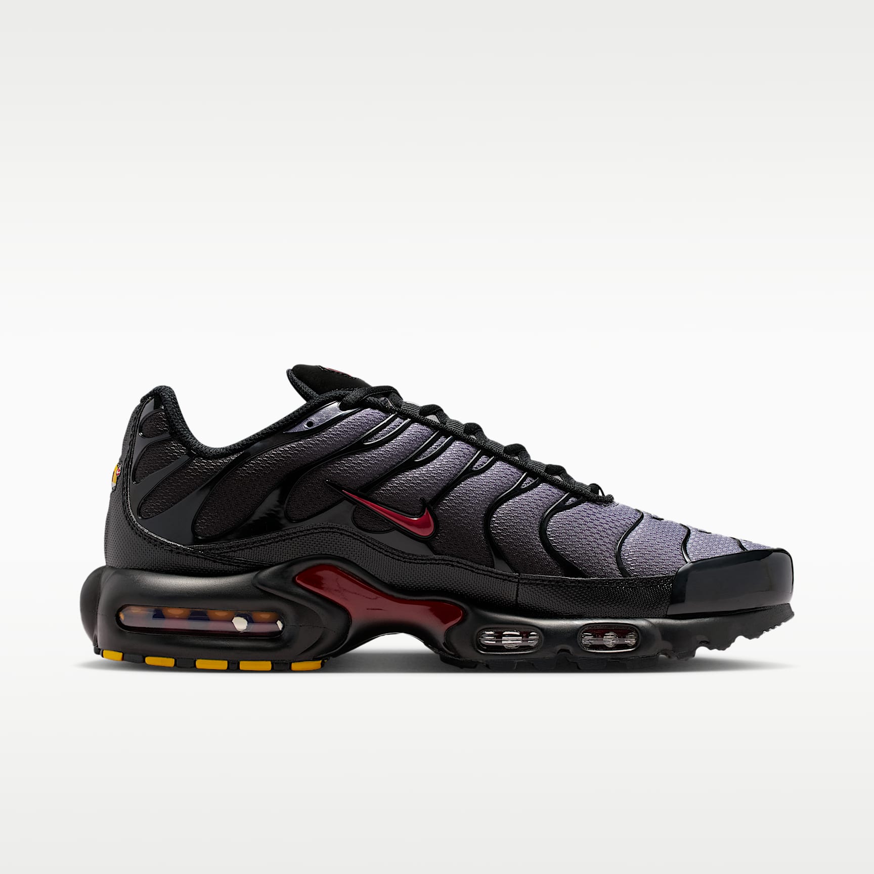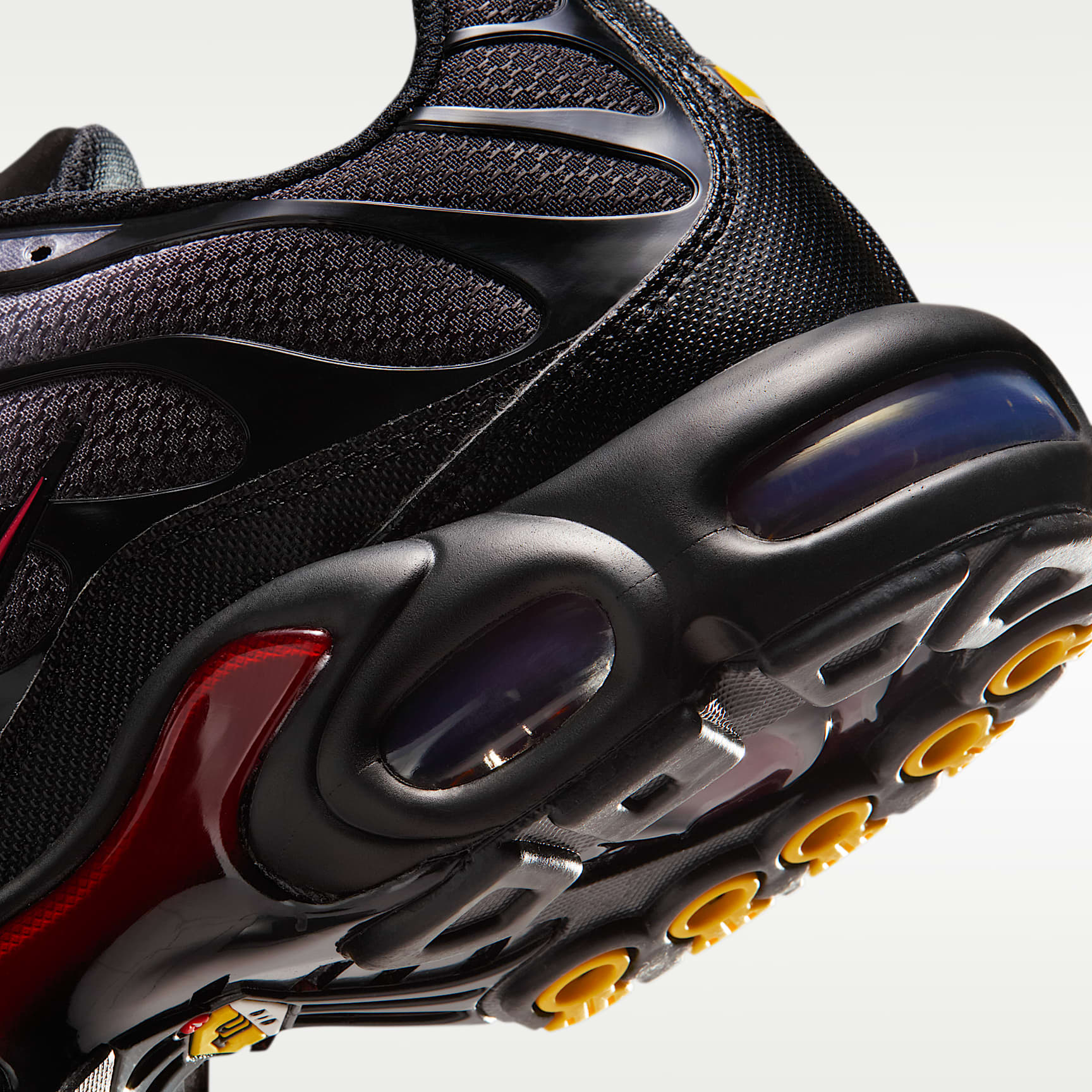 Let your attitude have the edge in the Air Max Plus. Its iconic caging adds heat to your look while airy mesh keeps you cool. And the visible cushioning lets you celebrate your defiant style in comfort. Benefits * Mesh upper with synthetic leather accents is durable and breathable. * Midfoot arch band provides a supportive feel. * Originally designed for performance running, Nike Air units provide lightweight cushioning. * Rubber outsole gives you durable traction. Product details * Not intended for use as personal protective equipment (PPE)