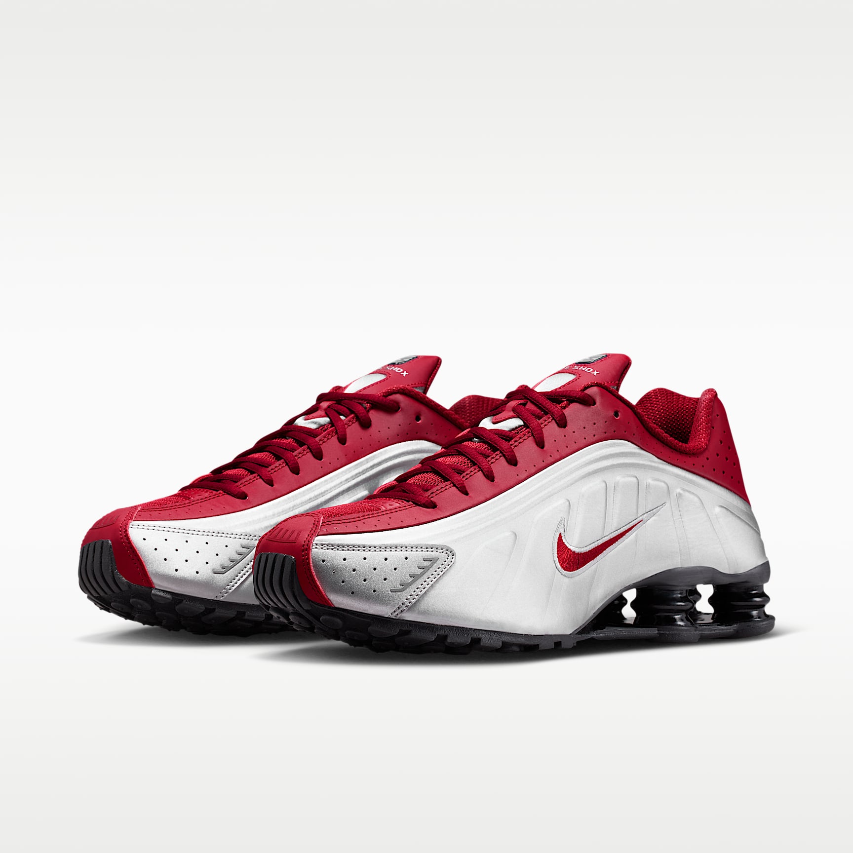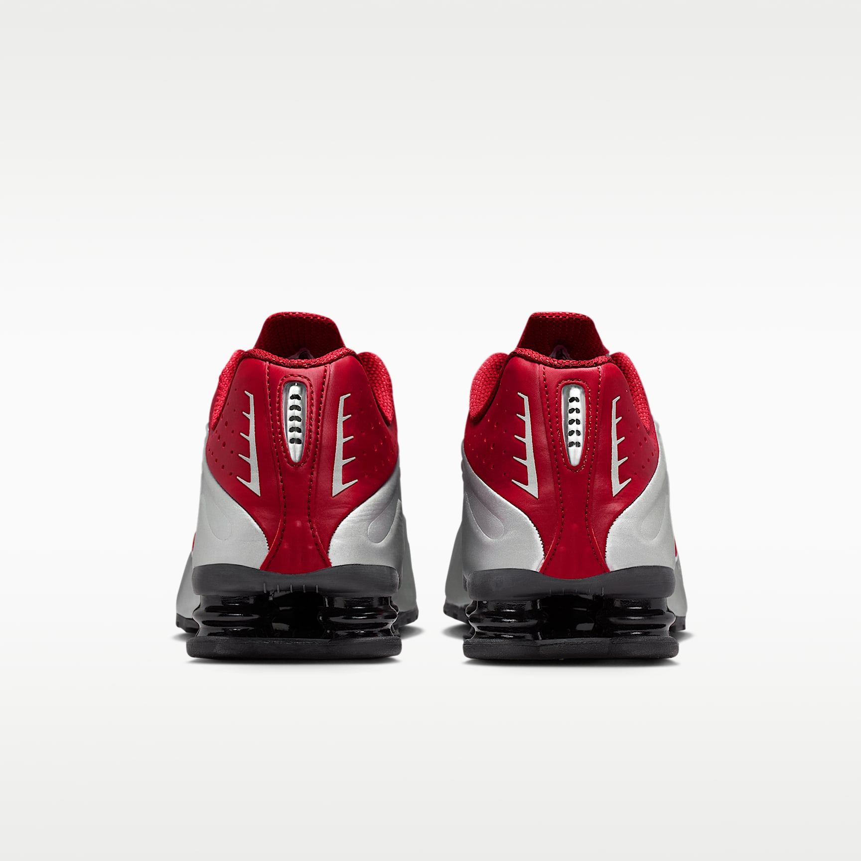 A recrafted version of the early 2000s icon, the Nike Shox R4 replicates the original with its futuristic design lines and performance-like cushioning. Nike Shox columns in the heel distribute weight to maximize comfort while providing a bold look on the streets. Benefits * Synthetic and textile upper is soft and durable. * Nike Shox technology features resilient, flexible columns that compress and regain shape for outstanding cushioning. * Modified, circular Waffle outsole offers great traction. * Laser perforations throughout provide ventilation. Product Details * Foam midsole * Rubber outsole * Not intended for use as Personal Protective Equipment (PPE)