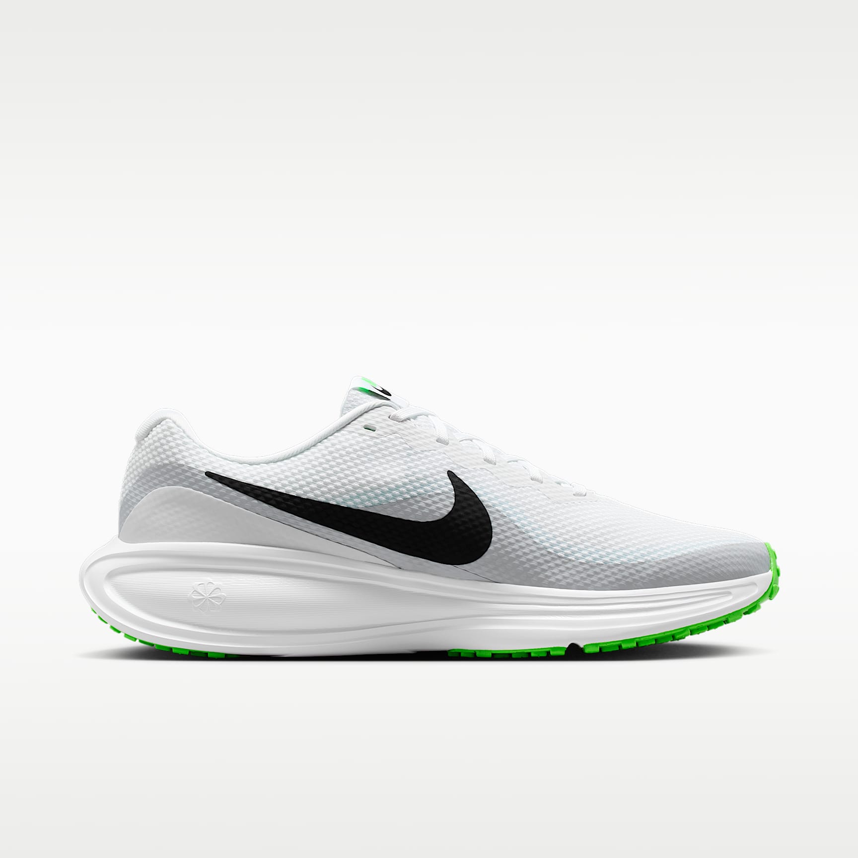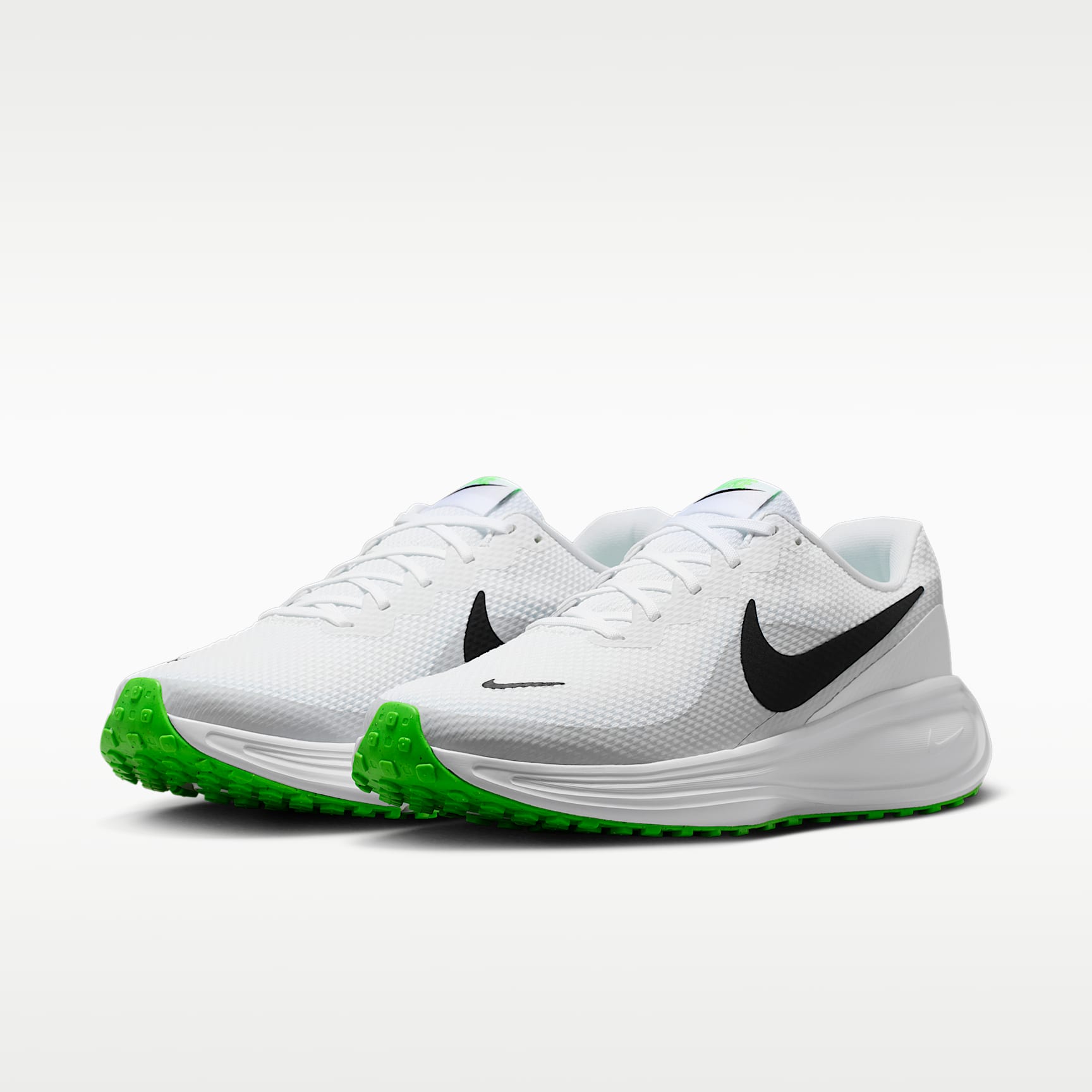 The Revolution 8 is an evolution of your faithful favourite. Every stride is cushioned thanks to a foam midsole and a flexible forefoot that makes your steps soft. Plus, the mesh upper is even more breathable than the previous iteration, so you can run in cool, collected comfort. Mesh upper The mesh upper offers a comfortable, breathable feel. Foam midsole The foam midsole delivers intuitive cushioning through comfort-focused rocker geometry. Cushioned outsole The outsole has an intuitive Nike design and flex grooves in the forefoot that create a comfortable and cushioned effect as you run. Touch points Touch points at the heel and tongue create a natural feel as you get the shoes on and off. What's new? The mesh on the upper is more breathable than the Revolution 7, helping keep you cool. Product details * Weight: 292g approx. (men's size 9) * Heel-to-toe drop: 10mm