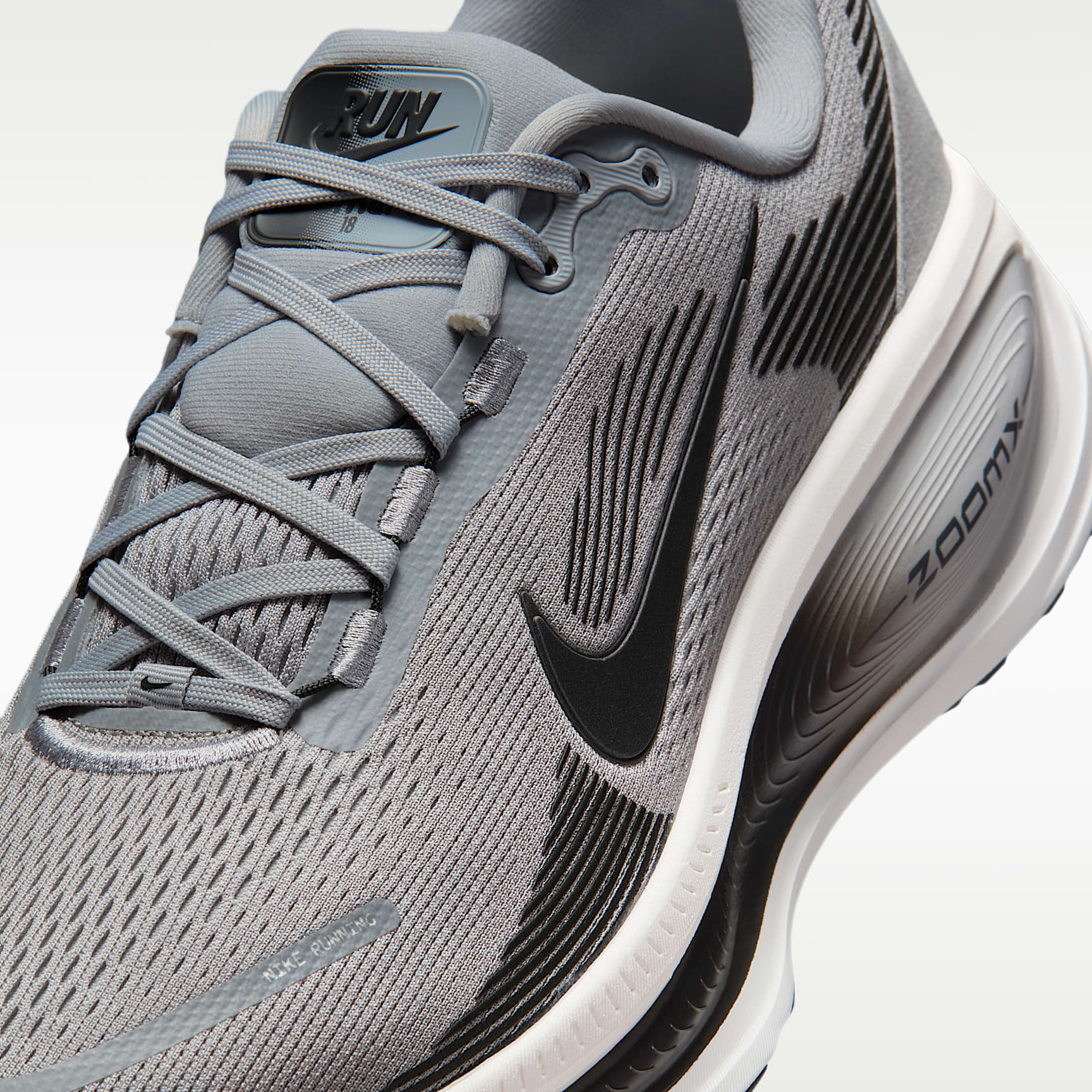 Double-stacked foam delivers our softest, most cushioned ride. Maximum cushioning in the Vomero provides a comfortable ride for everyday runs. Our softest, most cushioned ride has lightweight ZoomX foam stacked on top of responsive ReactX foam in the midsole. Plus, a redesigned traction pattern offers a smooth heel-to-toe transition. Engineered Mesh Upper The upper is made of engineered mesh for soft breathability. Dual-Density Midsole Our dual-density midsole has ZoomX foam stacked on top of ReactX foam, 13% more responsive than previous React technology, for a comfortable ride. Pods Around Outsole We placed pods around the outsole to help enhance agility and smoother heel-to-toe transitions. Plush Padding A plush tongue and lining give you a comfortably snug feel. What's New? Newly stacked foam midsole with premium ZoomX on top of ReactX foam amplifies cushioned comfort. Product Details * Weight: Approx. 325g/11.5oz (Men's US 10) * Heel-to-toe drop: 10mm * MR-10 Last - Our best, most consistent fit * Reflective details * Not intended for use as Personal Protective Equipment (PPE)
