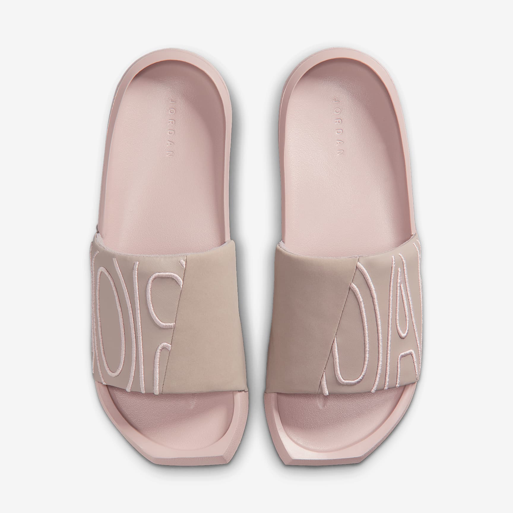 SUMMERTIME FAVORITE. Go beyond the flip-flop in the Jordan NOLA Slide, an instant warm-weather favorite. Featuring a molded foam footbed with a squared-off toe, it's light and airy with an easy, slip-in strap. Distinct Lines The squared-off toe shape offers versatility. The molded foam has a ridge that makes a barrier for your toes. Slip-In Comfort The fixed strap creates a comfortable fit with a mix of synthetic patent and matte leathers. Soft and Durable The foam is soft and pliable for comfort, yet durable for long-lasting wear. It's molded with traction inspired by the AJ1. More Benefits * Deep heel cup is molded for a stable, comfortable fit. * Raised toe bar helps provide grip as you walk. * "Jordan" is debossed in the heel.
