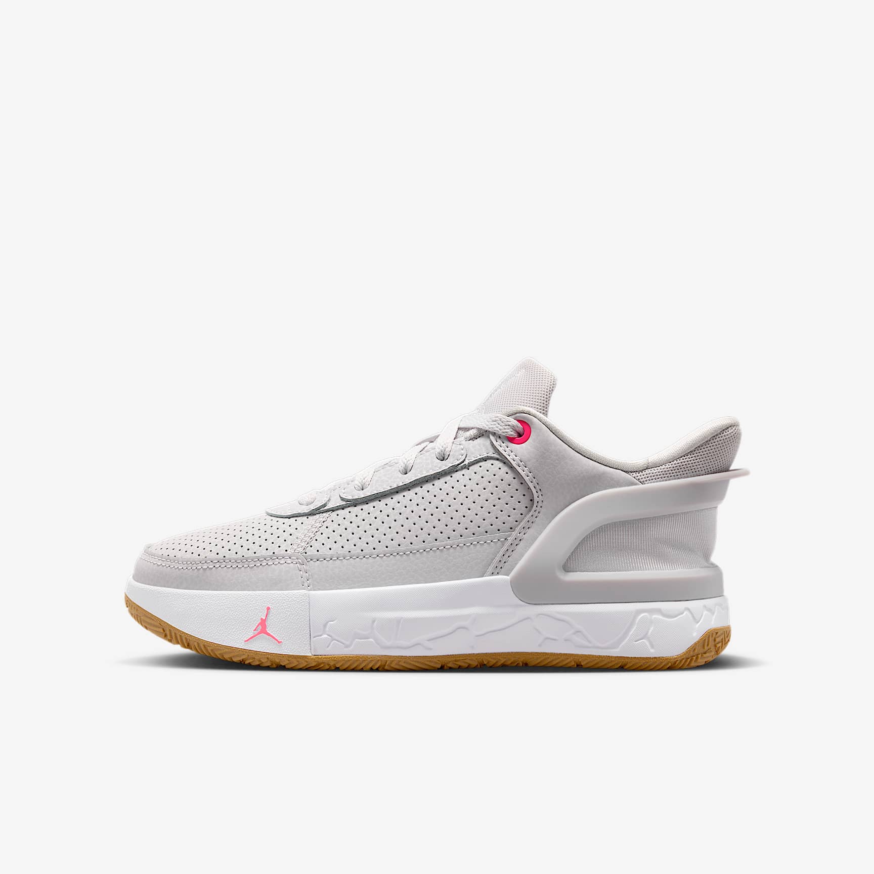 This pair of Js is ready for all your basketball games and all your sports days. A collapsible heel helps you slip them on and hit the court in seconds—even though the shoe has laces, you don't need to touch 'em! The Jumpman branding and a concrete print moulded into the midsole add iconic drip. Benefits * A collapsible heel makes it easy to step into the shoe and get going. Once you're in, it springs back into place and holds its shape. * Real and synthetic leather in the upper offers durability and structure. * The foam midsole helps provide plush cushioning. * Rubber in the outsole helps give you traction on various surfaces. Product details * Classic laces * Perforated uppers * Embroidered Jumpman on tongue