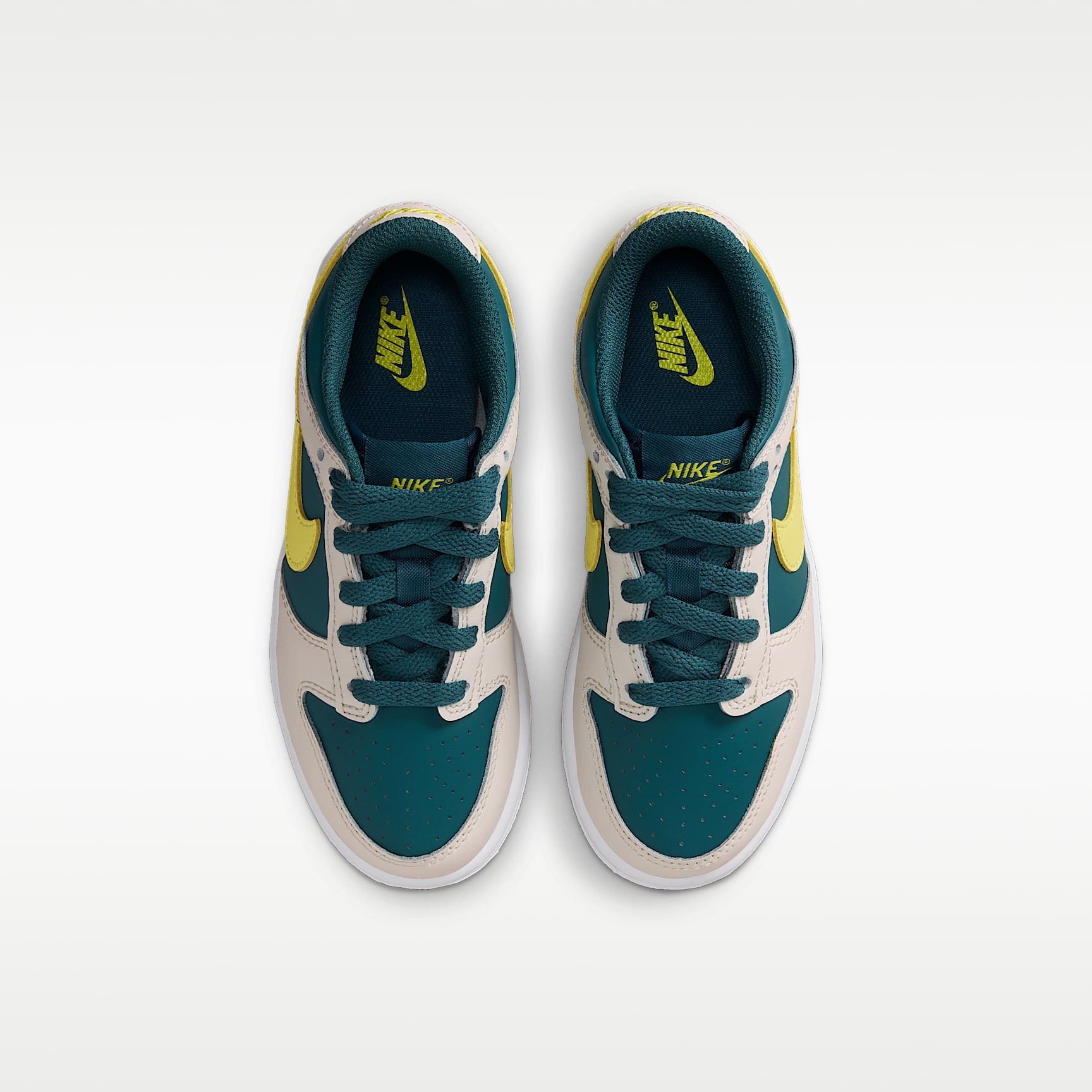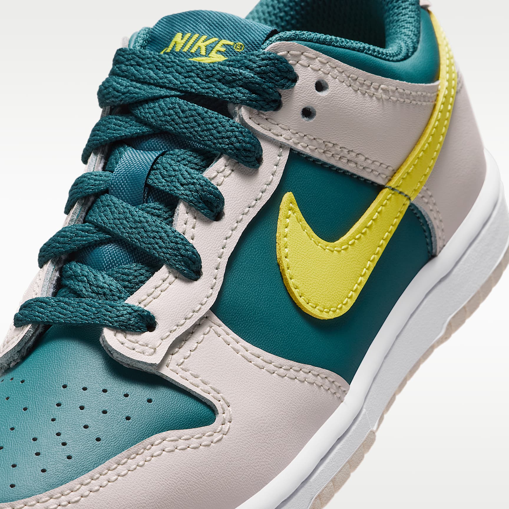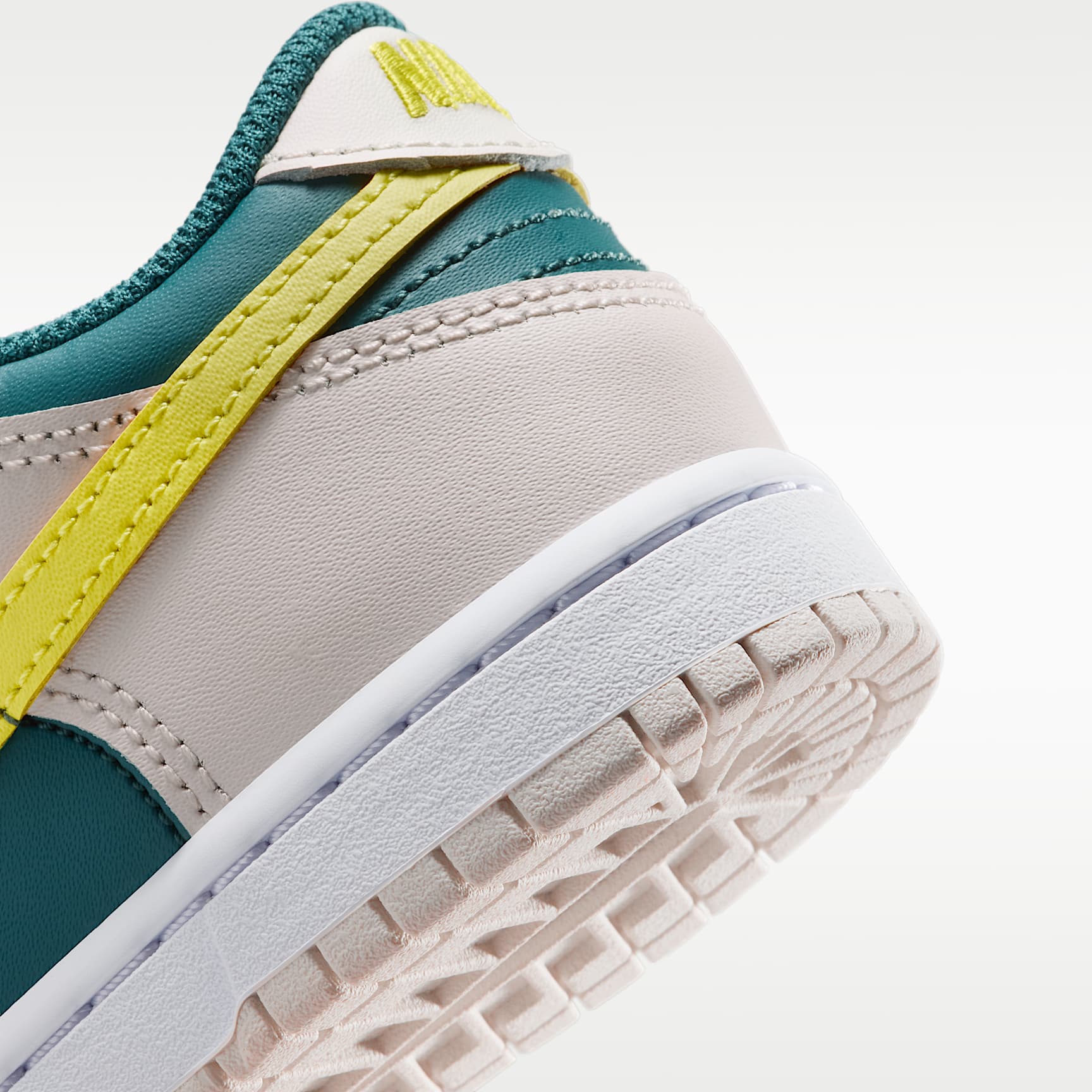 Start your little one's sneaker collection off with an icon. Designed for basketball but adopted by skaters, the Nike Dunk Low helped define sneakerhead culture. With plush ankle padding and durable rubber traction, this '80s icon is an easy win for playtime and beyond. Made to Last Real and synthetic leather is durable and brings a classic feel. Heritage Look Collar and tongue pair with perforations on the toe area to give these sneakers an iconic look rooted in the original Dunk. All-Day Traction Full-length rubber outsole provides durable traction and features a pattern similar to the original. Product Details * Classic laces * Cupsole construction