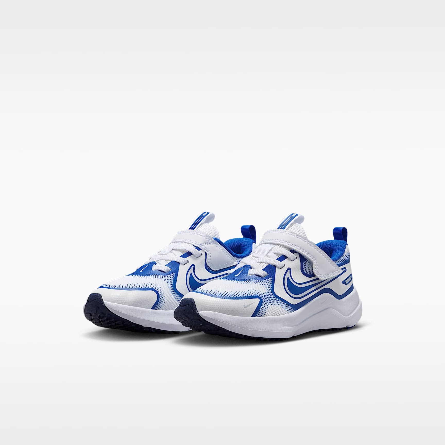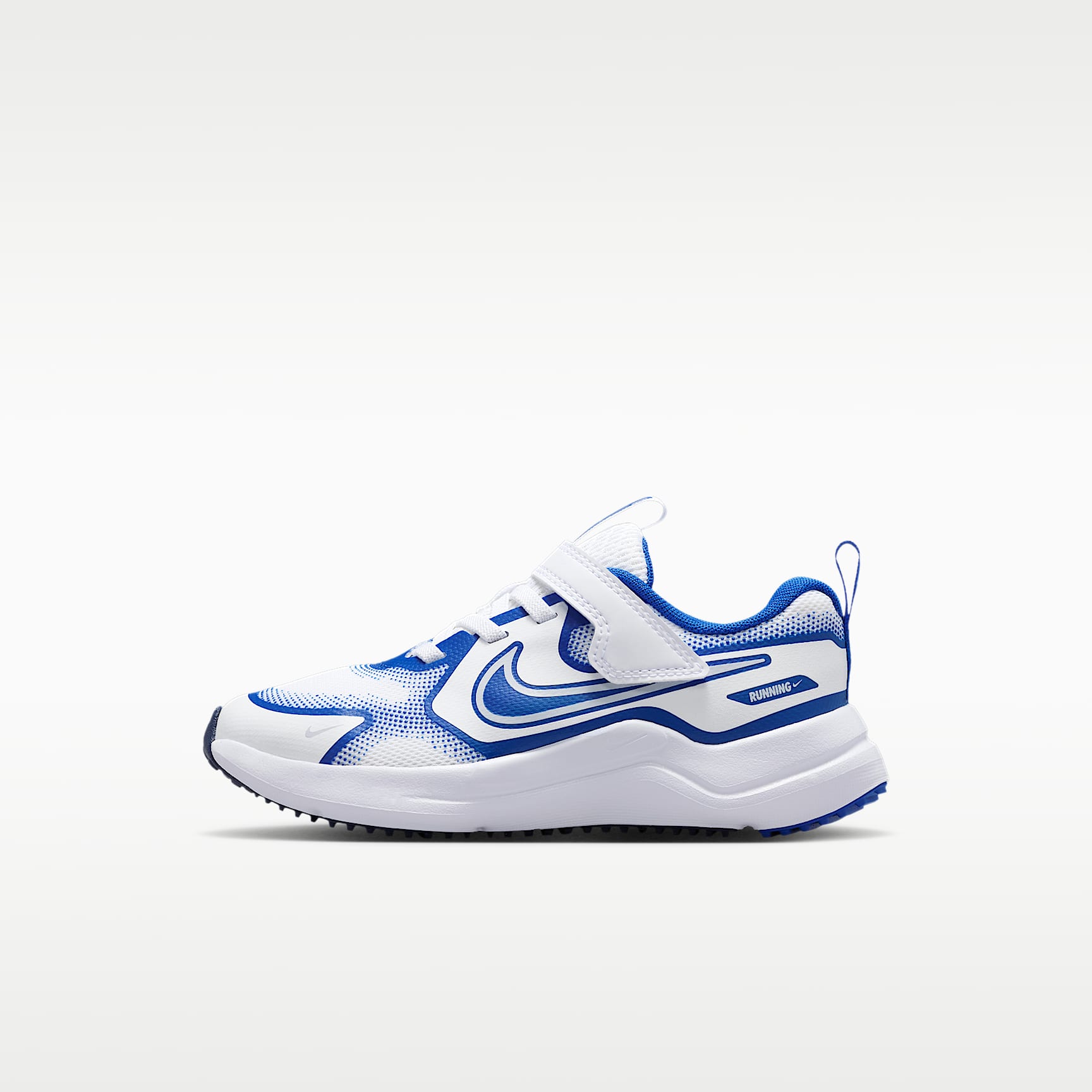 Meet the shoe built for kids who treat the world as their racetrack. Loaded with stable cushioning and durable features, the Nike Cosmic Runner helps support your little one's every stride. Elastic laces and a hook-and-loop strap let them get ready fast. Breathability Meets Durability Lightweight mesh in the upper helps keep little feet cool. We reinforced the toes, sides and heels for added durability. Cushioning That Keeps Up Springy foam helps cushion kids' every stride, giving them the soft and supportive feel they need to go the distance. Ready, Set, Run! Durable two-part rubber outsole helps gives kids the grip they need to confidently run on multiple surfaces. Product Details * Elastic laces * Pull tabs on tongue and heel