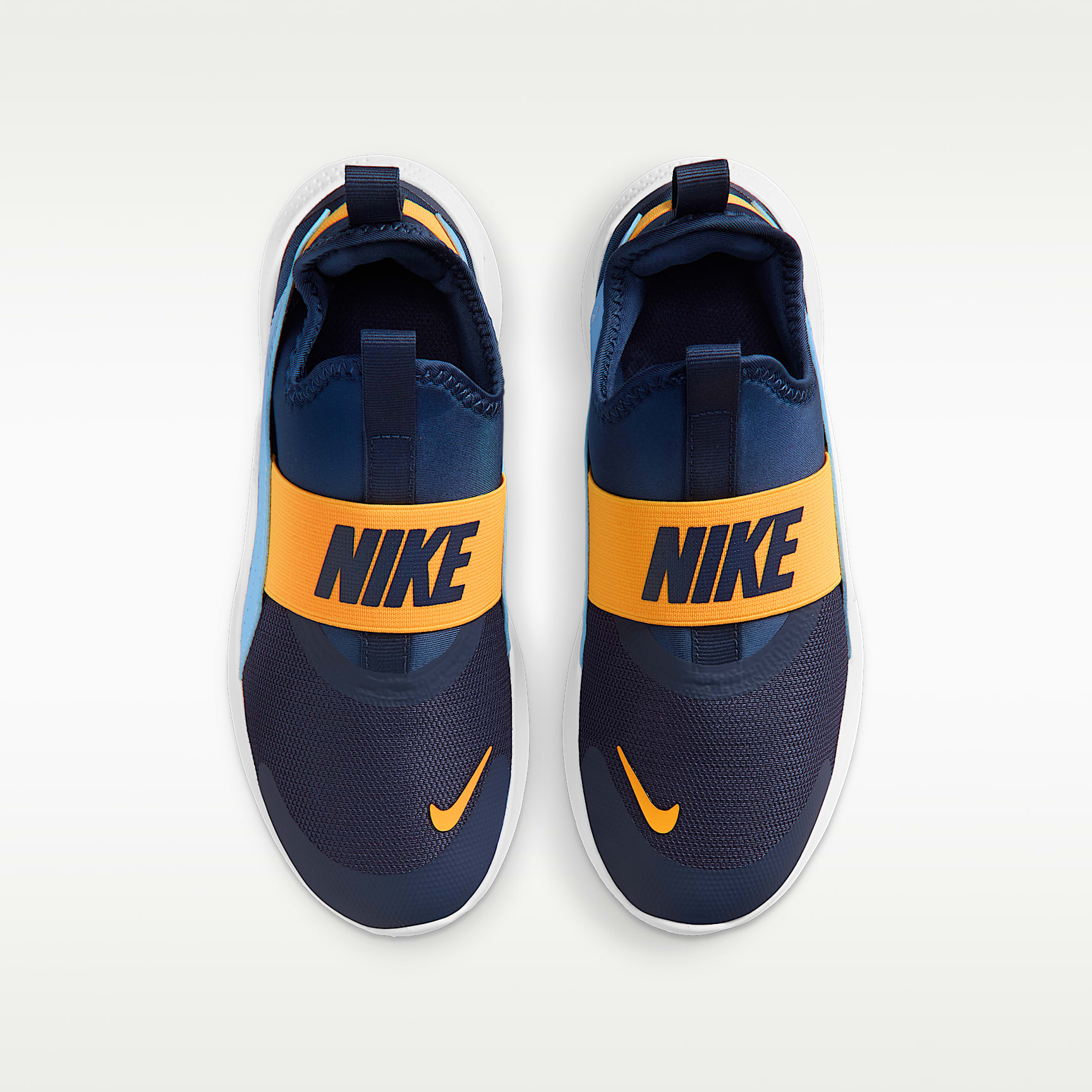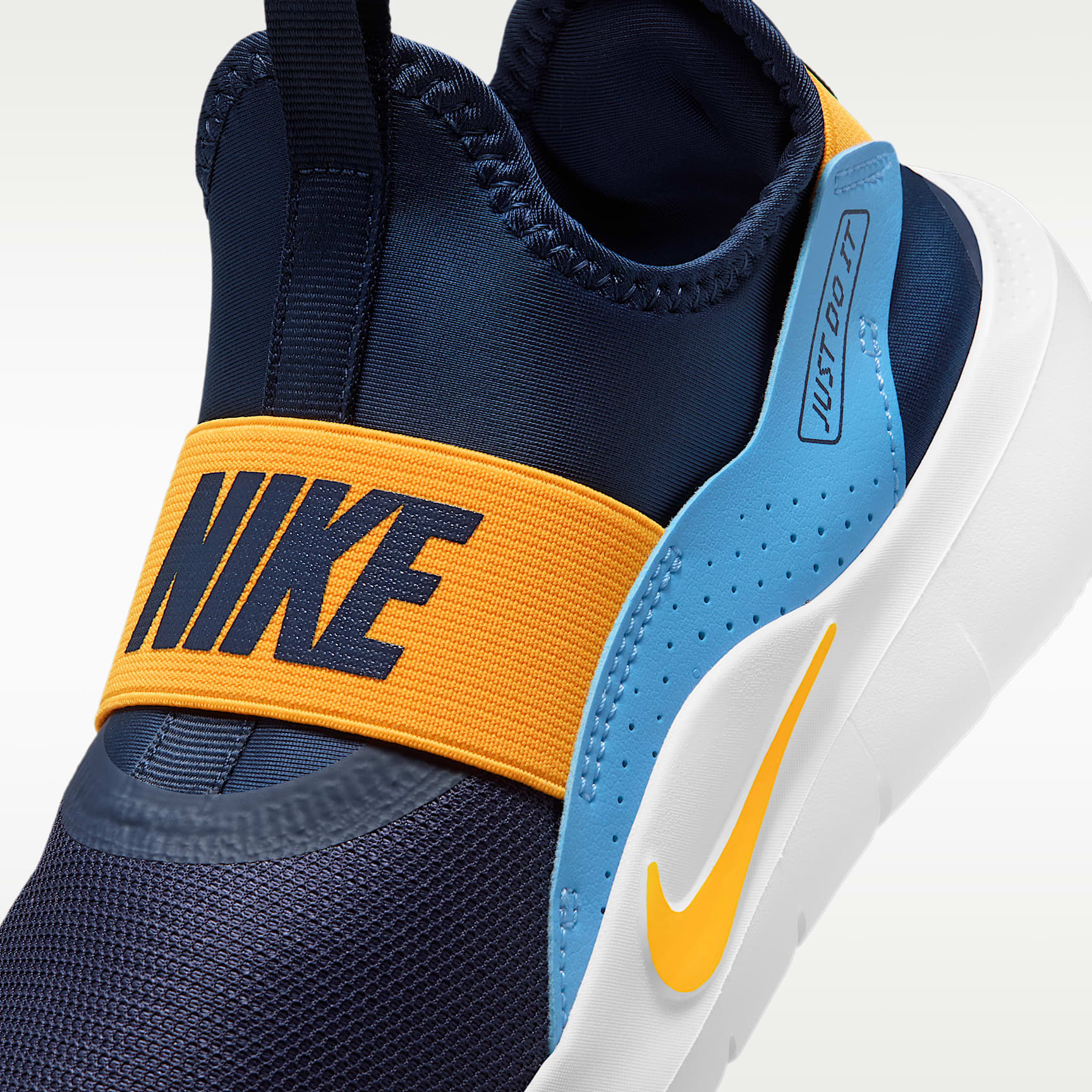 With the Flex Runner 4, you're always ready to race into fun. A flexible, bootie-like design makes it easy to pull on, while stretchy straps help secure your fit. Flex grooves in the outsole let your feet move naturally, helping you find your stride. What's new You spoke and we listened. For the Flex Runner 4, we've updated the fit of the midfoot strap and the collar to help make these easy to slip on and comfortable enough to wear all day. Pull on and go Pull tabs on the heel and tongue work with a stretchy inner sleeve to help make these shoes easy to put on. Elastic straps run behind your heel and across the top of your foot to provide a snug, secure feel. Play anywhere Flex grooves in the outsole add flexibility, helping every step feel natural. Multi-surface traction works with sturdy foam that wraps around the heel to provide grip and stability when you shift directions. Durable comfort We reinforced the toe box and used durable materials throughout to help these kicks stand up to how kids like you play. Soft, springy foam in the midsole helps cushion your every step.