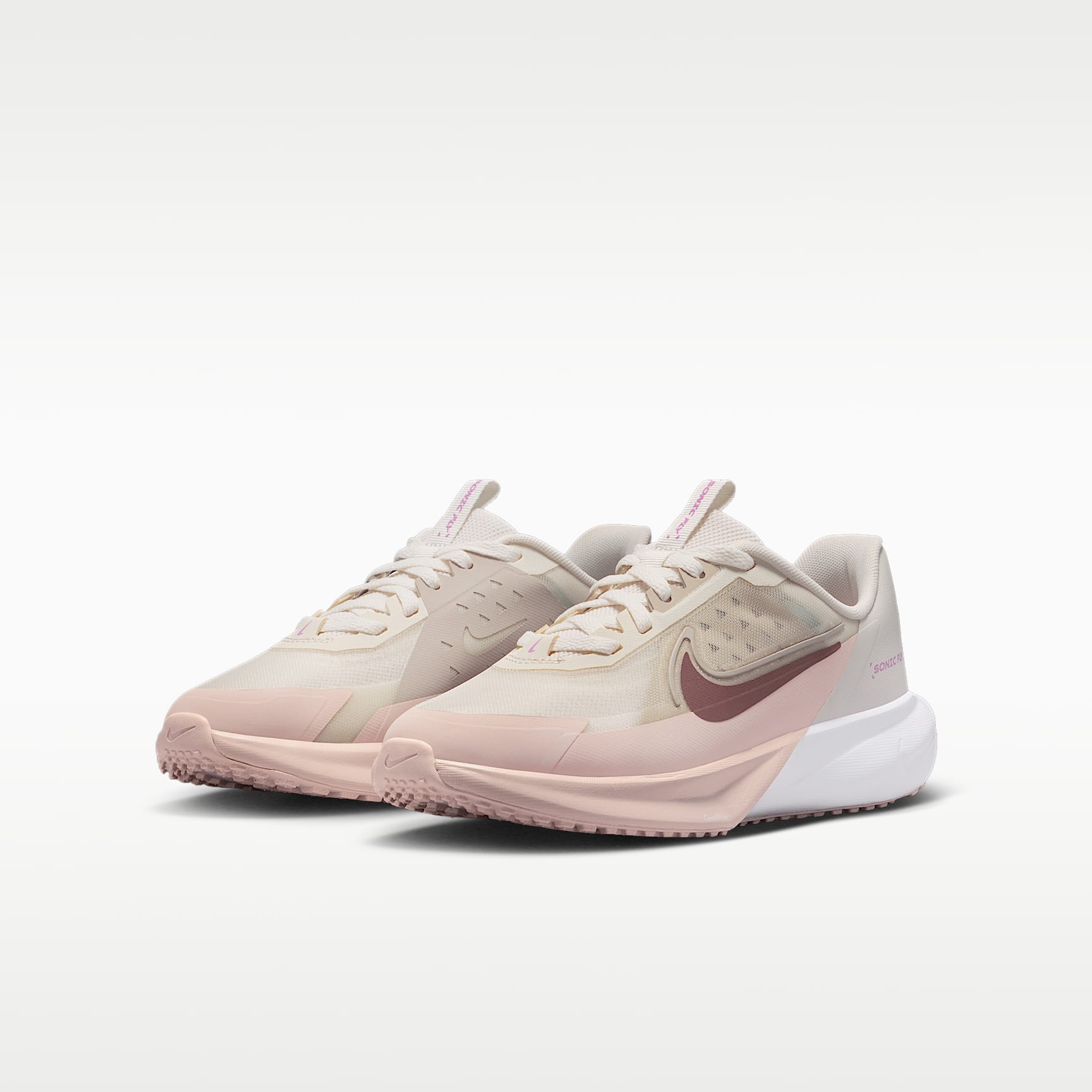 Why run when you can fly? Designed for record breakers in the making, the Nike Sonic Fly pairs a lightweight design with soft, springy foam that helps add energy to every stride. Responsive Cushioning We packed the midsole with soft and springy foam that absorbs impact and adds energy to every stride you take. Lightweight But Durable Less weight means more speed. Mesh throughout the upper helps keep these shoes lightweight and breathable. We reinforced the toe and sides for added durability. Support You Can Feel Bands at the side of your feet work with the laces to add stability and a secure feel. Traction That Keeps Up Rubber outsole with Waffle-inspired tread pattern helps provide durable traction. Product Details * Classic laces * Pull tab on tongue