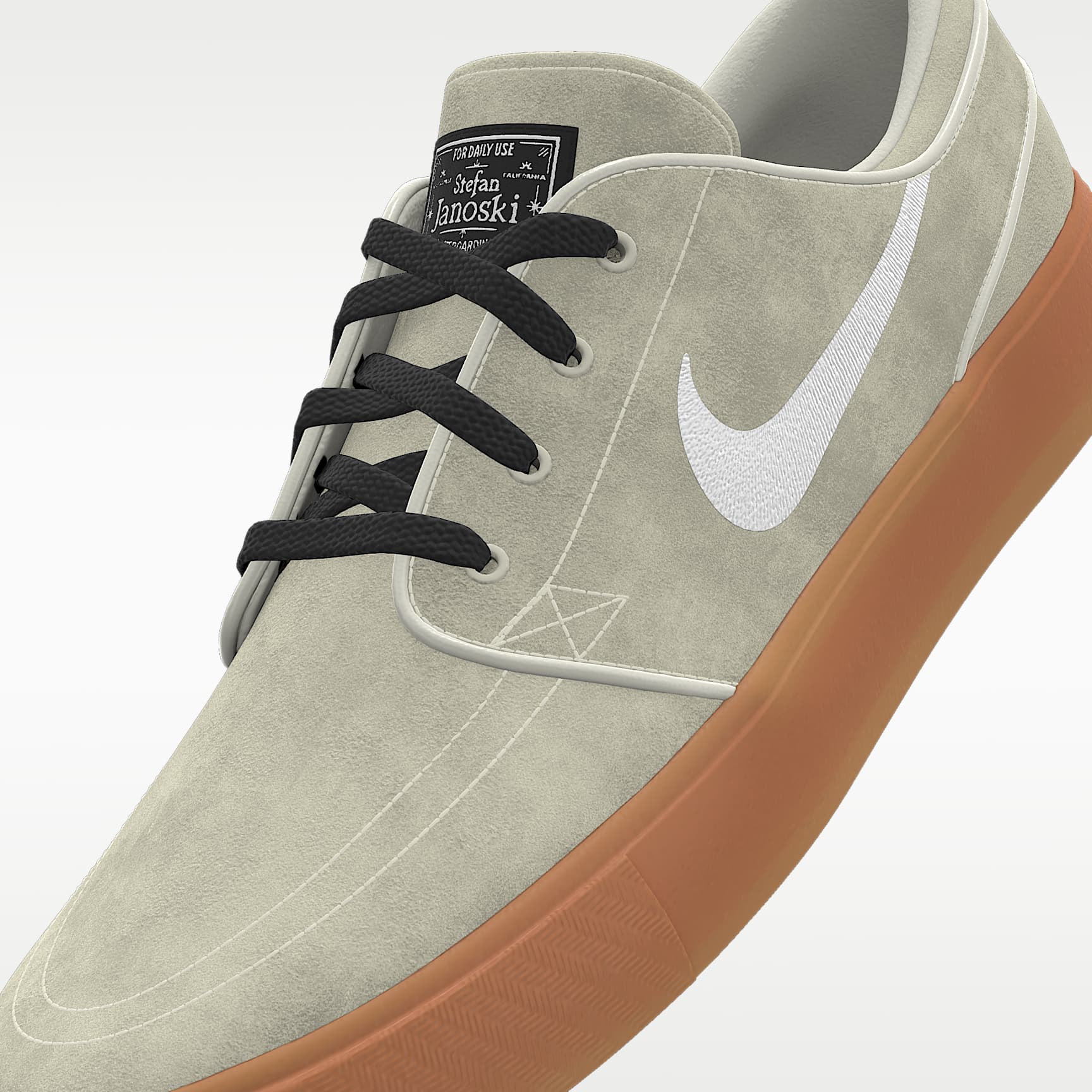 The Janoski continues the constantly-evolving journey of Stefan's signature skateboarding line. Skate-specific tread helps deliver great boardfeel and flick. A reengineered upper helps give you better fit and comfort, opening the door for next-level performance. With an array of solid and marbled colors, it's ready for your creativity. What's Your Base? Play with suede and canvas finishes to create a custom look. Color Up Mix and match with solid and marbled colors for the perfect combo. Express Yourself Your initials? A nickname? Or something else that's so you. Get personal with a custom Janoski logo on the tongue. Plus, your name is on the box. More Benefits * Vulcanized construction fuses the sole to the upper for a flexible, broken-in feel. * Snappy and responsive, Zoom Air cushioning helps provide a quick-off-the-ground sensation. Product Details * Our members are one of a kind, and your shoes are, too. Each pair is proudly made one at a time, by hand. Good things are worth the wait. * With our 3-D builder, watch your creation come alive as you experiment with all kinds of design choices.