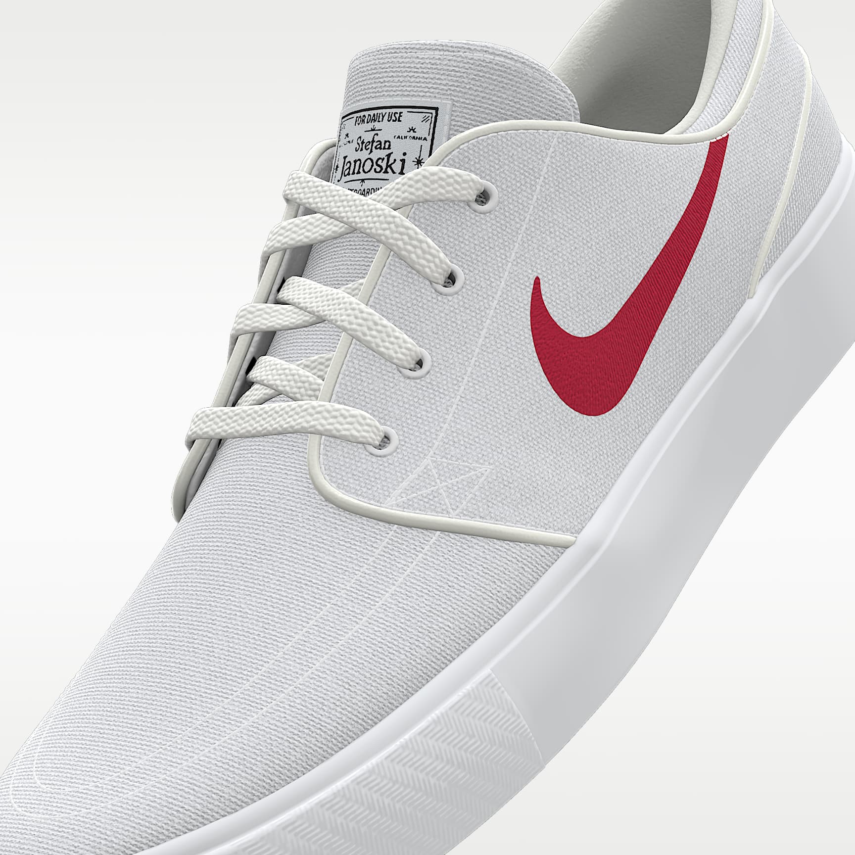 The Janoski continues the constantly-evolving journey of Stefan's signature skateboarding line. Skate-specific tread helps deliver great boardfeel and flick. A reengineered upper helps give you better fit and comfort, opening the door for next-level performance. With an array of solid and marbled colors, it's ready for your creativity. What's Your Base? Play with suede and canvas finishes to create a custom look. Color Up Mix and match with solid and marbled colors for the perfect combo. Express Yourself Your initials? A nickname? Or something else that's so you. Get personal with a custom Janoski logo on the tongue. Plus, your name is on the box. More Benefits * Vulcanized construction fuses the sole to the upper for a flexible, broken-in feel. * Snappy and responsive, Zoom Air cushioning helps provide a quick-off-the-ground sensation. Product Details * Our members are one of a kind, and your shoes are, too. Each pair is proudly made one at a time, by hand. Good things are worth the wait. * With our 3-D builder, watch your creation come alive as you experiment with all kinds of design choices.