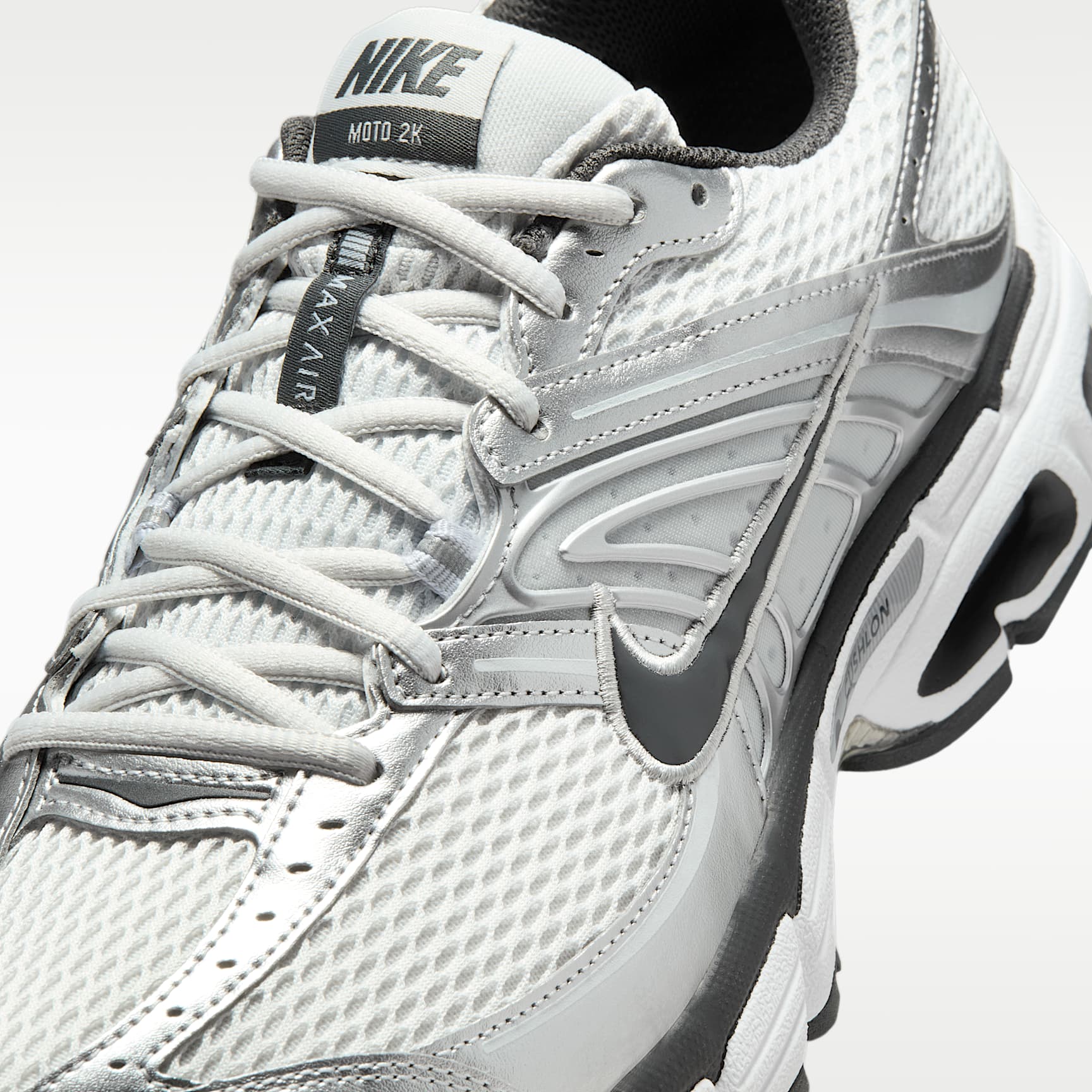 Familiar yet fresh, the Air Max Moto 2K is ready to go for a ride. Metallic accents complement performance-inspired details and Max Air cushioning. Benefits * The upper mixes synthetic leather and textile for a layered look built to last. * Plush and comfortable, the Max Air cushioning has just the right amount of support. * Rubber outsole provides durable traction. Product Details * Foam midsole * Rubber outsole