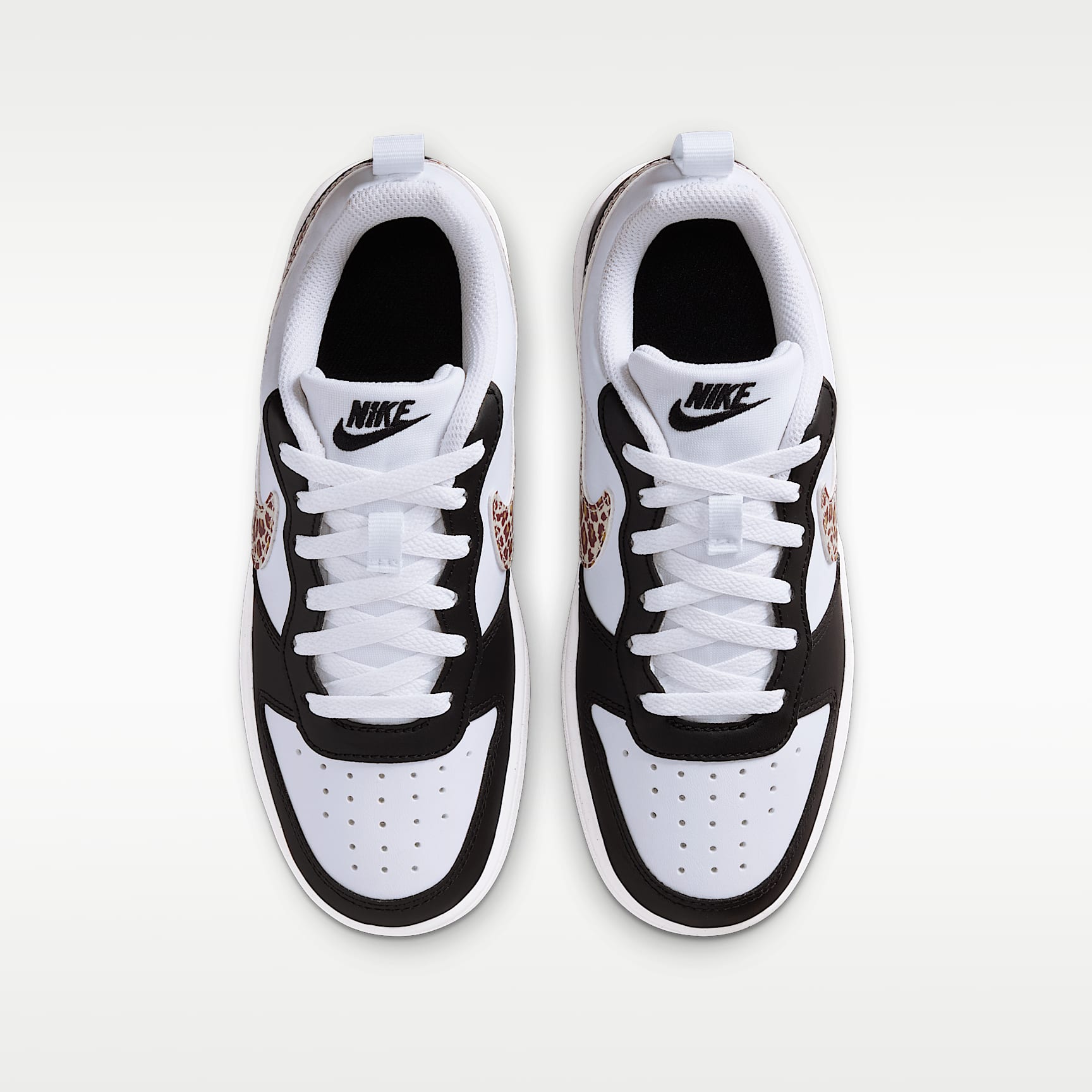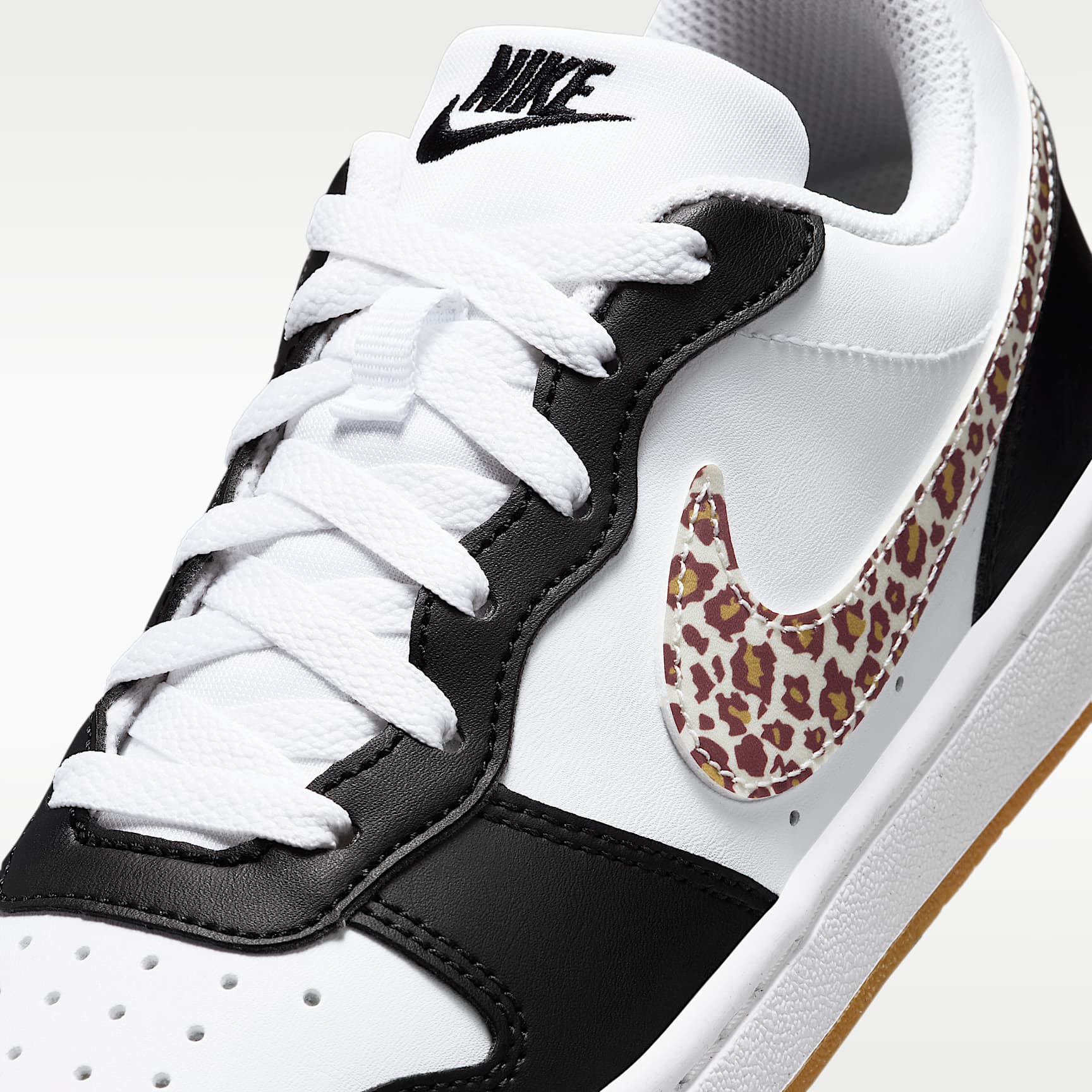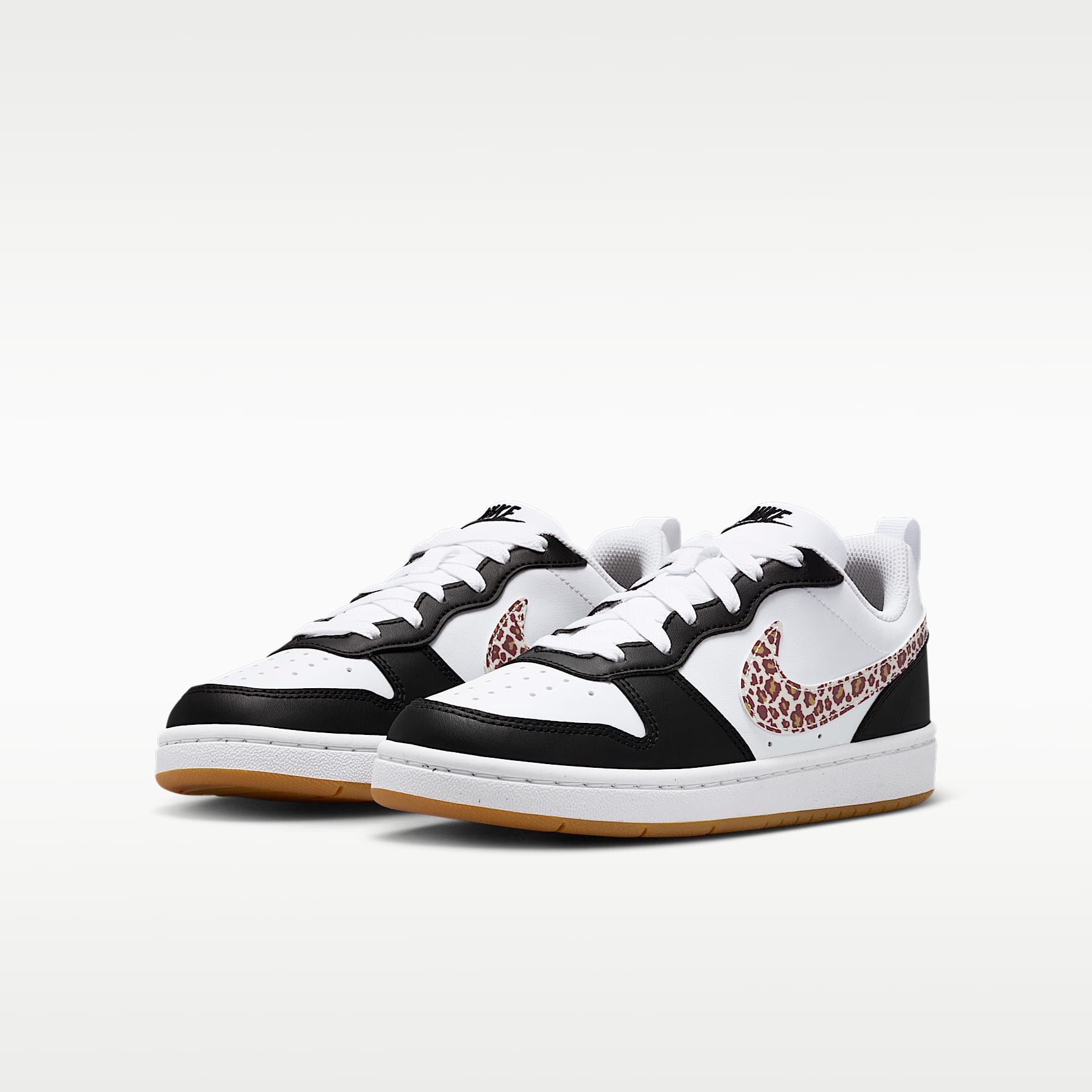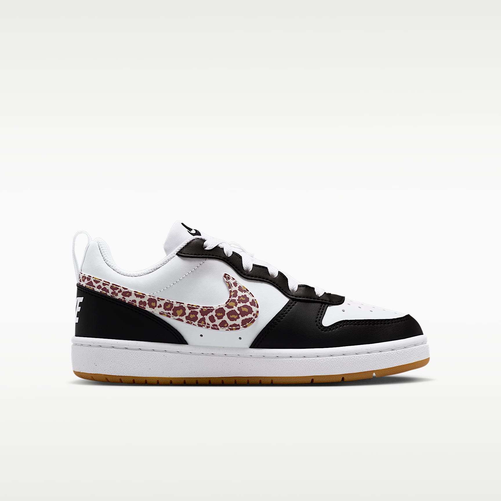 Inspired by retro-hooping style, the Court Borough is made with synthetic leather for an old-school feel and reimagined with modern comfort, like extra room in the toe. Benefits * The synthetic leather upper adds durability and structure. * Rubber sole has a full cupsole stitch for exceptional durability. * Cheetah print Swoosh logo shows off your wild side. Product Details * Classic laces * Cupsole construction * Pull tab on heel * Rubber outsole