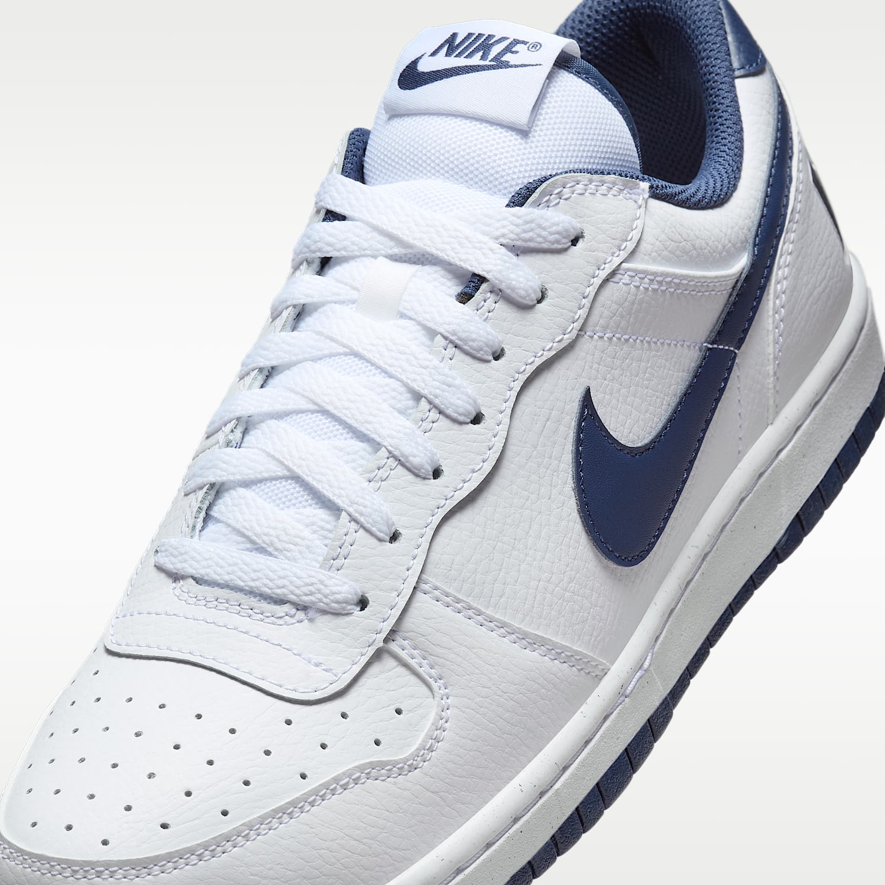 The Nike Big Low delivers a sleek look with leather on the upper and stitched-down overlays. Benefits * Real and synthetic leather on upper adds durability. * Rubber outsole provides optimal traction.