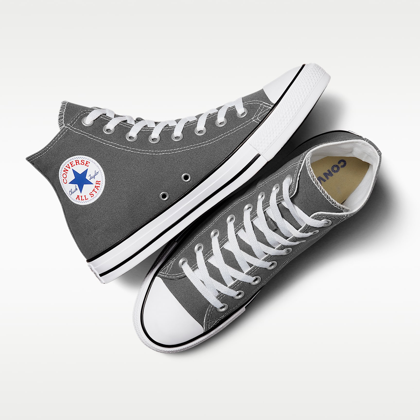 YOUR ICON You need a style to rely on. The Chuck Taylor All-Star is a staple: the high-top and oxford silhouettes stay simply classic, while the white laces and star ankle patch give a nod to the legacy of the Chuck. This is the go-with-everything go-to that you won’t get sick of going to. Stock up. BENEFITS * Durable canvas you know and love * Outsole pattern for traction (makes sure you don’t fall and eat it) * Star logo patch says you get it * Silhouette looks good, has been good for decades, will be good tomorrow, etc. CHUCK TAYLOR ALL STAR ORIGINS Created in 1917, the Converse Chuck Taylor All-Star has been evolving for a hundred years while managing to keep it classic: a canvas upper, all-star emblem, and vulcanized rubber sole are known all over the world. The silhouette stays true in both high-top and oxford styles: both looks can handle whatever.