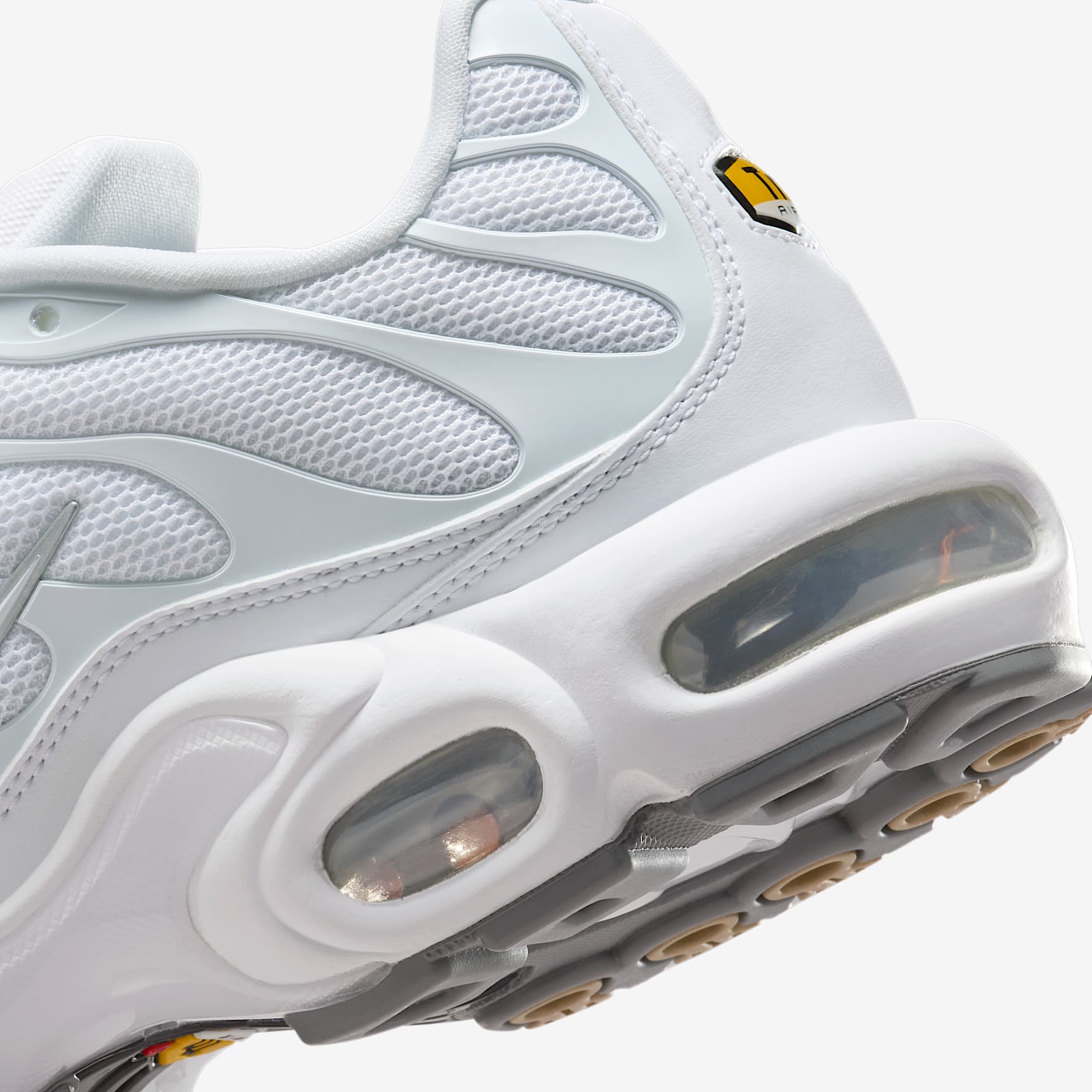 REBELLIOUS AIR. Let your attitude have the edge in your Nike Air Max Plus, a Tuned Air experience that offers premium stability and unbelievable cushioning. Featuring the original's wavy design lines, TPU accents and airy mesh on the upper, it celebrates defiant style. Benefits * The synthetic upper features airy mesh for lightweight comfort that's durable. * Originally designed for performance running, Nike Air units provide lightweight cushioning that lasts. * Bringing beach life to the city, the prominent TPU arch draws inspiration from a whale's tail and adds structure while the iconic TPU fingers nod to palm trees and ocean waves. * The TPU toe tip adds durability and shine. Product Details * Reflective design details * Not intended for use as Personal Protective Equipment (PPE) * Rubber sole Nike Air Max Origins Revolutionary Air technology first made its way into Nike footwear in 1978. In 1987, the Air Max 1 debuted with visible Air technology in its heel, allowing fans more than just the feel of Air cushioning—suddenly they could see it. Since then, next-generation Air Max shoes have become a hit with athletes and collectors by offering striking colour combinations and reliable, lightweight cushioning.