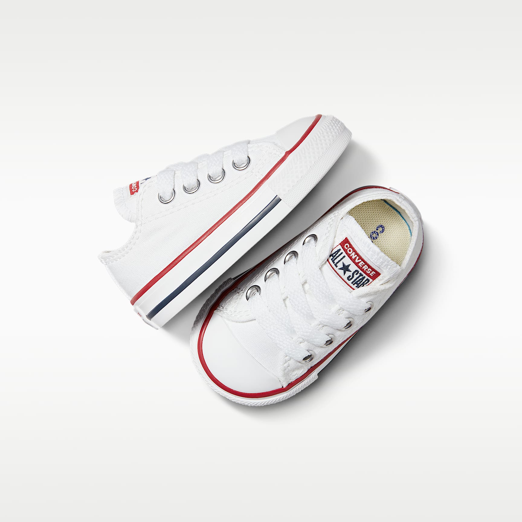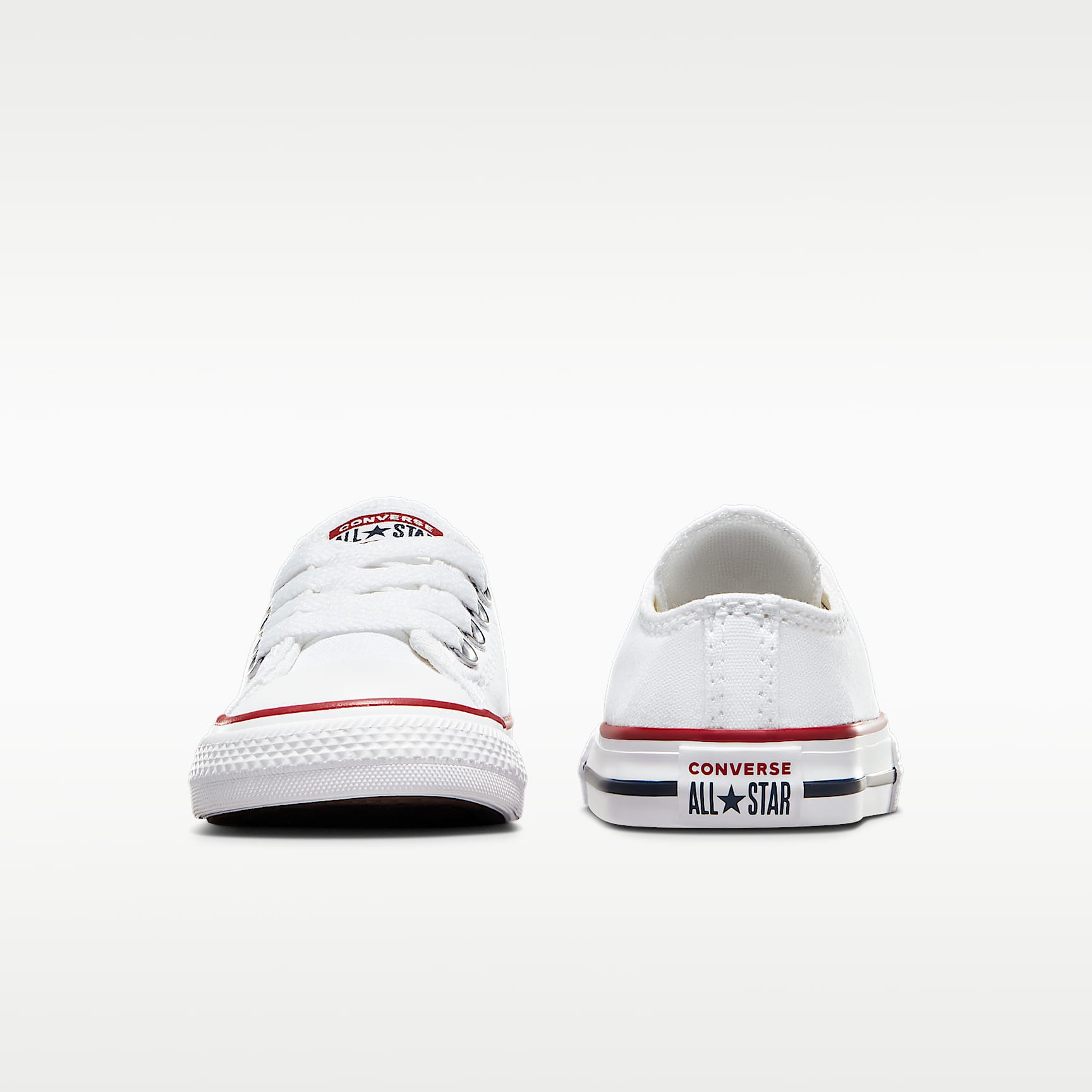 A TRUE ICON LIVES ON Scaled back in size for the next generation of original thinkers, rockers and artists, this Converse Chuck Taylor All Star remains true to the iconic original with classic details on a comfortable canvas upper. Benefits * Canvas upper for lightweight, flexible comfort * Rubber outsole for durable traction CHUCK TAYLOR ALL STAR ORIGINS Created in 1917 as a non-skid basketball shoe, the All Star was originally promoted for its superior court performance by basketball mastermind Chuck Taylor. But over the decades, something incredible happened: The sneaker, with its timeless silhouette and unmistakable ankle patch, was organically adopted by rebels, artists, musicians, dreamers, thinkers and originals.