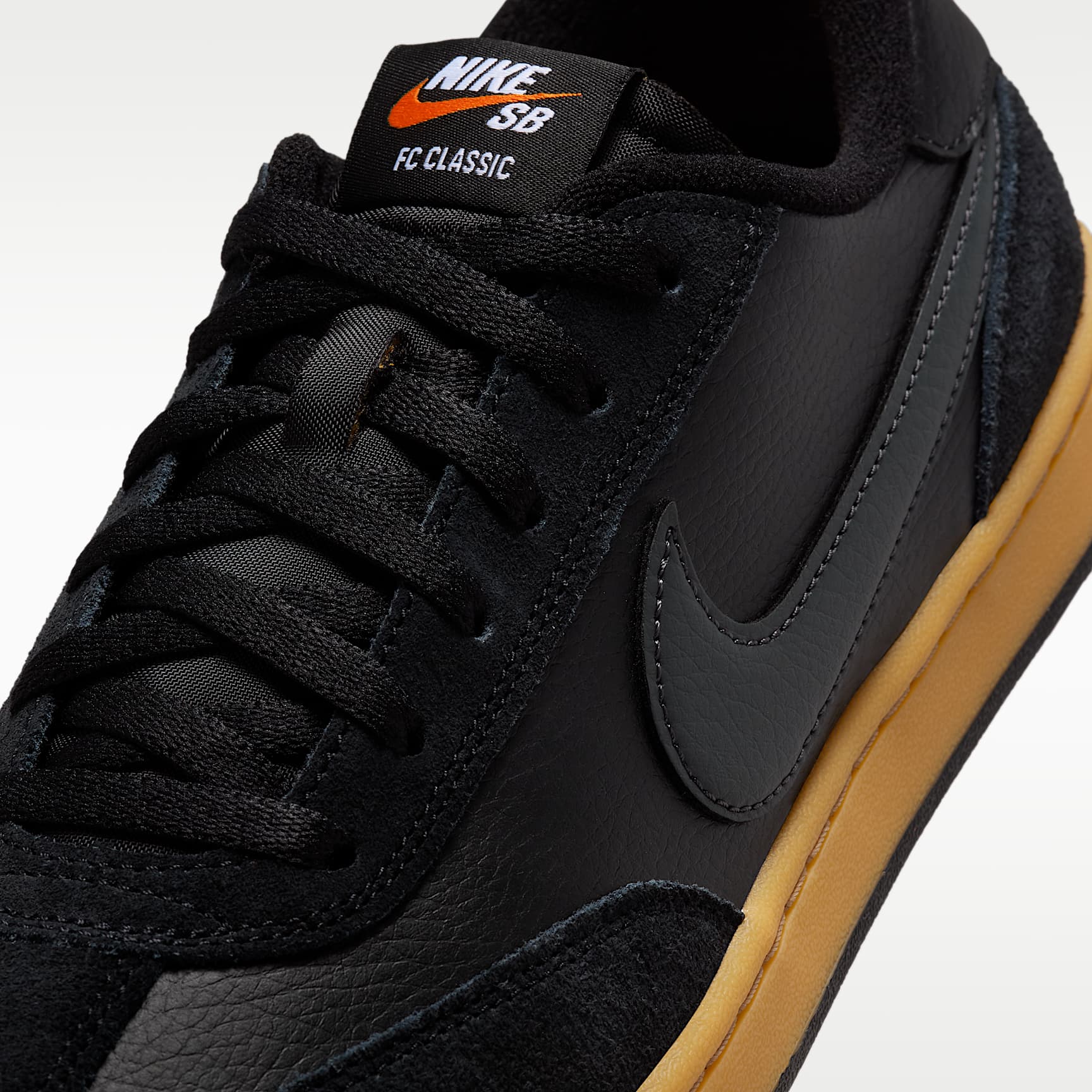 An updated version of the 2003 original. The Nike SB FC Classic pairs the cushioned support of a Solarsoft insole with the flexible performance of sticky rubber, so you can skate all day in total comfort. Benefits * Suede and synthetic leather are built to last. * Gusset on the tongue stretches to hug your foot. * Solarsoft insole cushions every step. * Rubber sole has a full cupsole stitch for exceptional durability.