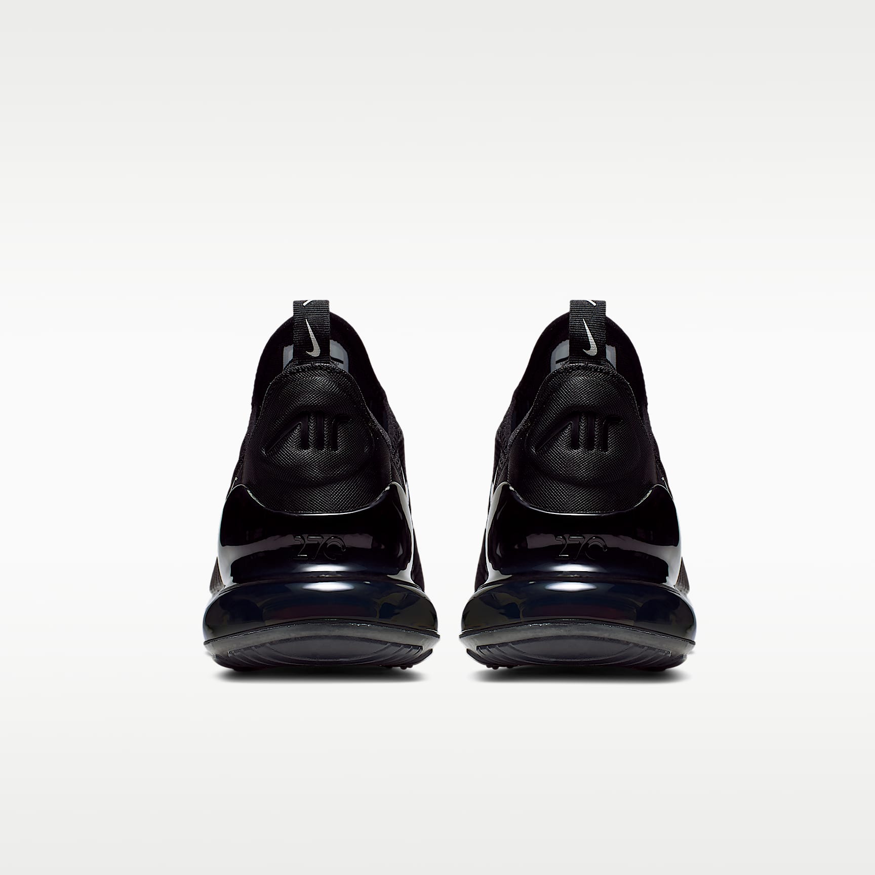 LEGENDARY AIR GETS LIFTED. Nike's first lifestyle Air Max brings you style, comfort and big attitude in the Nike Air Max 270. The design draws inspiration from Air Max icons, showcasing Nike's greatest innovation with its large window and fresh array of colours. Benefits * The Max Air 270 unit delivers unrivalled, all-day comfort. * The sleek, running-inspired design roots you to everything Nike. * Woven and synthetic fabric on the upper provides a lightweight fit and airy feel. * Foam midsole feels soft and comfortable. * The stretchy inner sleeve and bootie-like construction create a personalised fit. * Rubber on the outsole adds traction and durability. Product Details * Mesh details for an airy feel * Synthetic and textile upper. * 2-piece midsole Nike Air Max Origins Revolutionary Air technology first made its way into Nike footwear in 1978. In 1987, the Air Max 1 debuted with visible Air technology in its heel, allowing fans more than just the feel of Air cushioning—suddenly they could see it. Since then, next-generation Air Max shoes have become a hit with athletes and collectors by offering striking colour combinations and reliable, lightweight cushioning.