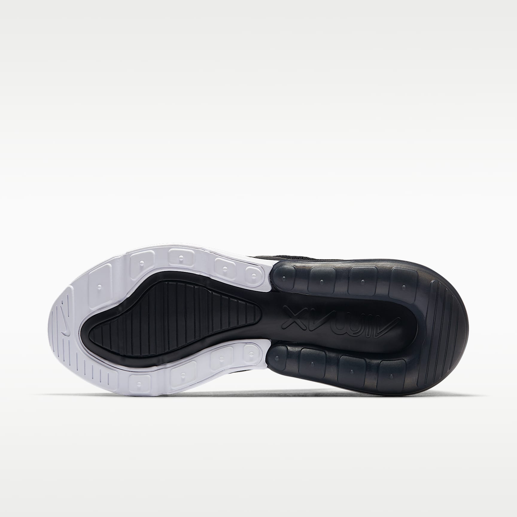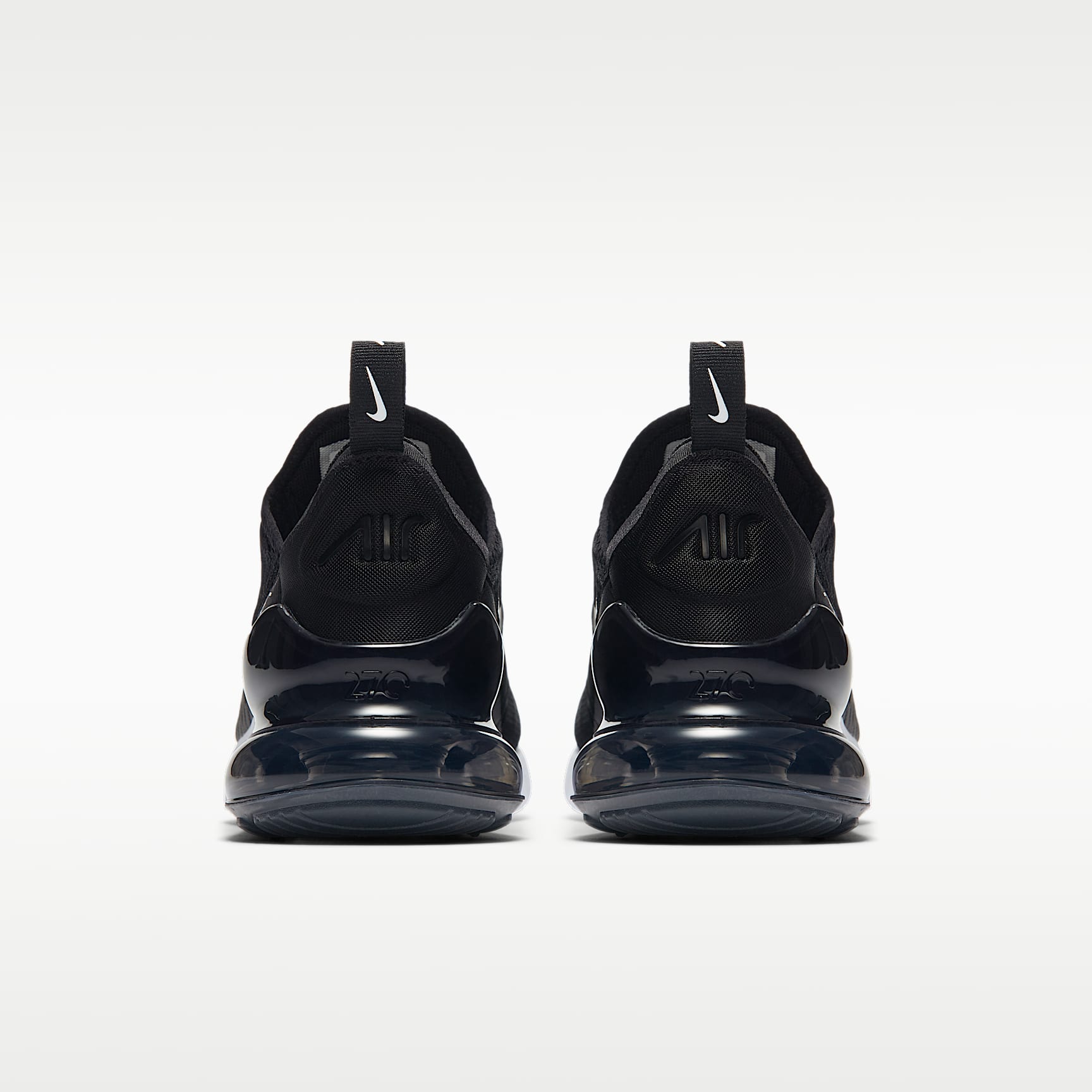 LEGENDARY AIR GETS LIFTED. Nike's first lifestyle Air Max brings you style, comfort and big attitude in the Nike Air Max 270. The design draws inspiration from Air Max icons, showcasing Nike's greatest innovation with its large window and fresh array of colors. Benefits * The Max Air 270 unit delivers unrivaled, all-day comfort. * Woven and synthetic fabric on the upper provides a lightweight fit and airy feel. * The foam midsole feels soft and comfortable. * The stretchy inner sleeve and booty-like construction creates a personalized fit. * Rubber on the outsole adds traction and durability. Product Details * Mesh details for an airy feel * Synthetic and textile * Pull tab Nike Air Max Origins Revolutionary Air technology first made its way into Nike footwear in 1978. In 1987, the Air Max 1 debuted with visible Air technology in its heel, allowing fans more than just the feel of Air cushioning—suddenly they could see it. Since then, next-generation Air Max shoes have become a hit with athletes and collectors by offering striking color combinations and reliable, lightweight cushioning.