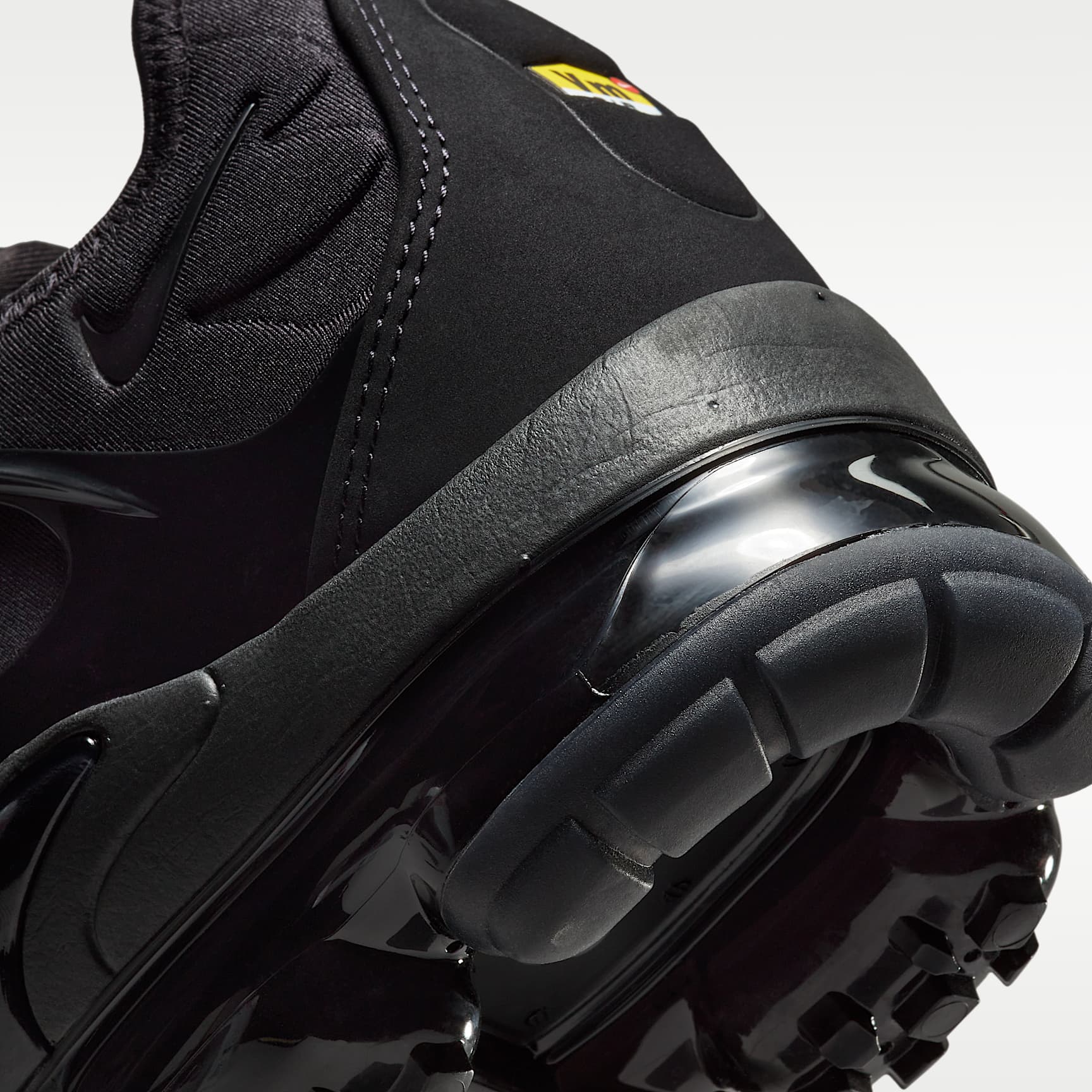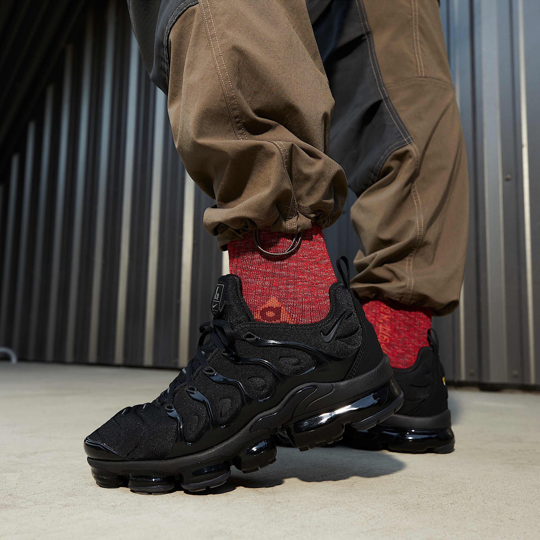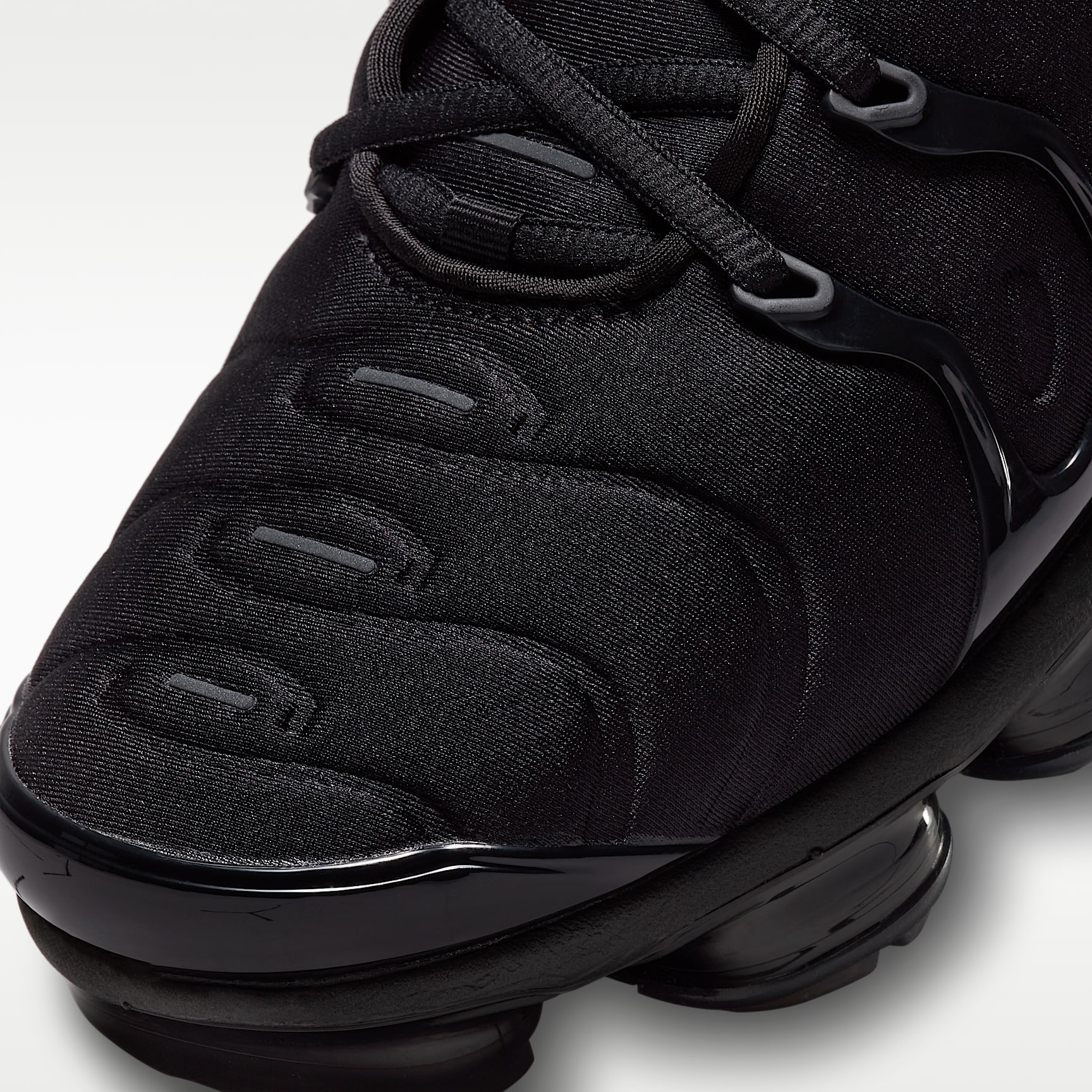 The Nike Air VaporMax Plus looks to the past and propels you into the future. Nodding to the 1998 Air Max Plus with its floating cage, padded upper and heel logo, it adds revolutionary VaporMax Air technology to ramp up the comfort and create a modern look. Benefits * Bringing beach life to the city, the prominent arch draws inspiration from a whale's tail and adds structure while the iconic wavy fingers nod to palm trees and ocean waves. * Originally designed for performance running, Nike Air units provide lightweight cushioning that lasts. * Synthetic upper adds lightweight comfort and durability. * Full-length rubber outsole adds traction and durability to your journey. Product Details * Pull tab * Reflective details * Not intended for use as Personal Protective Equipment (PPE) Nike Air VaporMax After the 7-year journey from ideation to release, the Air VaporMax represents a new era in Nike innovation. To truly capture the feeling of “running on air,“ the designers restructured the Air unit to be attached directly to the upper. As you step down, each lug gets pushed into the Air unit, ramping up the pressure. Then, as you step off, the pressure releases creating springy bounce with superior flexibility. Made for runners, the futuristic technology was quickly adopted by the street, bringing this light-as-air feeling to the masses.