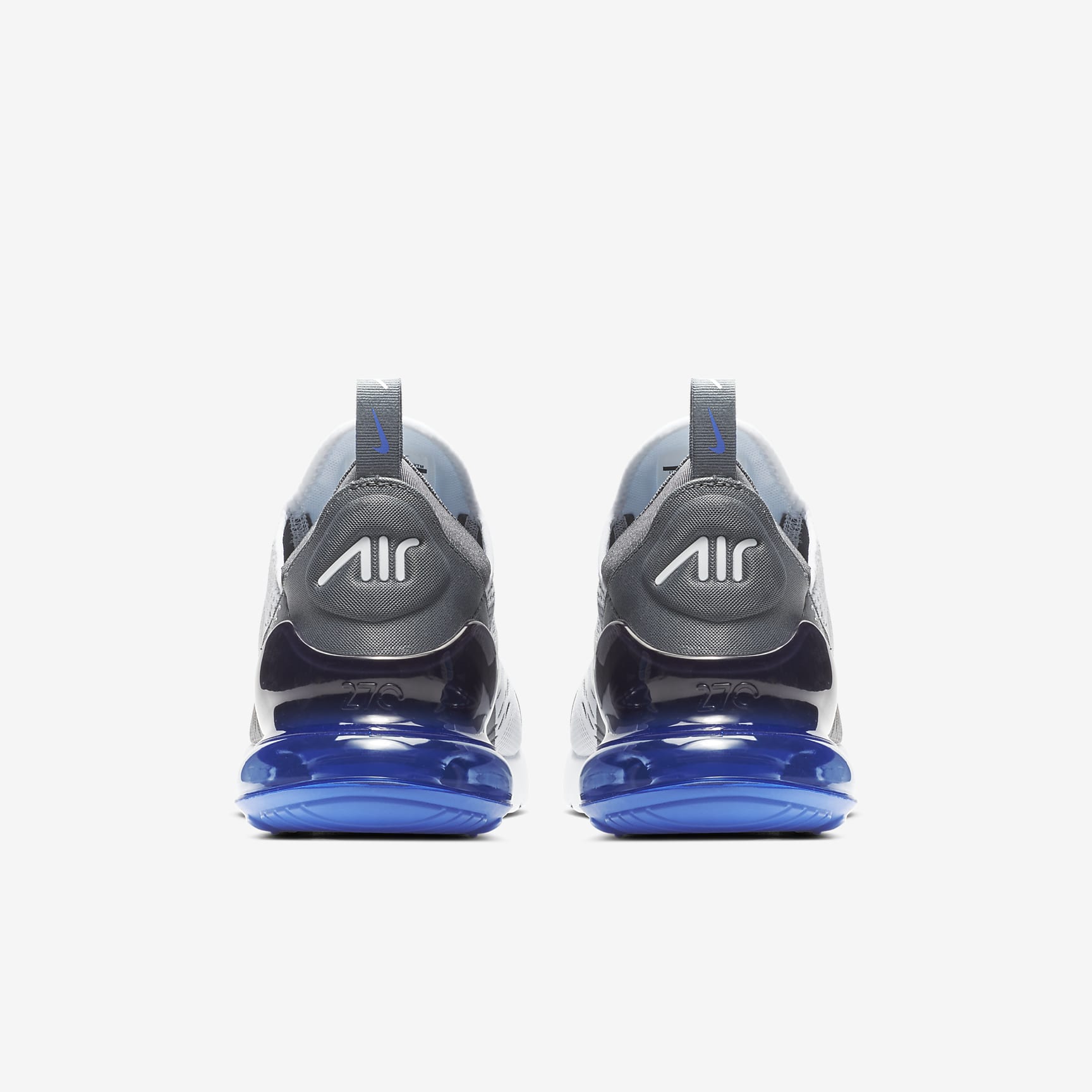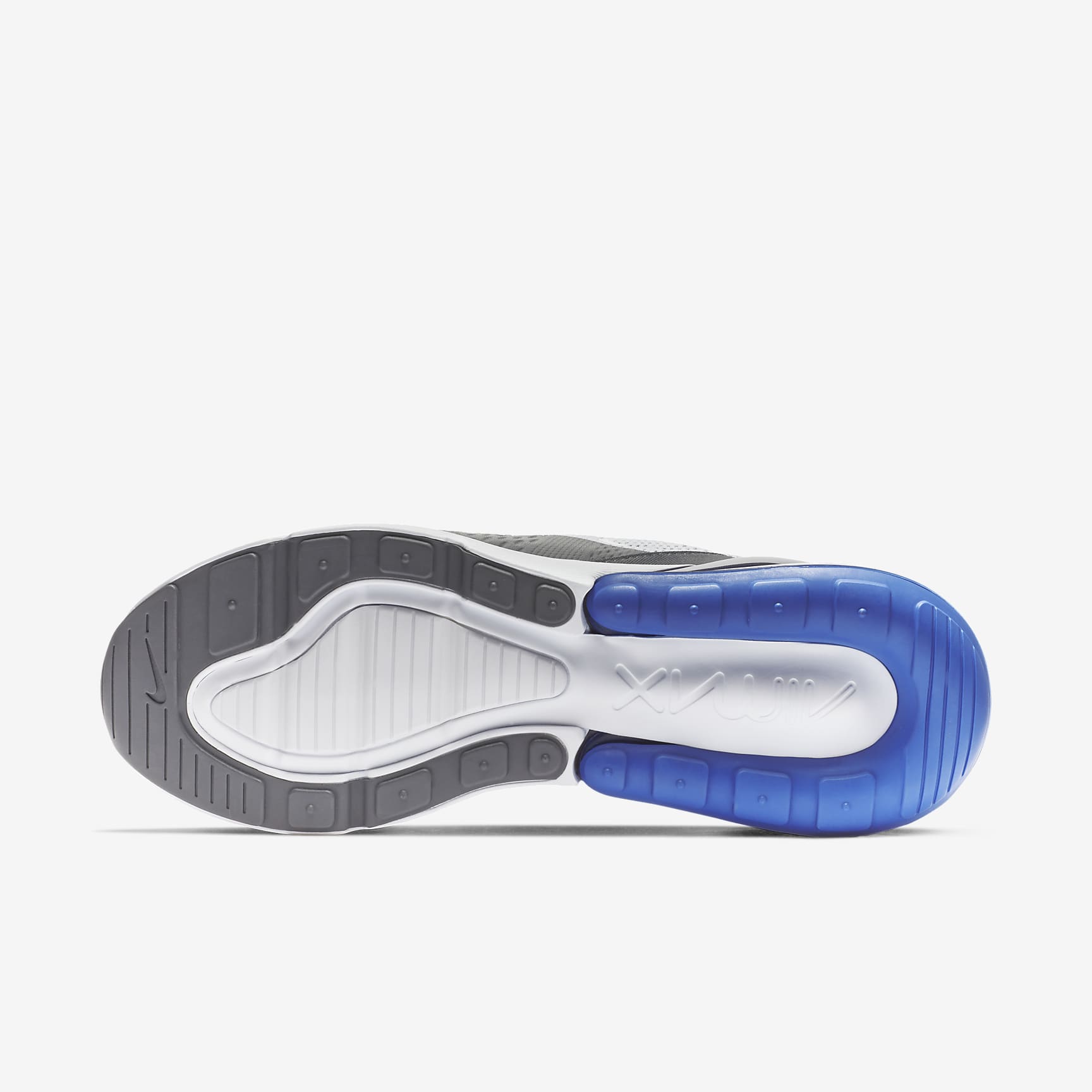 LEGENDARY AIR GETS LIFTED. Nike's first lifestyle Air Max brings you style, comfort and big attitude in the Nike Air Max 270. The design draws inspiration from Air Max icons, showcasing Nike's greatest innovation with its large window and fresh array of colors. Benefits * The Max Air 270 unit delivers unrivaled, all-day comfort. * The sleek, running-inspired design roots you to everything Nike. * Woven and synthetic fabric on the upper provides a lightweight fit and airy feel. * Foam midsole feels soft and comfortable. * Stretchy inner sleeve and booty-like construction creates a personalized fit. * Rubber on the outsole adds traction and durability. Product Details * Mesh details for an airy feel * Synthetic and textile * 2-piece midsole Nike Air Max Origins Revolutionary Air technology first made its way into Nike footwear in 1978. In 1987, the Air Max 1 debuted with visible Air technology in its heel, allowing fans more than just the feel of Air cushioning—suddenly they could see it. Since then, next-generation Air Max shoes have become a hit with athletes and collectors by offering striking color combinations and reliable, lightweight cushioning.