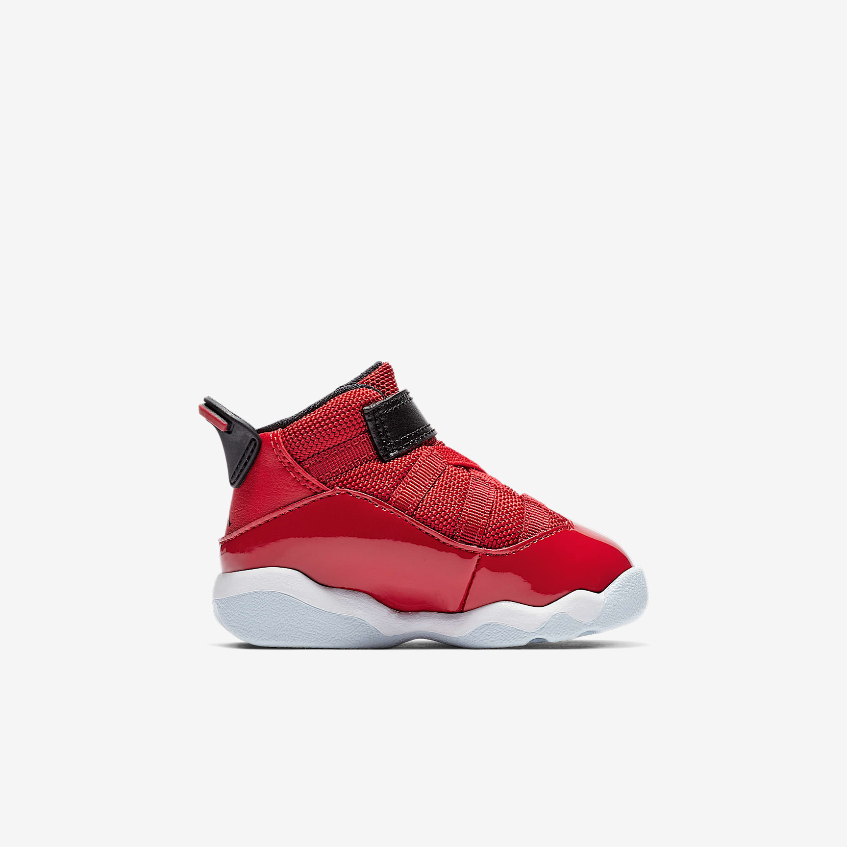 Let your little one rep MJ's legendary on-court achievements in the pint-sized Jordan 6 Rings. Lightweight and supportive, these cool kicks sport easy on-and-off features (check out the hook-and-loop strap and handy pull tab), making it that much easier to dress 'em like a champion. Benefits * Leather and synthetic upper adds comfort and durability. * Pull tab and hook-and-loop closure combine for easy on-and-off. * Rubber outsole adds traction for learning feet. Product Details * Elastic laces