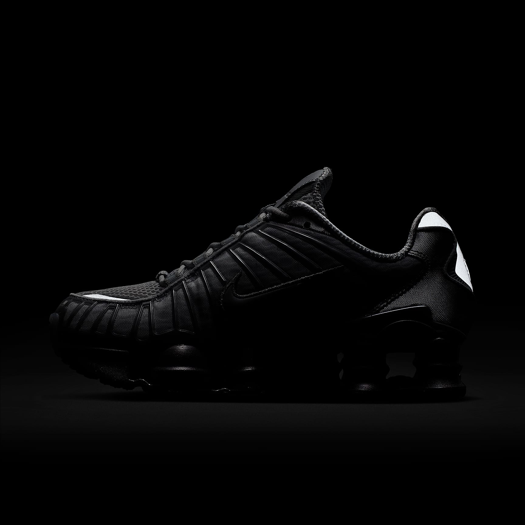 The Nike Shox TL takes mechanical cushioning to the next level. A recrafted version of the 2003 icon, it features breathable mesh in the upper, with full-length Nike Shox technology for optimal impact absorption and a bold look on the streets. Benefits * Nike Shox technology combines resilient, flexible columns with moderator plates for outstanding cushioning that compresses and regains its shape. * Design is a near-exact replica of the 2003 Nike Shox TL. * Moulded overlays throughout the midfoot provide support and a snug fit. * TPU plate in the heel supplies lateral stability and support. Product details * Synthetic and textile upper * Rubber outsole * Not intended for use as personal protective equipment (PPE)