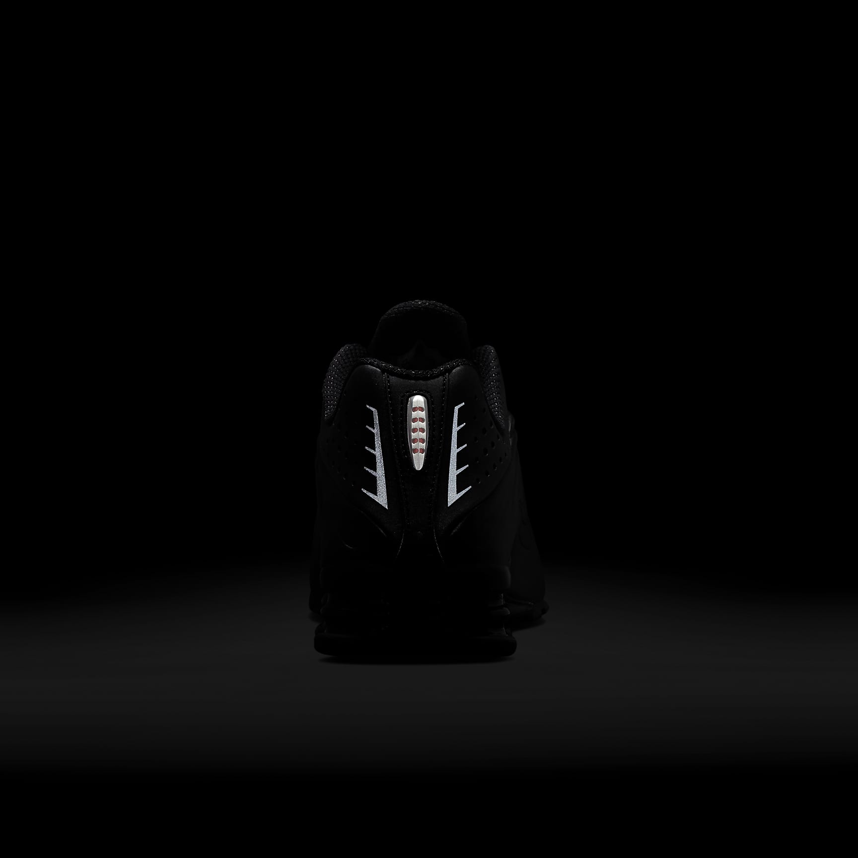 A recrafted version of the 2001 icon, the Nike Shox R4 replicates the original with its synthetic and textile upper, design lines and laser perforations. Nike Shox cushioning distributes weight to maximise comfort and provide a performance-inspired look. Benefits * Originally designed to support the stride of runners, Nike Shox columns provide responsive cushioning. * The upper is a near-exact replica of the original 2001 Nike Shox. * A modified, circular Waffle outsole gives traction. * Laser perforations throughout provide ventilation. Product details * Not intended for use as personal protective equipment (PPE)