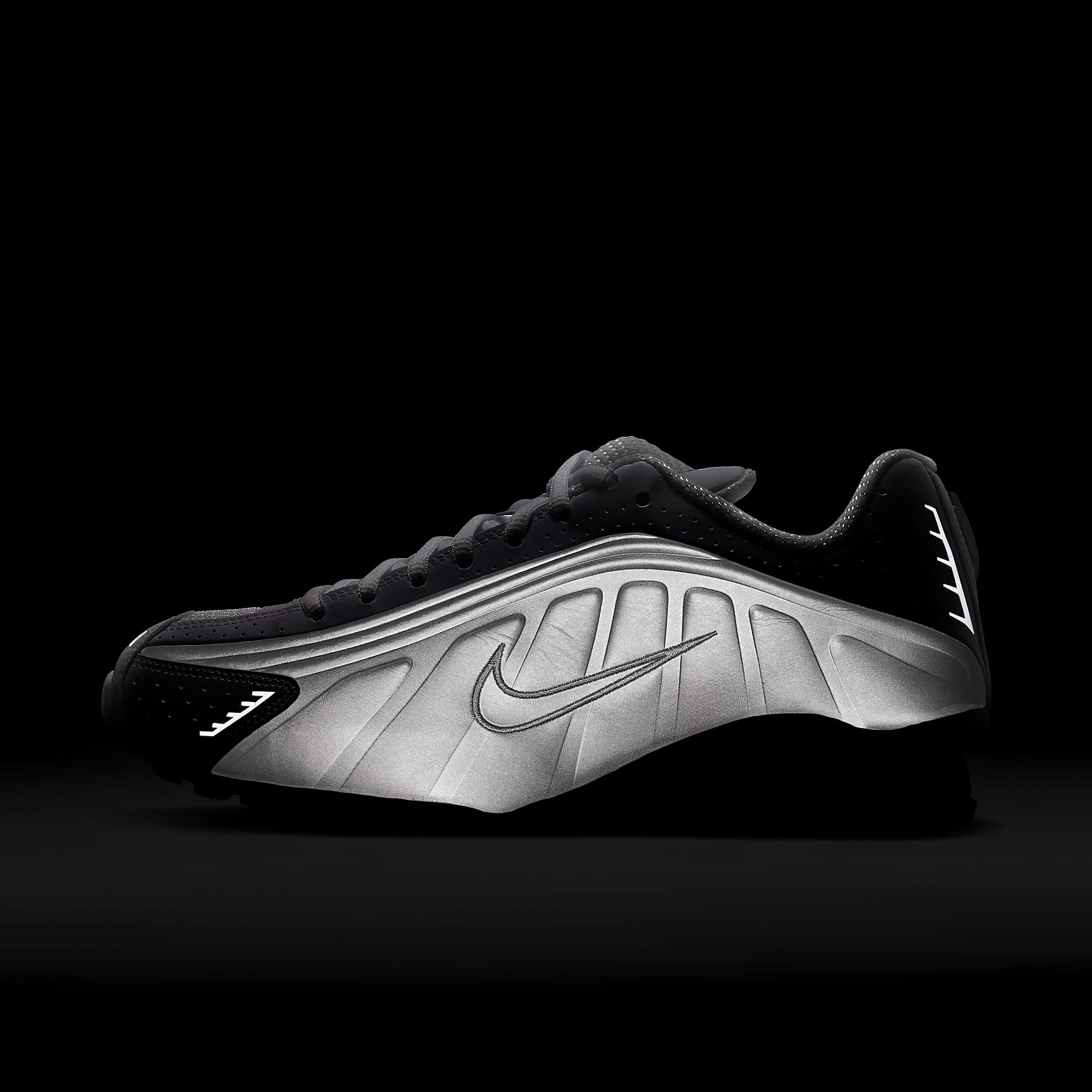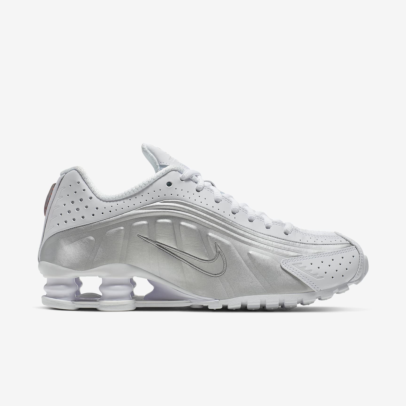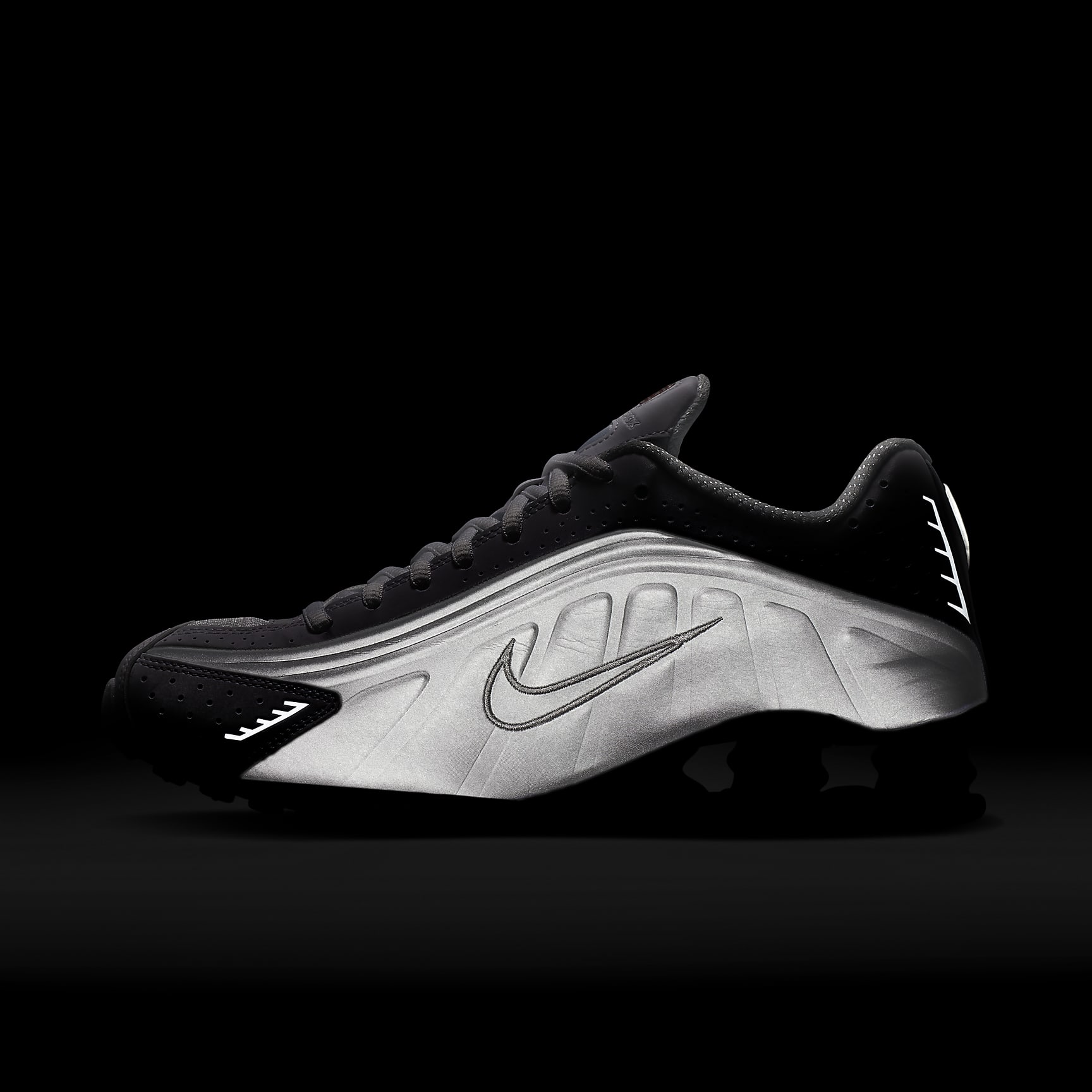 A recrafted version of the 2001 icon, the Nike Shox R4 replicates the original with its synthetic and textile upper, design lines and laser perforations. Nike Shox cushioning distributes weight to maximize comfort and provide a performance-inspired look. Benefits * Originally designed to support the stride of runners, Nike Shox columns provide responsive cushioning. * Upper is a near-exact replica of the original 2001 Nike Shox. * Modified, circular waffle outsole gives traction. * Laser perforations throughout provide ventilation. Product Details * Not intended for use as Personal Protective Equipment (PPE)