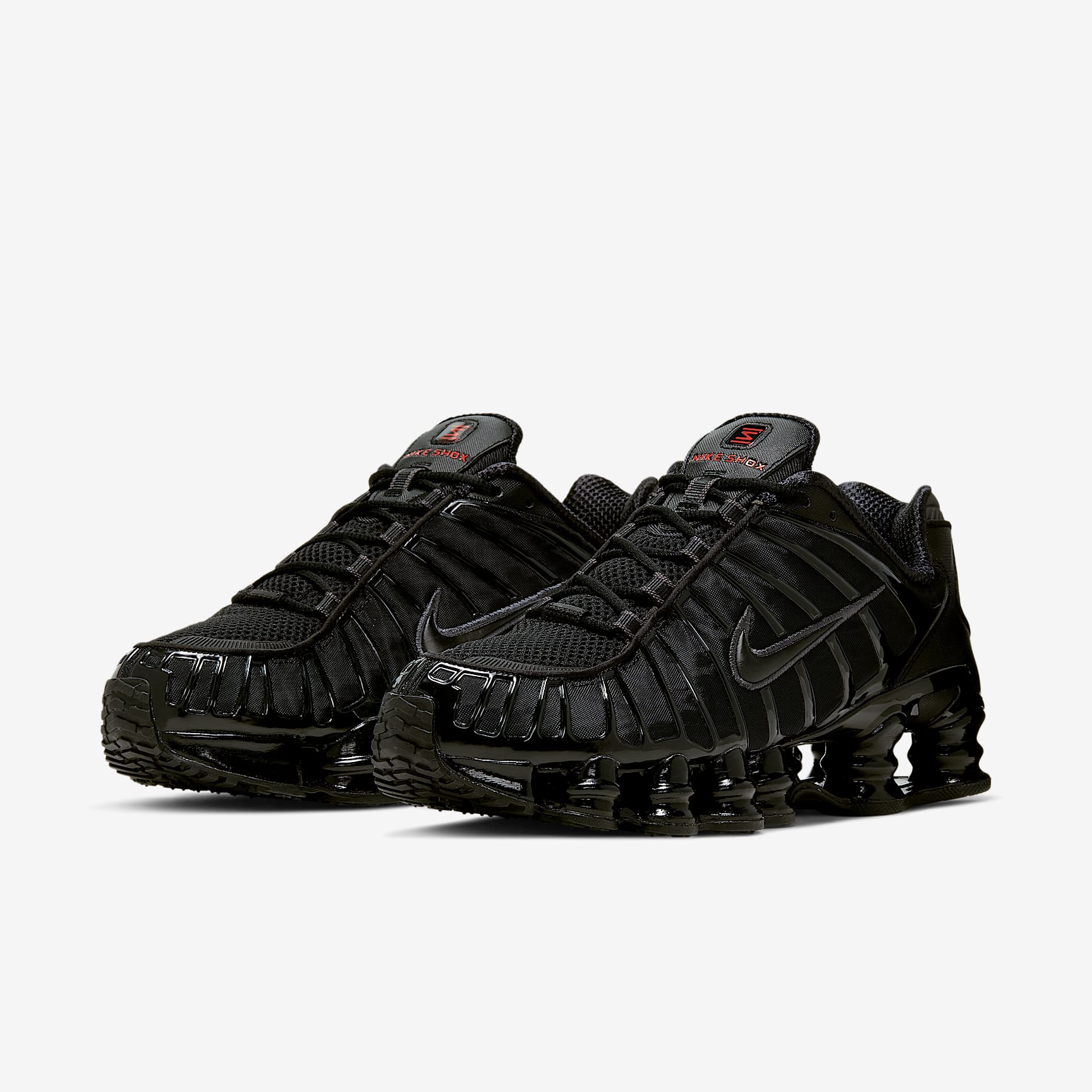 SHOCK AND AWE. The Nike Shox TL takes mechanical cushioning to the next level. A recrafted version of the 2003 icon, it features breathable mesh in the upper, with full-length Nike Shox technology for optimal impact absorption and a bold look on the streets. Benefits * Nike Shox technology combines resilient, flexible columns with moderator plates for outstanding cushioning that compresses and regains its shape. * A combination upper with a full TPU cage is a near-exact replica of the 2003 Nike Shox TL. * Moulded overlays throughout the midfoot provide support and a snug fit. * A TPU plate in the heel between the midsole and Nike Shox technology help provide lateral stability and support. * A foam midsole provides lightweight cushioning. * Non-marking, solid rubber in a modified Waffle outsole gives great traction and durability. Product details * Synthetic and textile upper * Not intended for use as personal protective equipment (PPE)