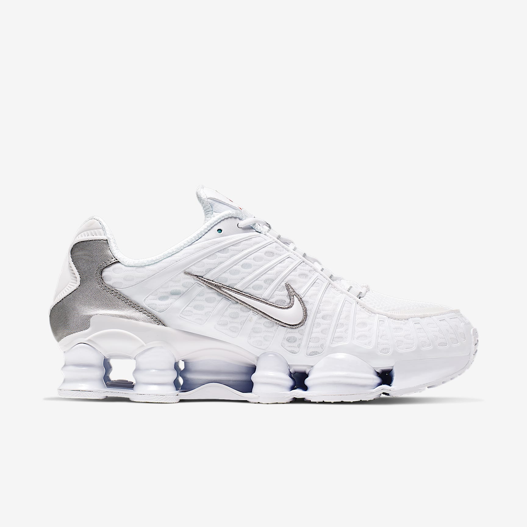 SHOCK AND AWE. The Nike Shox TL takes mechanical cushioning to the next level. A recrafted version of the 2003 icon, it features breathable mesh in the upper, with full-length Nike Shox technology for optimal impact absorption and a bold look on the streets. Benefits * Nike Shox technology combines resilient, flexible columns with moderator plates for outstanding cushioning that compresses and regains its shape. * A combination upper with a full TPU cage is a near-exact replica of the 2003 Nike Shox TL. * Moulded overlays throughout the midfoot provide support and a snug fit. * A TPU plate in the heel between the midsole and Nike Shox technology help provide lateral stability and support. * A foam midsole provides lightweight cushioning. * Non-marking, solid rubber in a modified Waffle outsole gives great traction and durability. Product details * Synthetic and textile upper * Not intended for use as personal protective equipment (PPE)