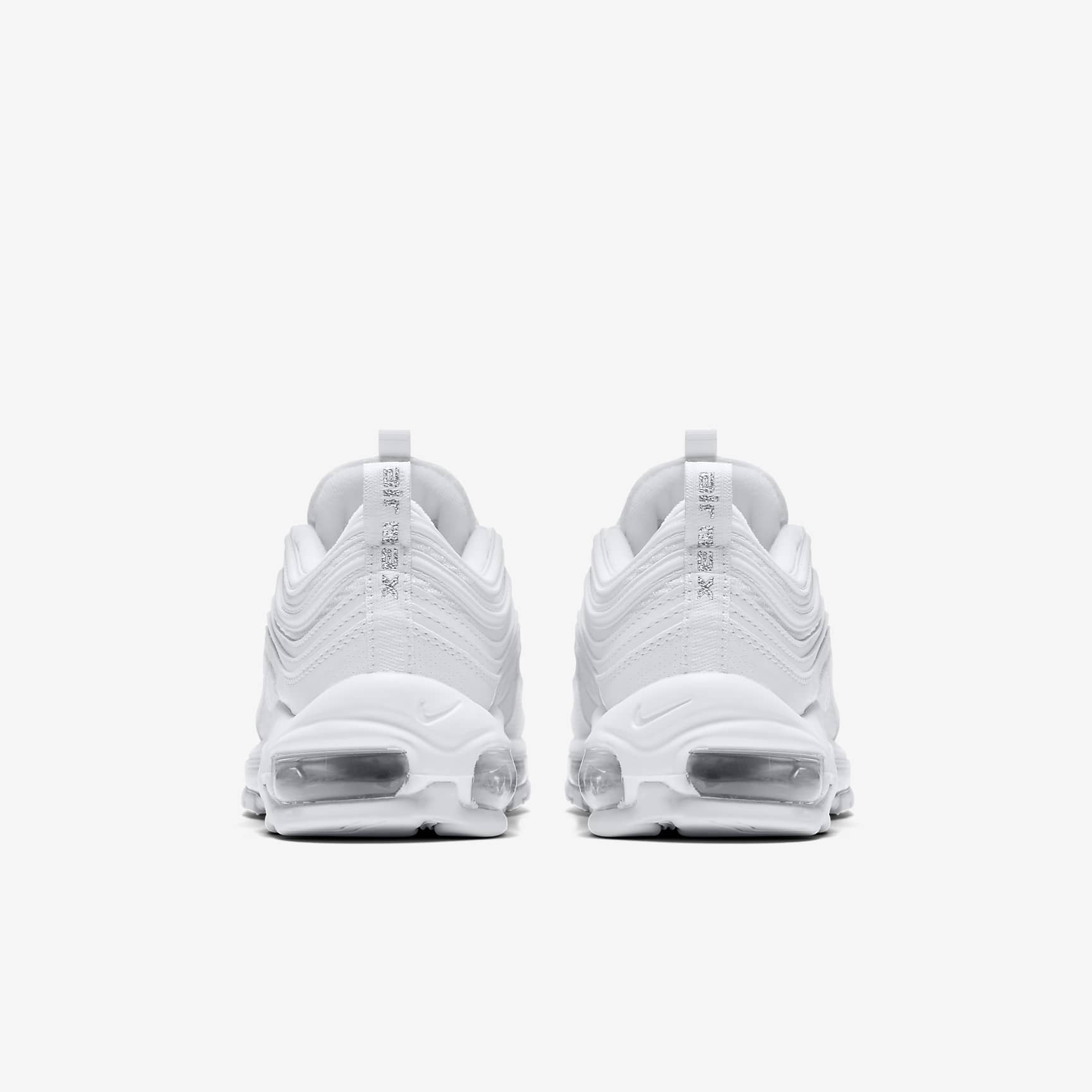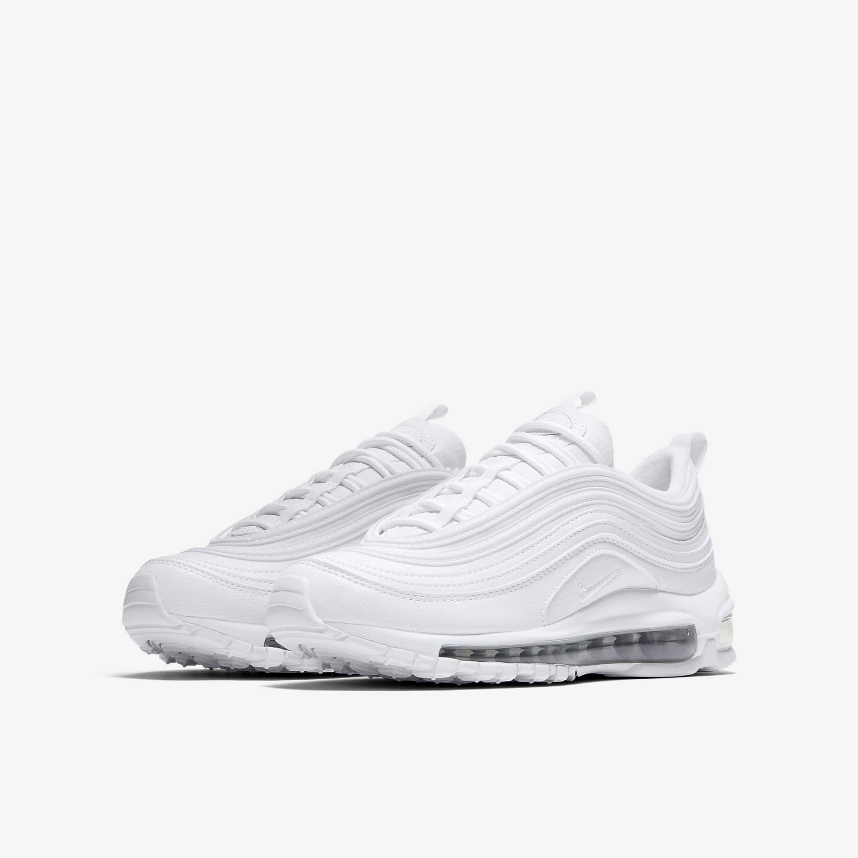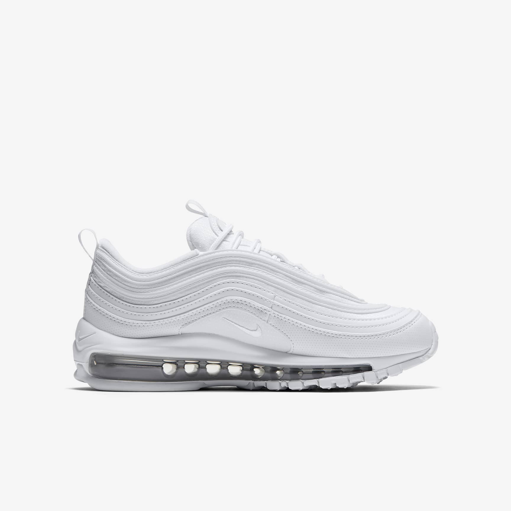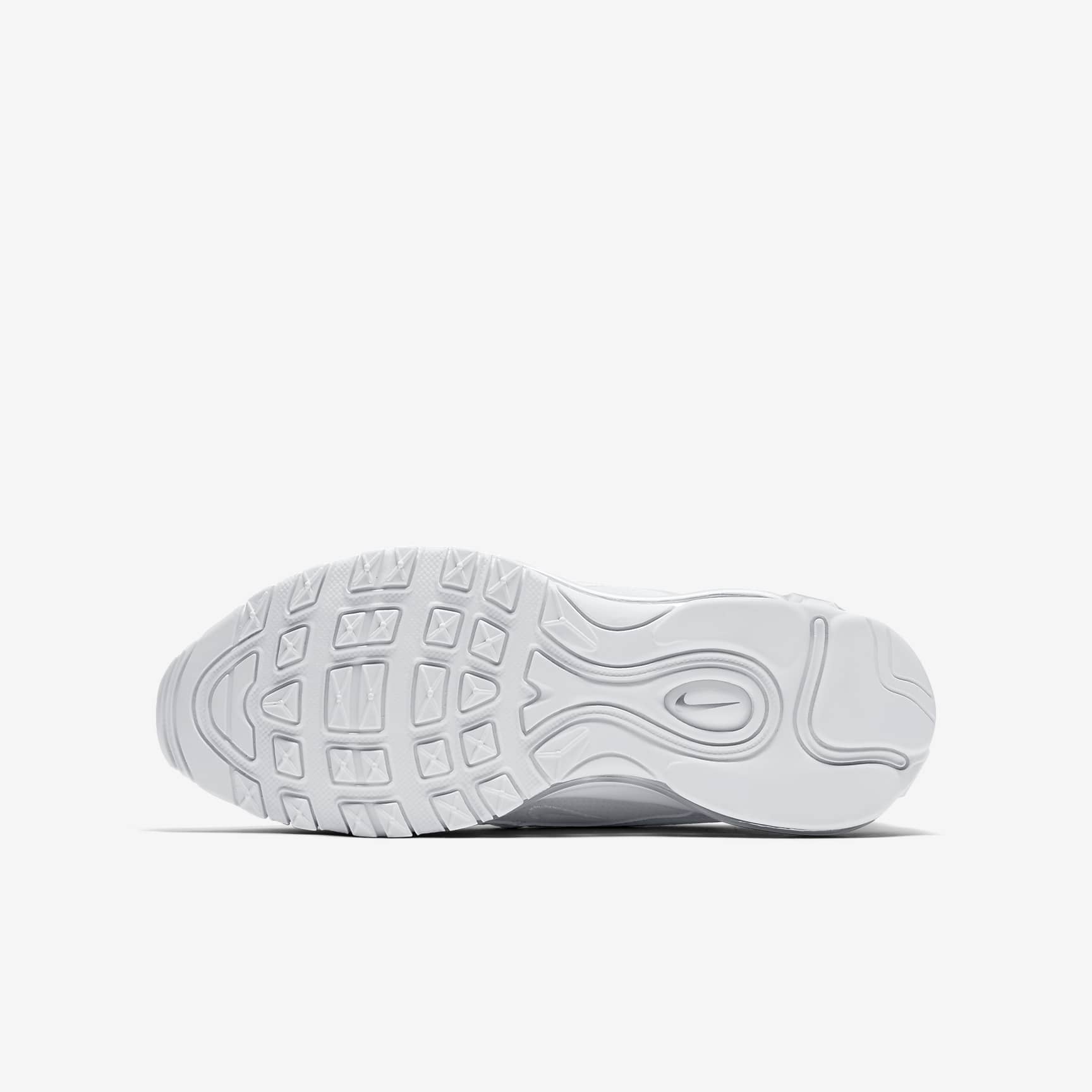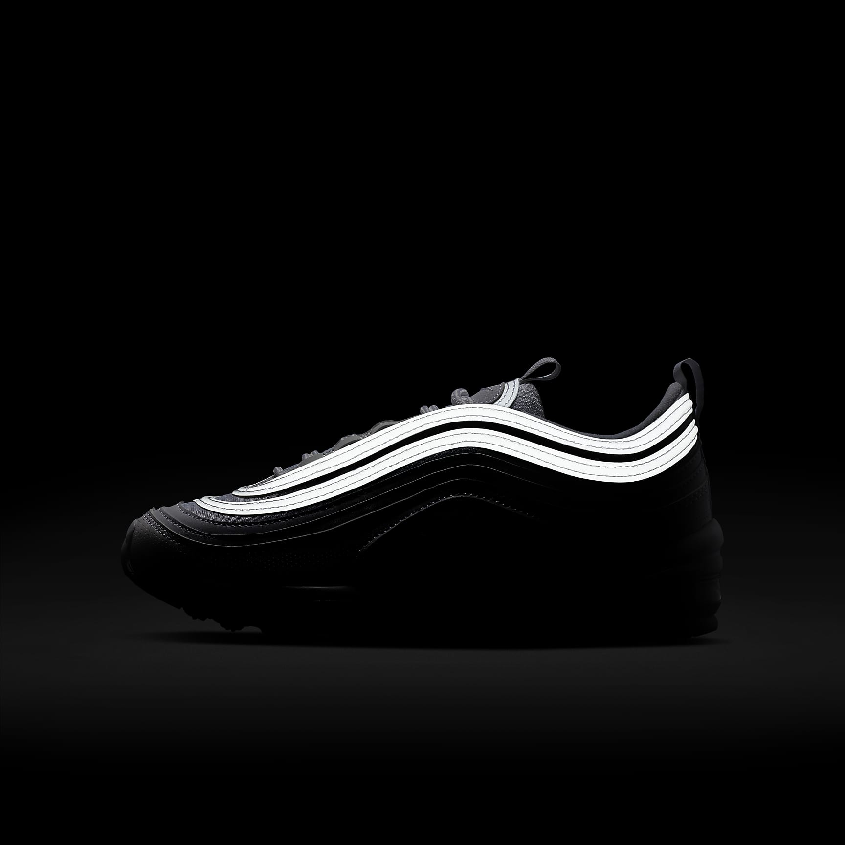 A '90S FAVE RETURNS FOR KIDS. The Nike Air Max 97 is the shoe that will have you walking on Air—literally! This icon was the first to showcase Max Air underfoot from heel to toe. Plus, it rocks the wavy, water ripple-inspired lines that make the 97 a classic forever. Benefits * Synthetic leather provides durability and a classic feel like the original. * As the first Nike shoe with visible heel-to-toe Air, the Max Air unit brings lightweight cushioning. * Rubber sole provides durable traction. Product Details * Classic laces * Pull tabs on heel and tongue * Not intended for use as Personal Protective Equipment (PPE) Product Details * Pull tabs on heel and tongue * Not intended for use as Personal Protective Equipment (PPE)