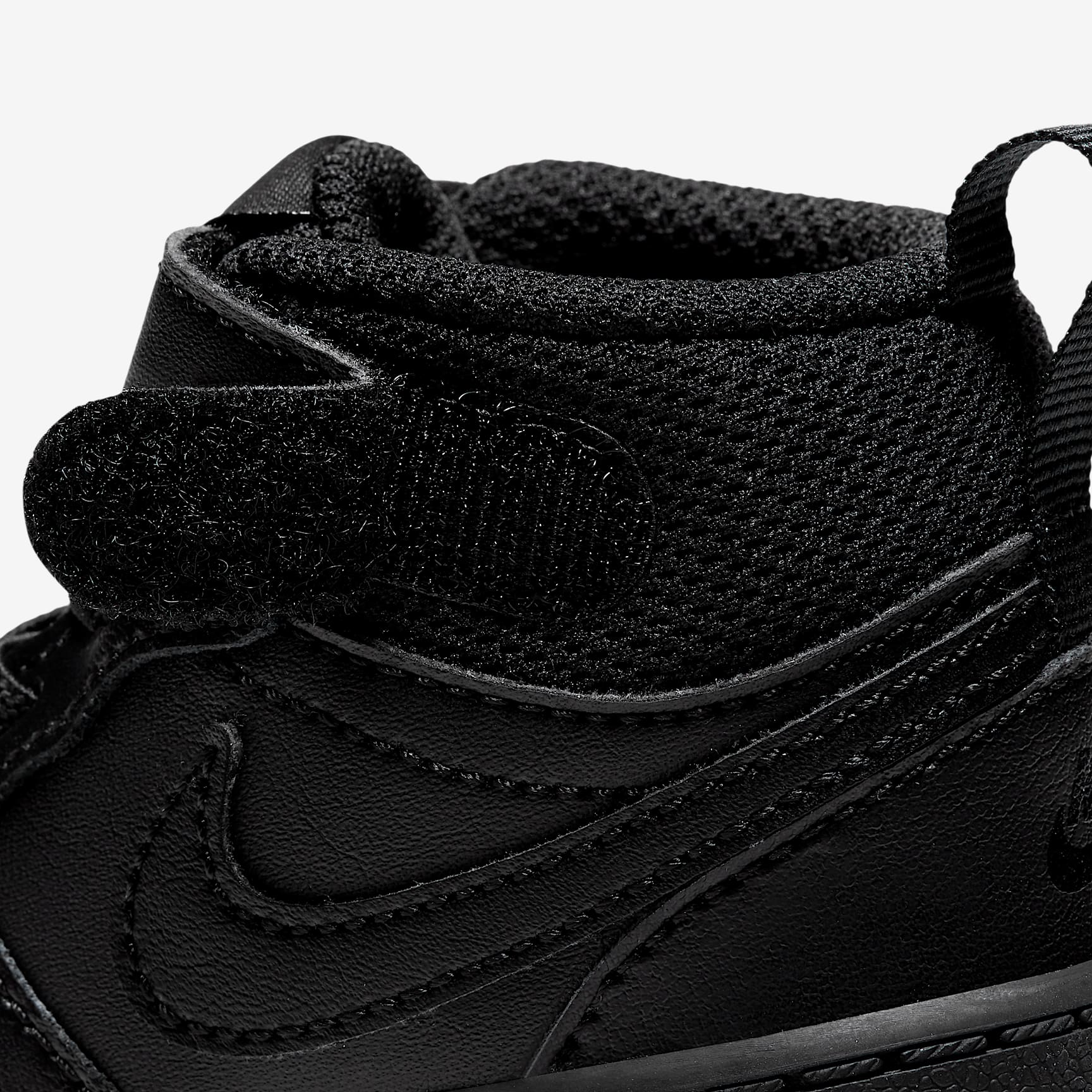 ALL-STAR COMFORT. Your little one will feel like an all-star off the court with the Nike Court Borough Mid 2. The classic mid-top design features durable leather for a premium look and feel. A hook-and-loop strap makes it easy to take the shoe on and off. Benefits * Leather is durable and easy to clean. * Elastic laces and a hook-and-loop strap make it easy to take the shoe on and off. * Padding around the tongue and ankle provide extra comfort. * Grooves in the sole make it flexible. Product Details * Cupsole construction for a classic look and feel