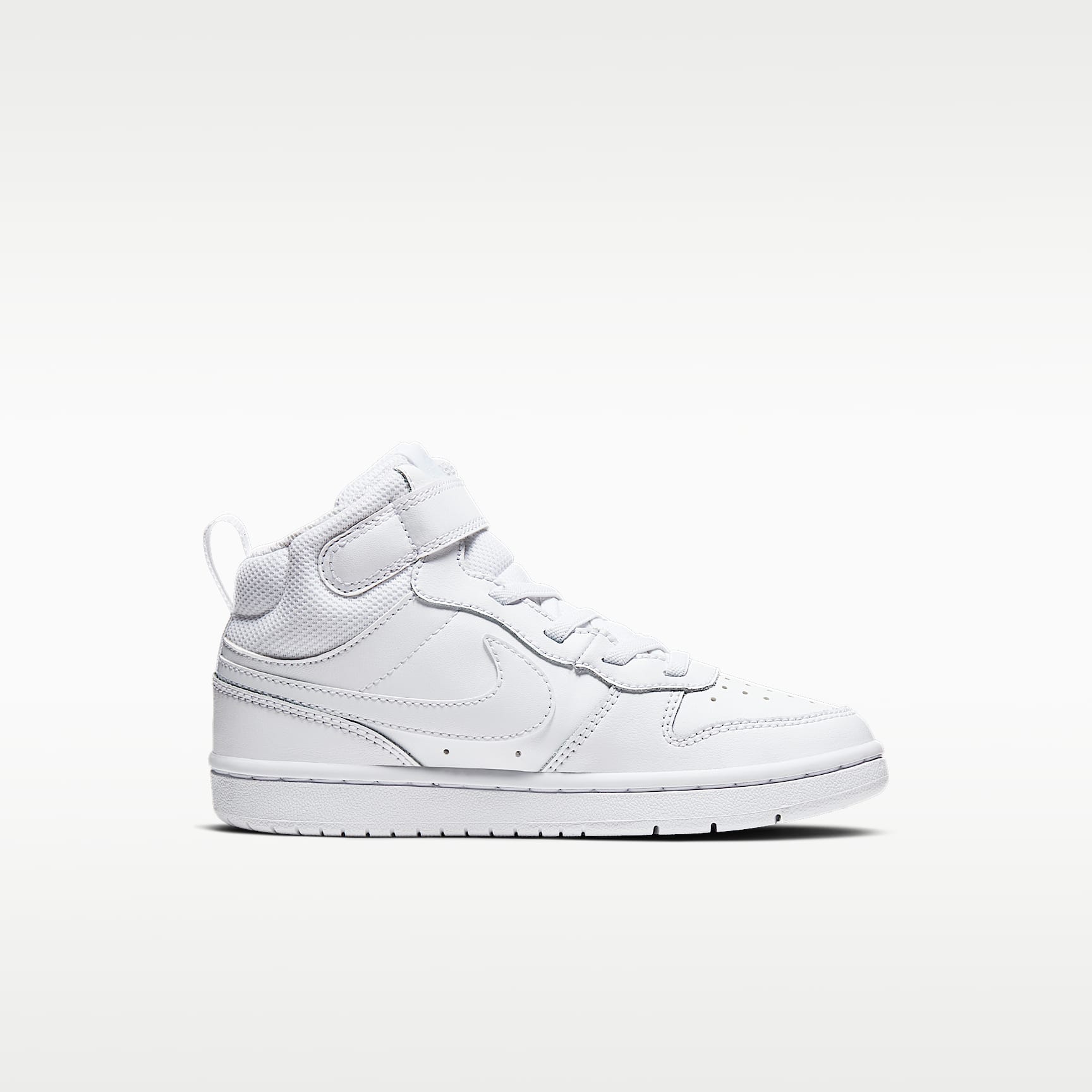 ALL-STAR COMFORT. Your little one will feel like an all-star off the court with the Nike Court Borough Mid 2. The classic mid-top design features durable leather for a premium look and feel. A hook-and-loop strap makes it easy to take the shoe on and off. Built to Last Leather gives a classic feel that's durable and easy to clean. Easy On, Easy Off Elastic laces with a hook-and-loop strap make it easy to take the shoe on and off. All-Day Traction A full-length rubber sole provides durable traction where you need it. Plus, an "all-day play" graphic is stamped on. Product Details * Cupsole construction for a classic look and feel * Extra padding around the ankle and tongue