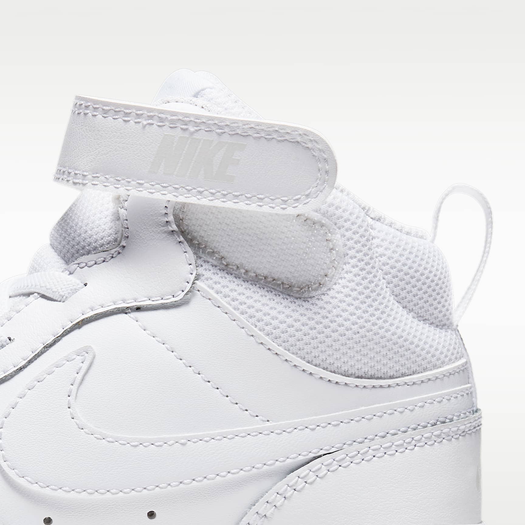 ALL-STAR COMFORT. Your little one will feel like an all-star off the court with the Nike Court Borough Mid 2. The classic mid-top design features durable leather for a premium look and feel. A hook-and-loop strap makes it easy to take the shoe on and off. Built to Last Leather gives a classic feel that's durable and easy to clean. Easy On, Easy Off Elastic laces with a hook-and-loop strap make it easy to take the shoe on and off. All-Day Traction A full-length rubber sole provides durable traction where you need it. Plus, an "all-day play" graphic is stamped on. Product Details * Cupsole construction for a classic look and feel * Extra padding around the ankle and tongue