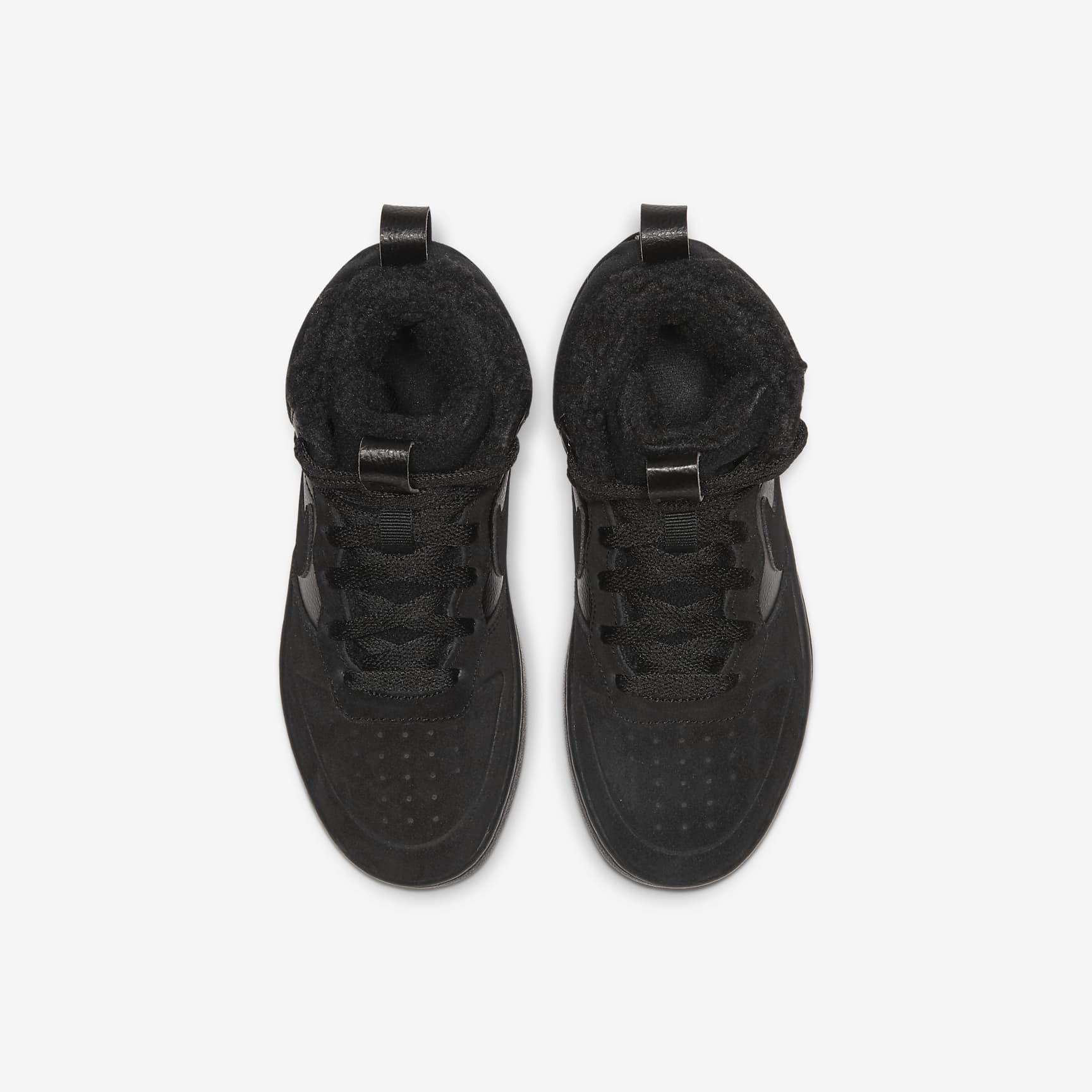 AN ALL-STAR LOOK, WINTERIZED. The Nike Court Borough Mid 2 has a structured, supportive fit with a retro basketball design so little ones can look like an all-star off the court. Fuzzy insulation inside helps keep little feet cosy and warm. Benefits * Debossed real and synthetic leather with a warm liner helps keep little feet warm and comfortable. * An oversized tongue and heel pull tab make it easy to pull this shoe on and take it off. * Rubber sole has excellent traction and durability.