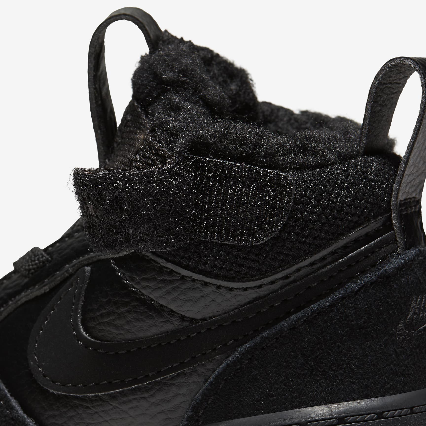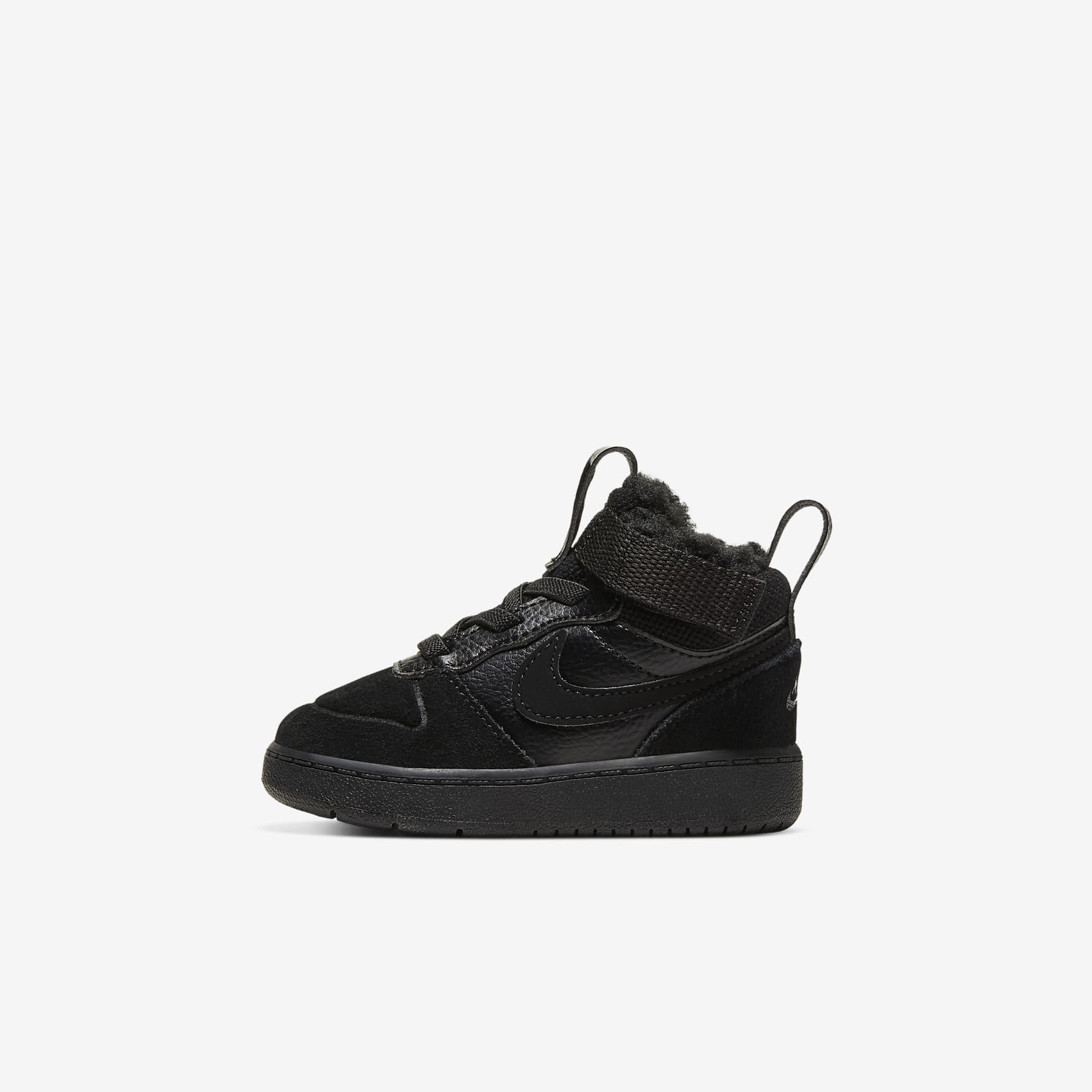 AN ALL-STAR LOOK, WINTERIZED. The Nike Court Borough Mid 2 has a structured, supportive fit with a retro basketball design so little ones can look like an all-star off the court. Fuzzy insulation inside helps keep little feet cosy and warm and a hook-and-loop strap makes it easy to put on and take off. Benefits * Debossed real and synthetic leather with a warm liner helps keep little feet warm and comfortable. * A hook-and-loop strap makes it easy to put this shoe on and take it off. * Foam sockliner helps keep little feet comfortable. * Rubber sole is durable and provides great traction.
