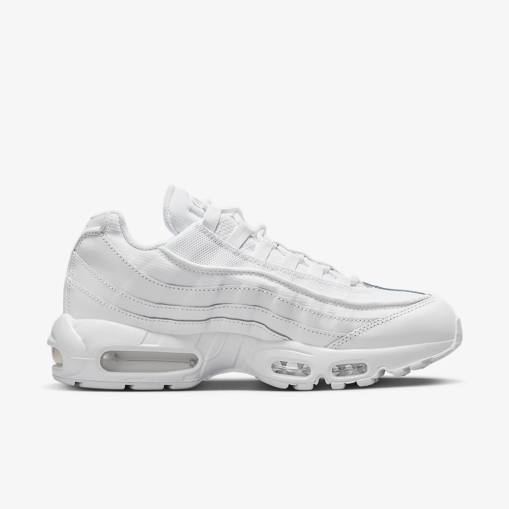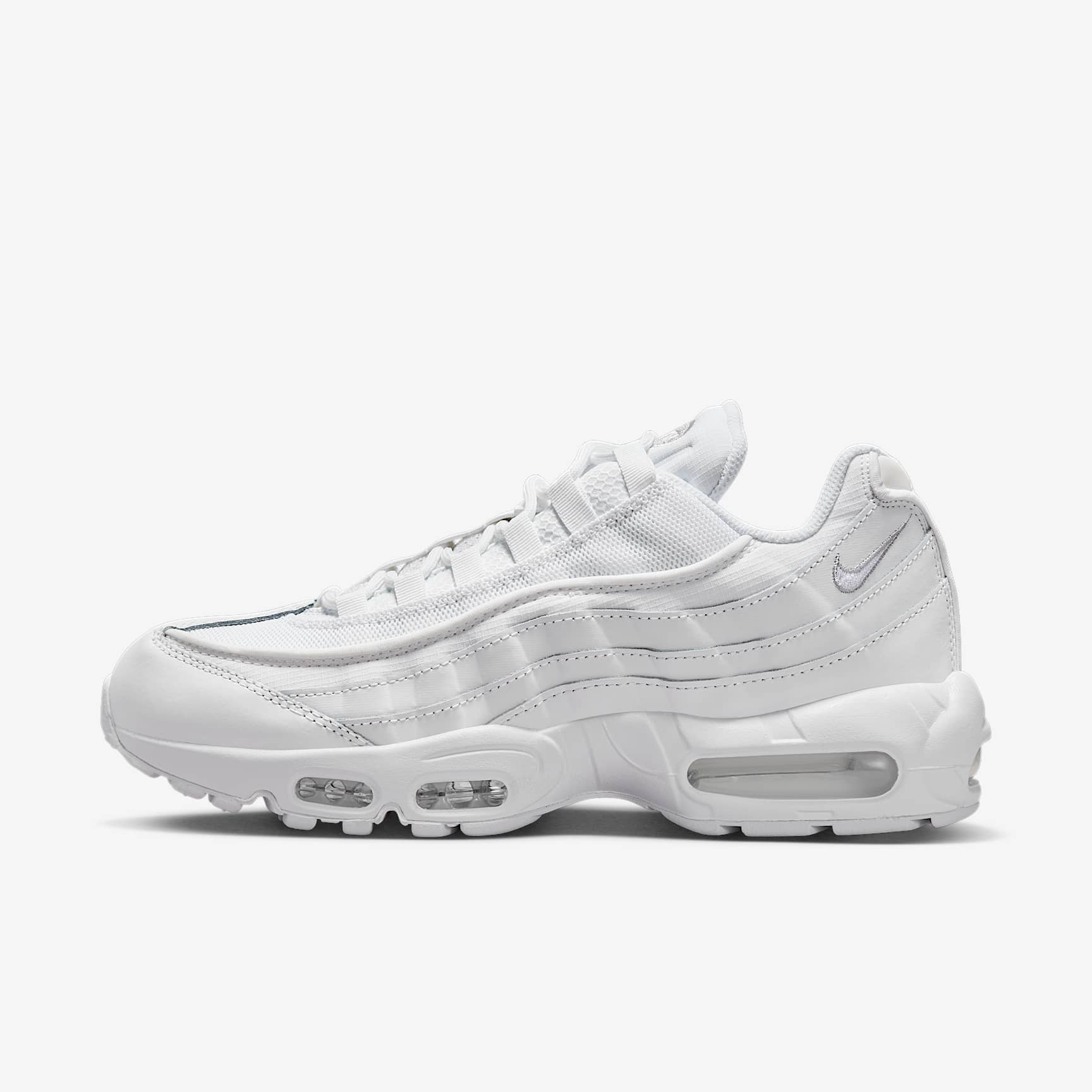 RUNNING DNA MEETS HUMAN DNA. Taking inspiration from the human body and running DNA, the Nike Air Max 95 Essential mixes unbelievable comfort with head-turning style. The iconic side panels represent muscles while visible Nike Air in the heel and forefoot cushions your every step. Benefits * Visible Nike Air cushioning adds Nike DNA to your style and delivers all-day comfort while the upper draws inspiration from the human body—the midsole represents the spine, graduated panels are the muscles and the laces are the shoe's ribs. * Breathable mesh upper is reinforced with leather and synthetic overlays for a classic look and ventilation that lasts. * Innovative lacing system for a snug, customised fit. * Foam midsole with flex grooves feels comfortable and lets you move freely. Product Details * Not intended for use as Personal Protective Equipment (PPE)