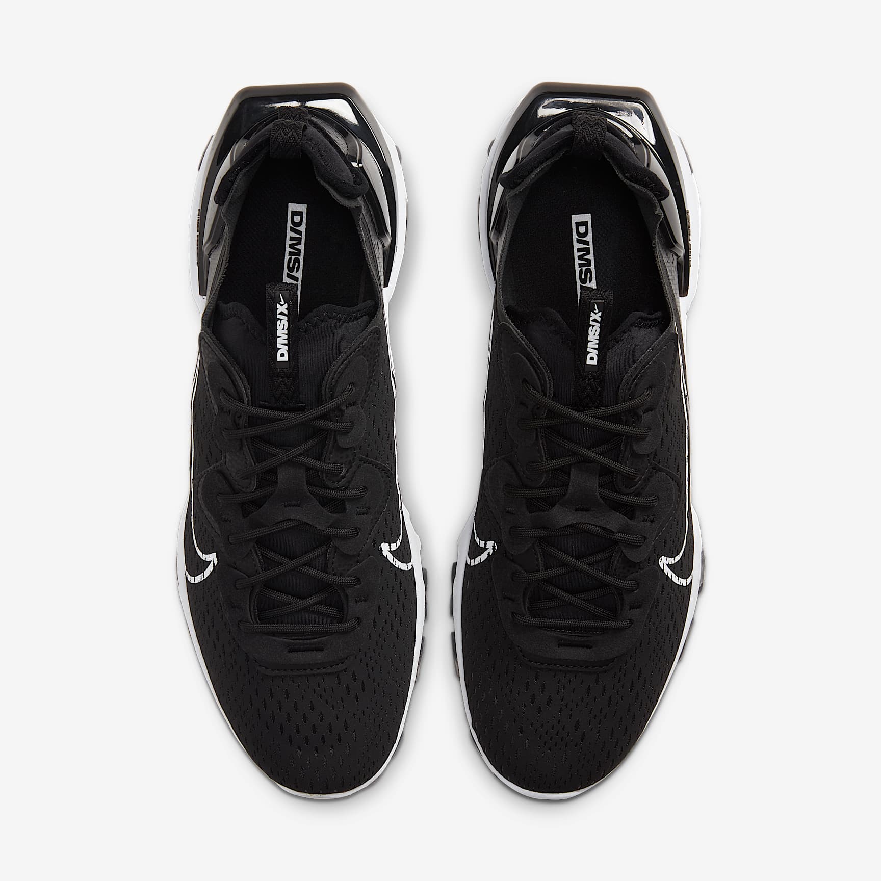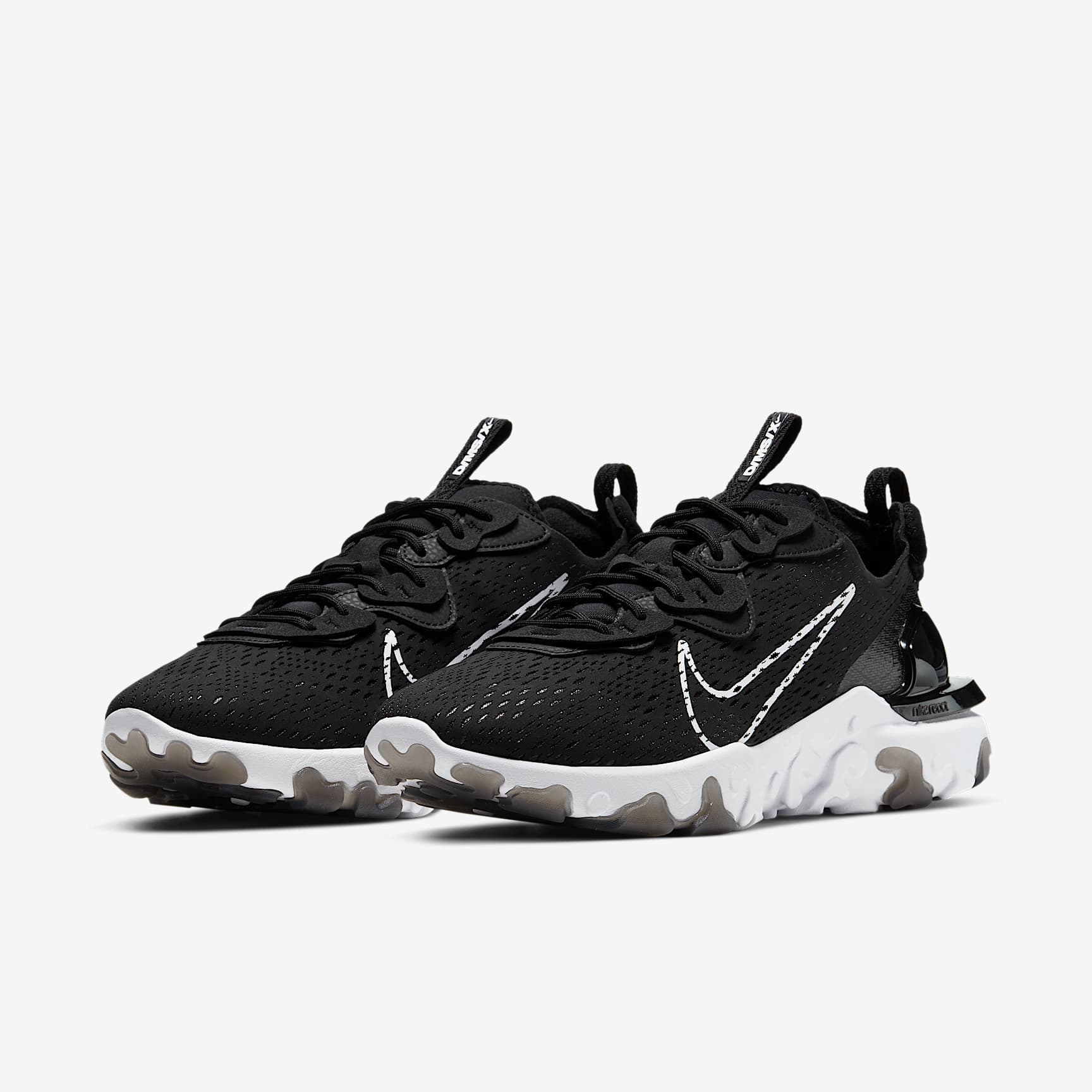 SURREAL COMFORT. BORN FROM DREAMS. The Nike React Vision is a story of surreal comfort. Layered textures, shapes and vivid colours are combined in a design influenced by the exaggerated world of our dreams, while React foam and an ultra-plush tongue provide surreal comfort. Dreamworld Extravagance Richly textured fabrics add to the continuously shifting sensation. In combination with a transparent heel clip and distorted sides, they create a unique layered look. Futuristic Materials The revolutionary seamless mesh on the upper allows for colour pops and surreal textures. Its subtle pattern adds the perfect amount of bite to your look. Dream-Like Comfort Nike React foam delivers unrivalled all-day comfort while the ultra-plush tongue combines with the padded heel for a soft, dreamlike feel. DIY Style Exposed stitching on the heel and tongue combines with the patchwork eyestays for a multi-dimensional, DIY look. Product Details * Rubber pods on the sole add traction and durability * D/MS/X label on pull tabs and insole * Outlined Swoosh is printed on side