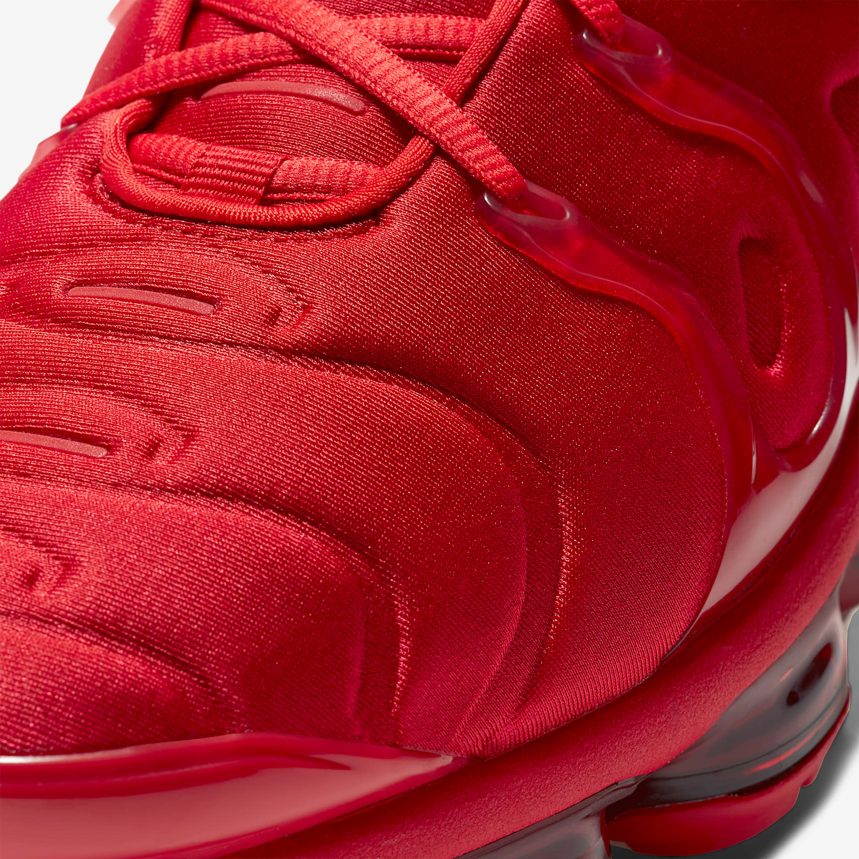 REVOLUTIONARY COMFORT MEETS OG FADE. The Nike Air VaporMax Plus looks to the past and propels you into the future. With a design that nods to the '98 Air Max Plus, it adds revolutionary VaporMax Air technology to ramp up the comfort and modern look. Featuring a striking red palette and the OG's wavy design lines, it shows off your defiant style. Benefits * VaporMax Air technology provides ultra lightweight cushioning. * Floating cage around the foot mimics the OG '98 design, adding heritage style with support. * Bold, triple red colors add to the defiant look of this powerhouse Air Max. * Cushioned fabric and synthetic material provide durability. * Rubber pods in high-wear areas add traction and durability. Product Details * Not intended for use as Personal Protective Equipment (PPE)