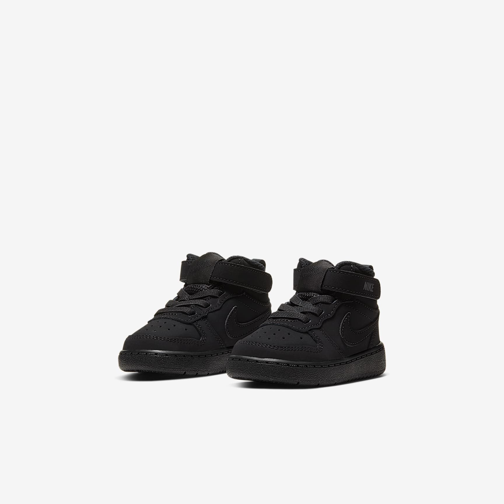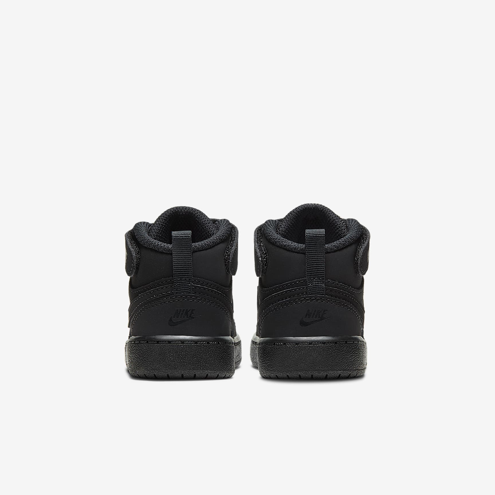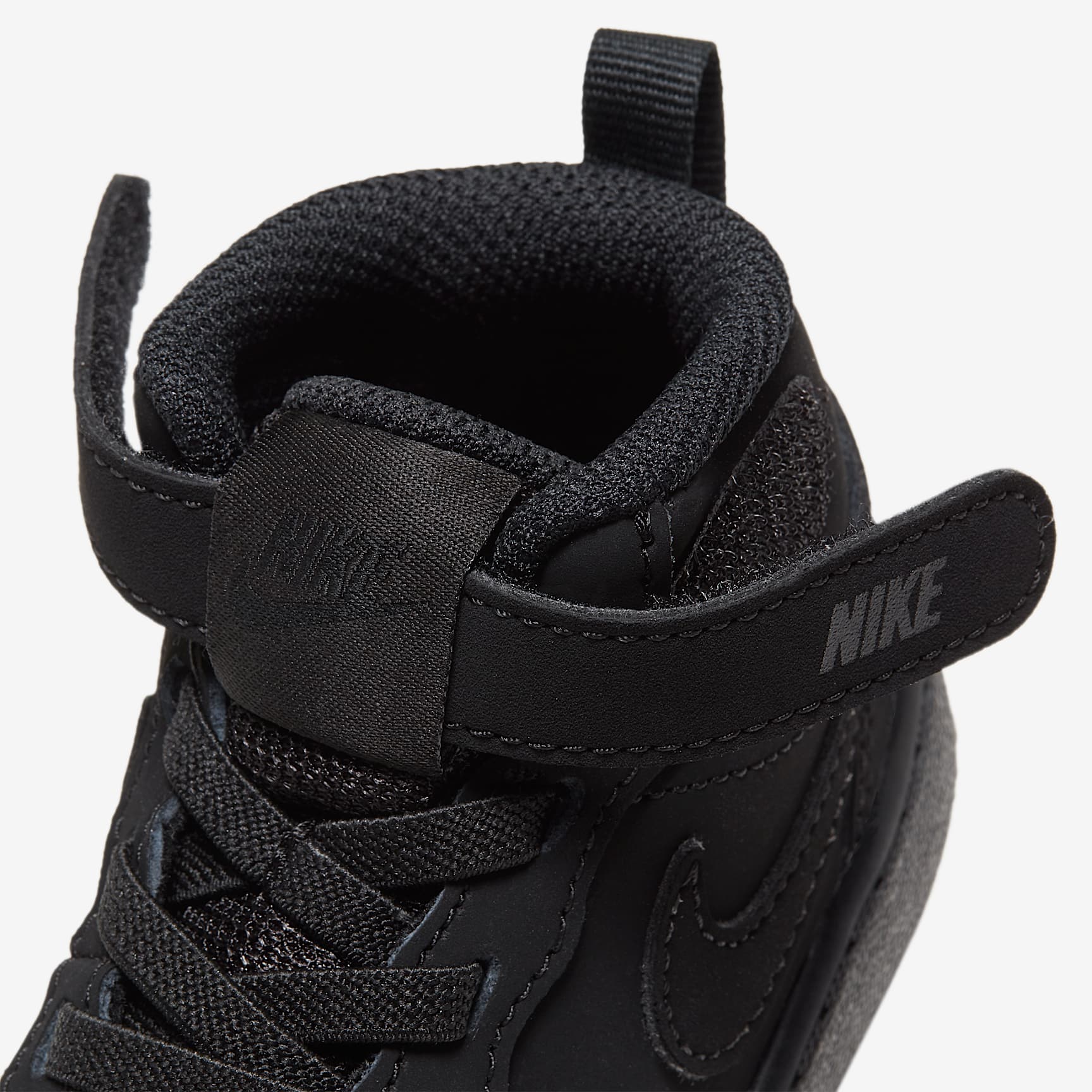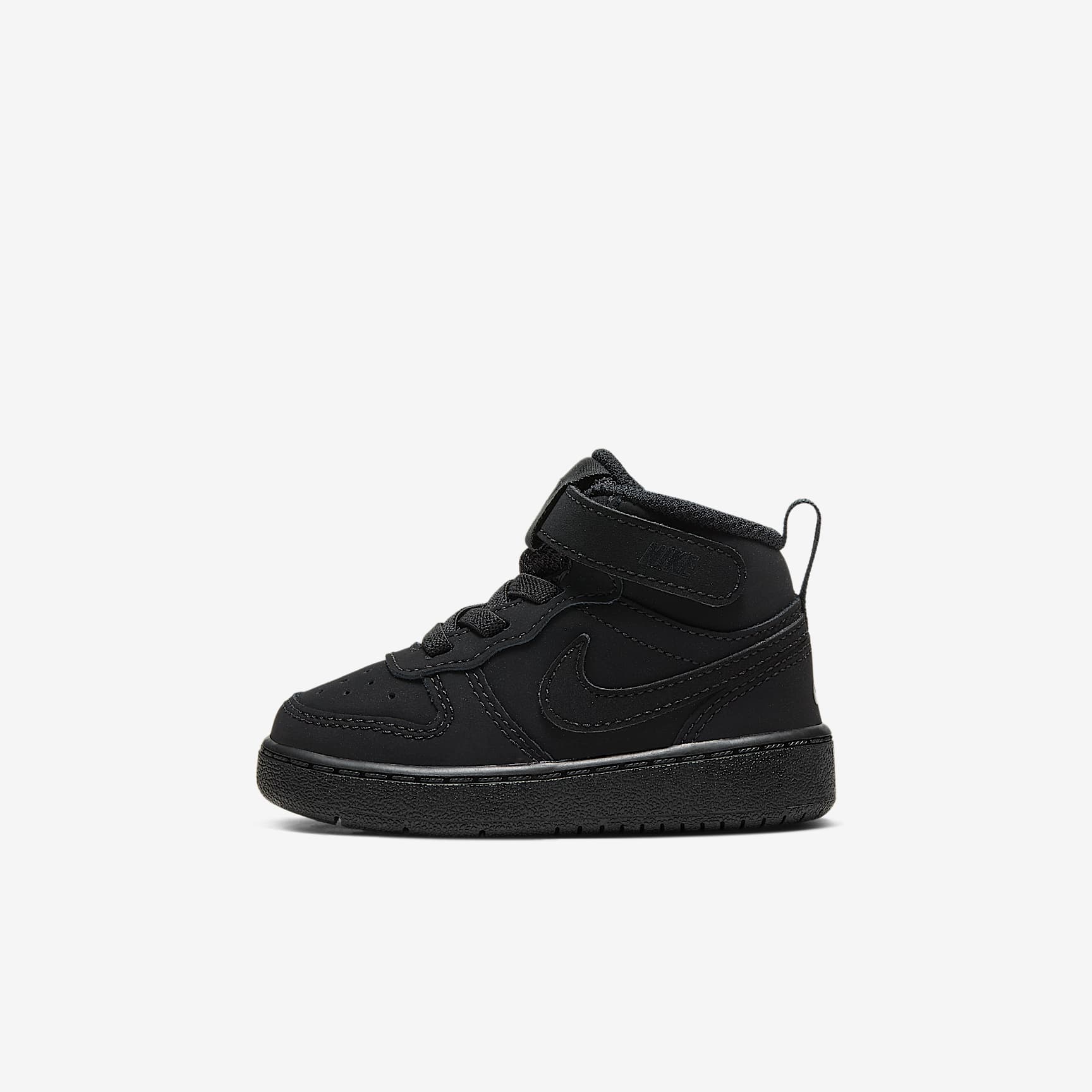 ALL-STAR COMFORT. Your little athlete will feel like an all-star off the court in the Nike Court Borough Mid 2. The classic high-top design features durable leather for a premium look and feel. Hook-and-loop straps create a secure fit and make it easy to take the shoe on and off. Benefits * Leather is durable and easy to clean. * Hook-and-loop straps make it easy to get the shoe on and off. * Padding around the tongue and ankle provides extra comfort. * Grooves in the sole make it flexible.