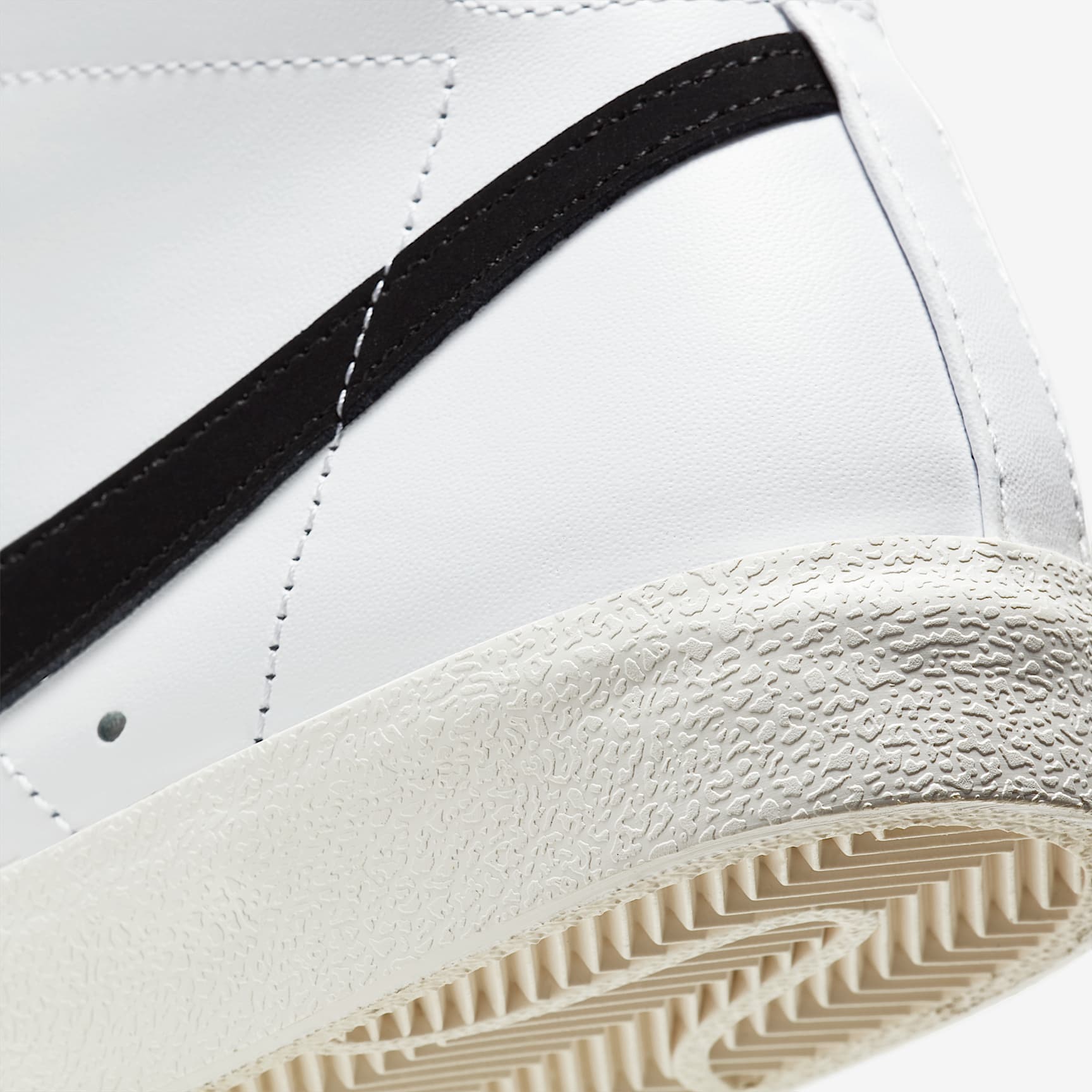 VINTAGE HOOPS STYLE. Styled for the '70s. Loved in the '80s. Classic in the '90s. Ready for the future. The Nike Blazer Mid '77 delivers a timeless design that's easy to wear. Its unbelievably crisp leather upper gets broken in beautifully, and is paired with bold retro branding and luscious suede accents for a premium feel. Exposed foam on the tongue and a special midsole finish make it look like you've just pulled them from the history books. Go ahead, perfect your outfit. Benefits * Leather and synthetic upper looks crisp and is easy to style. * Vintage treatment on the midsole adds the perfect touch of retro. * Autoclave construction fuses the outsole to the midsole, for a streamlined look that's timeless. * Exposed foam on the tongue provides a throwback look. * Non-marking, solid-rubber outsole with a herringbone pattern provides excellent traction and durability that leaves the imprint you love.