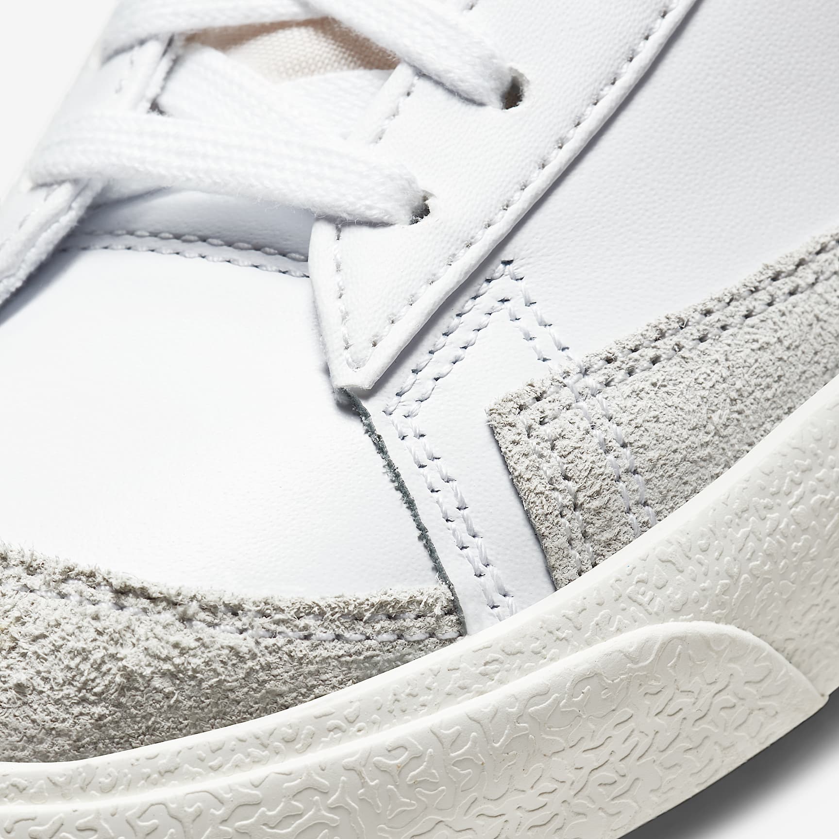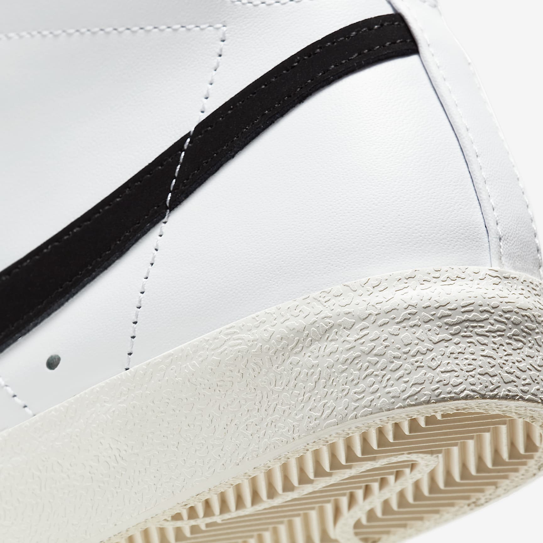 VINTAGE HOOPS STYLE. Styled for the ‘70s. Loved in the ‘80s. Classic in the ‘90s. Ready for the future. The Nike Blazer Mid ’77 delivers a timeless design that’s easy to wear. Its unbelievably crisp leather upper breaks in beautifully and pairs with bold retro branding and luscious suede accents for a premium feel. Exposed foam on the tongue and a special midsole finish make it look like you’ve just pulled them from the history books. Go ahead, perfect your outfit. Benefits * Leather and synthetic upper looks crisp and is easy to style. * Vintage treatment on the midsole adds the perfect touch of retro. * Autoclave construction fuses the outsole to the midsole for a streamlined look that’s timeless. * Exposed foam on the tongue provides a throwback look. * Non-marking, solid-rubber outsole with herringbone pattern for excellent traction and durability that leaves the imprint you love.
