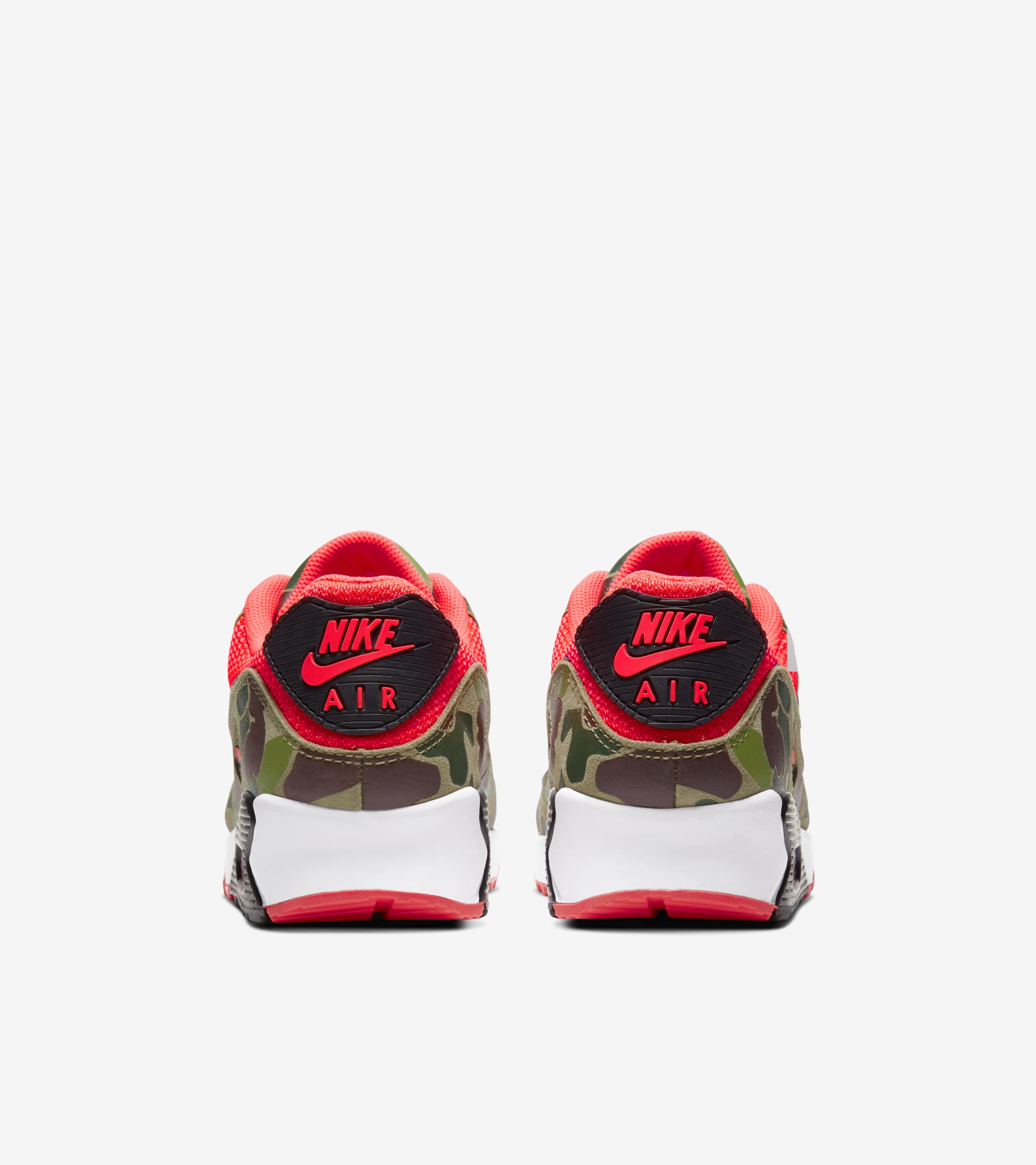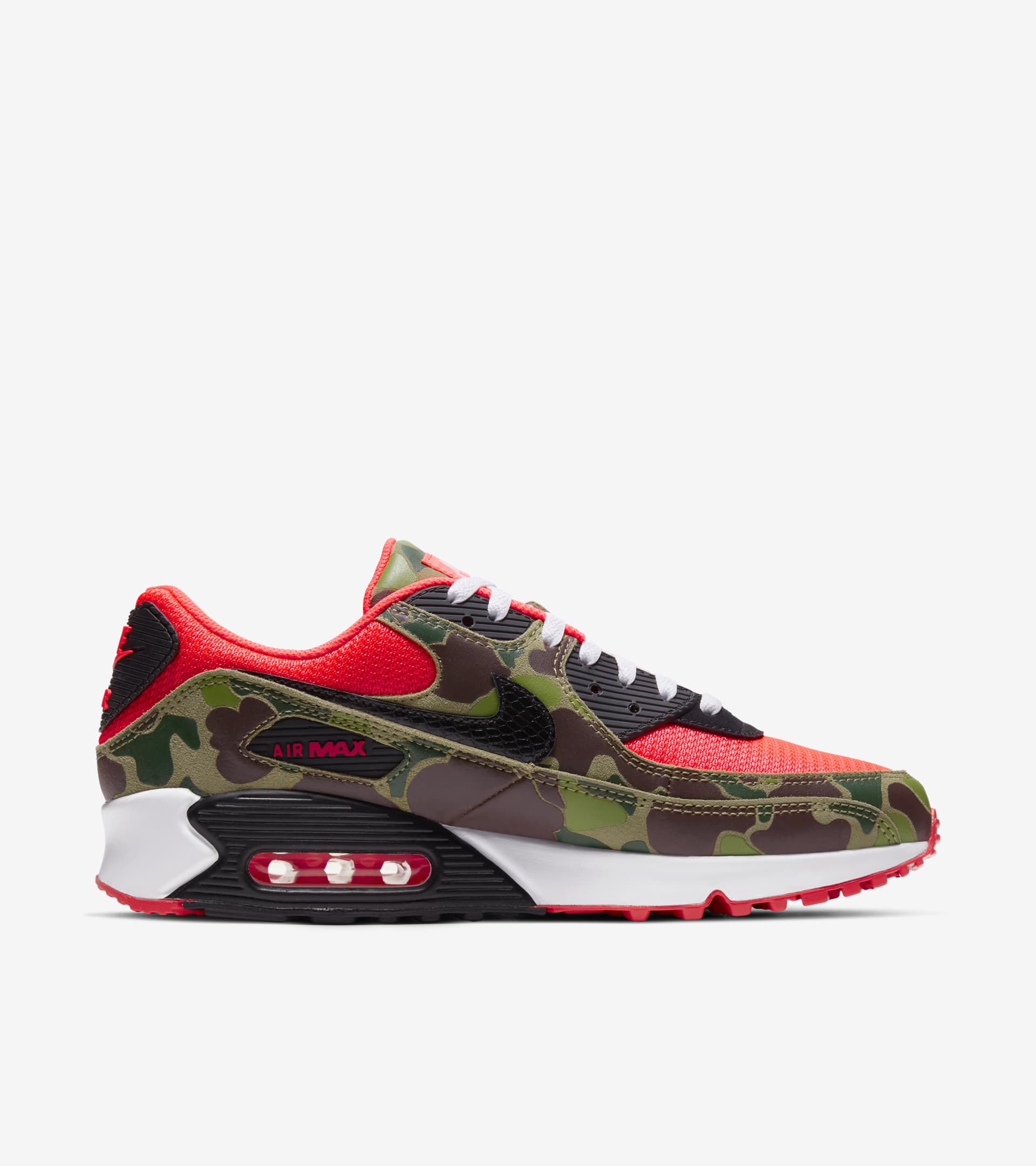 Now you see me, now you don't. If you're going to make a statement, you might as well do it from the ground up. This classic Air Max 90 gets a bold refresh with Dark Sage camo against vibrant Solar Red, paired with a mash-up of textures like real and synthetic leather and breathable textiles. And it comes fully equipped with all the signature AM90 elements like visible Max Air cushioning and the iconic Waffle sole. Hide out or be seen—all the while giving a nod to the 2013 Atmos release with this striking take on the legendary sneaker. SKU: CW6024-600