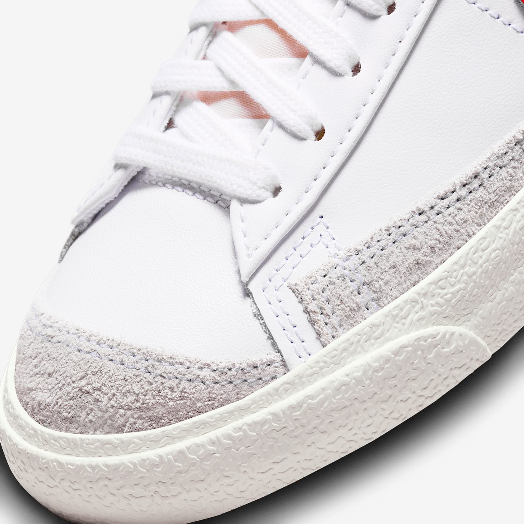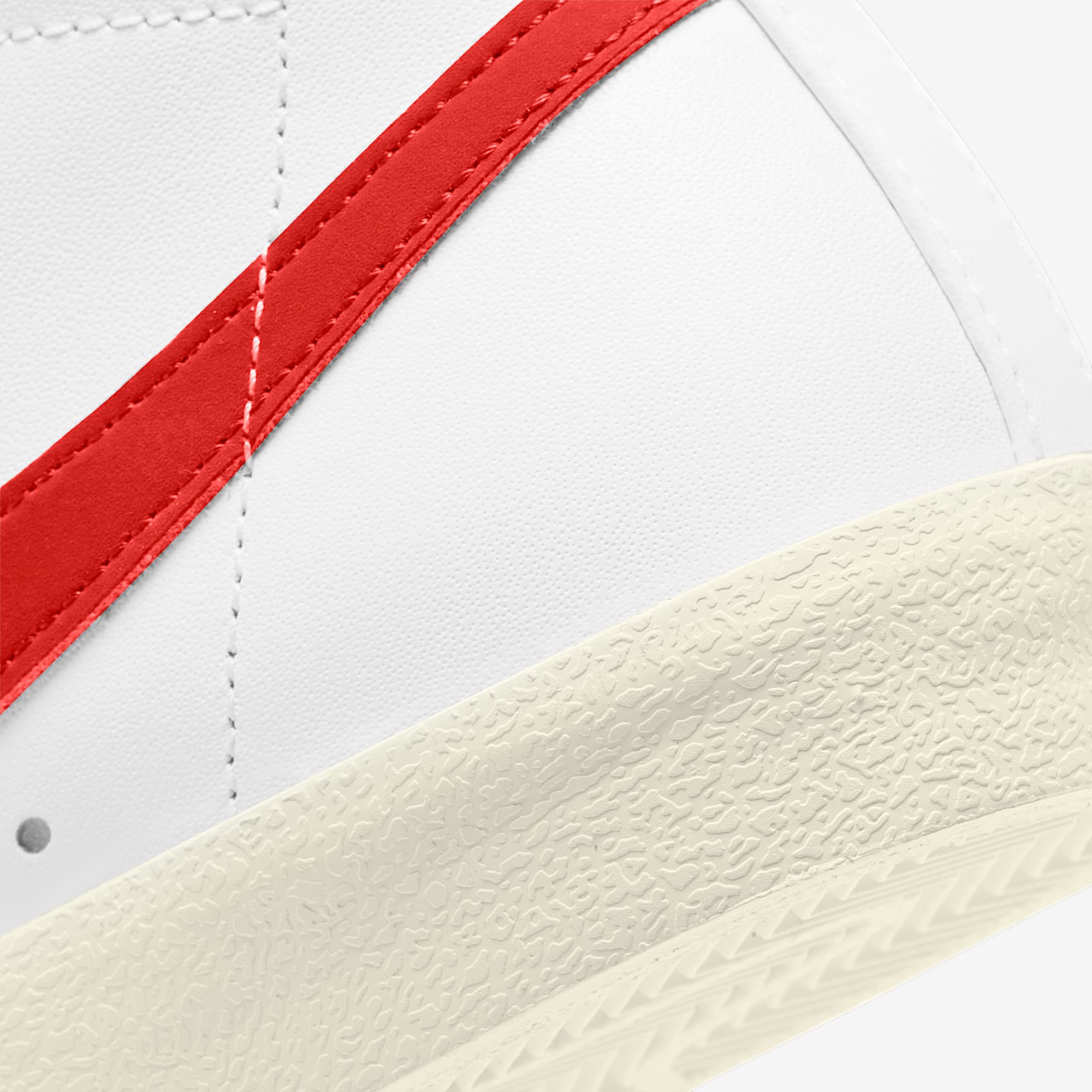 VINTAGE HOOPS STYLE. Styled for the '70s. Loved in the '80s. Classic in the '90s. Ready for the future. The Nike Blazer Mid '77 delivers a timeless design that's easy to wear. Its unbelievably crisp leather upper gets broken in beautifully, and is paired with bold retro branding and luscious suede accents for a premium feel. Exposed foam on the tongue and a special midsole finish make it look like you've just pulled them from the history books. Go ahead, perfect your outfit. Benefits * Leather and synthetic upper looks crisp and is easy to style. * Vintage treatment on the midsole adds the perfect touch of retro. * Autoclave construction fuses the outsole to the midsole, for a streamlined look that's timeless. * Exposed foam on the tongue provides a throwback look. * Non-marking, solid-rubber outsole with a herringbone pattern provides excellent traction and durability that leaves the imprint you love.