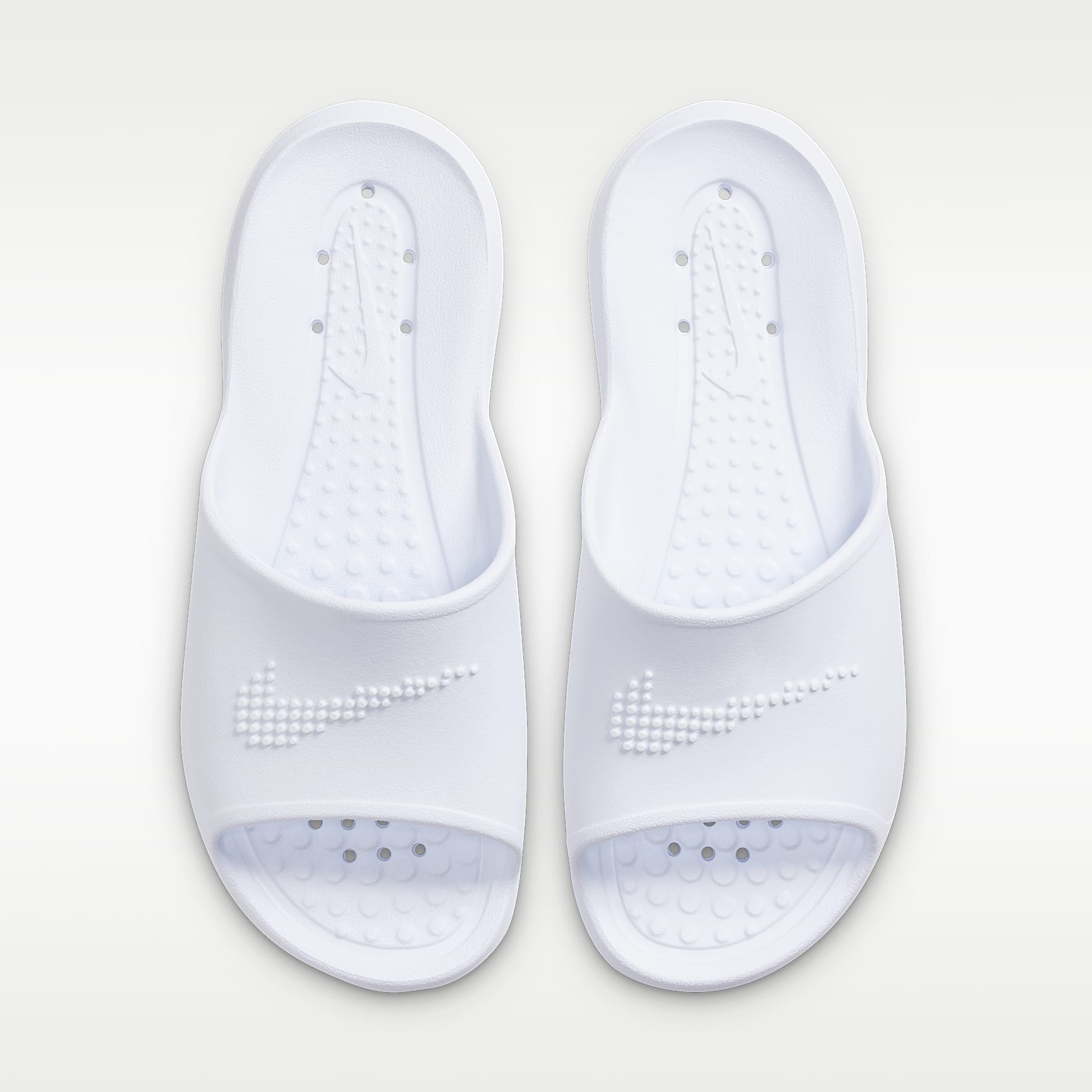 FROM SHOWER TO FUN WITH LAZY-DAY COMFORT. The workout's complete and now there's just one more thing—you have to hit the showers before you head out to the fun. We've got your back with the Nike Victori One. The versatile, one-piece foam design feels super soft and comfortable while traction patterns on the sole help with wet surfaces. It dries quickly too, so no one will know you've just stepped from the shower as you slide up to the festivities. Benefits * New, softer foam adds unbelievable cushioning and comfort that lasts. * The contoured footbed cradles and supports your foot while its grip pattern helps keep your foot in place. * The rolled top edge of the strap adds to the comfort while its thick padding feels soft. * The new strap design adds additional space, accommodating more sizes. * The sole features a new pattern for added traction while perforations add ventilation and easy drainage if worn in the showers. Product Details * Textured Swoosh design on strap