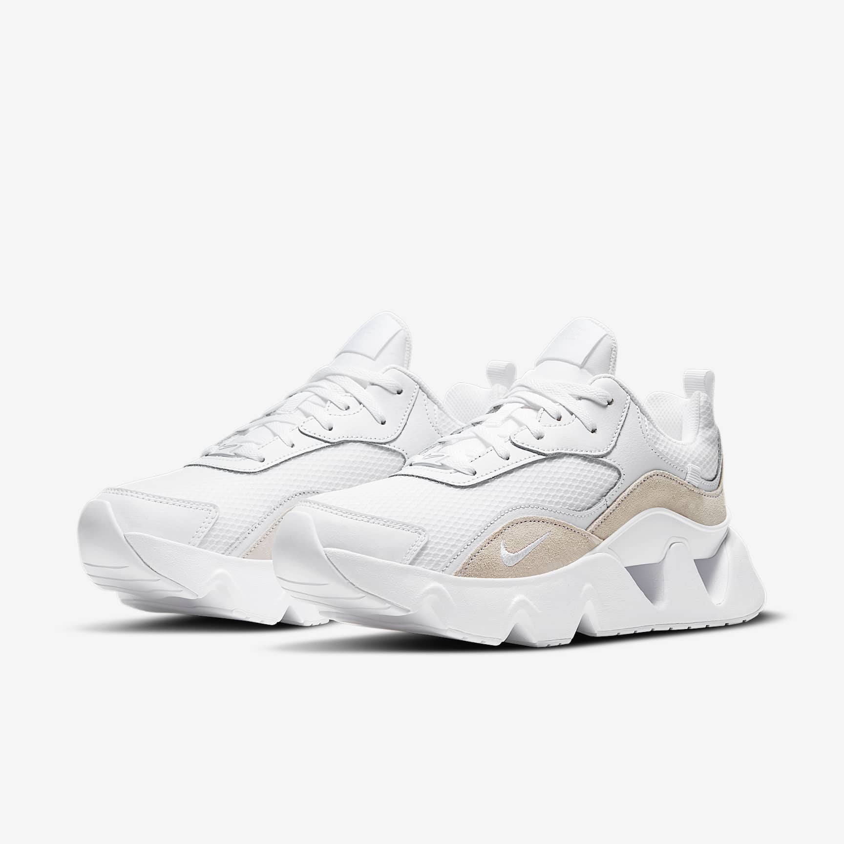 FASHION STARTS FROM THE FEET. The Nike RYZ 365 2 brings you a futuristic take to classic '90s sneakers. The eye-catching midsole with stylized cutouts modernizes the chunky style with an airy aesthetic. A rich mixture of materials on the upper adds texture and style versatility. To top it off, the DIY lacing lets you personalize your style—wrap under the midsole or through webbing on the side and heel for a delicate touch to your bold look. Benefits * The incredibly soft and eye-catching midsole features see-through cutouts, modernizing the '90s sneaker look with an airy aesthetic that feels great. * The 2 sets of lacing let you personalize your style—wrap under the midsole or through the webbing details on the sides and heel. The DIY look can even be wrapped up and around your ankle. * The upper combines a rich mixture of materials like airy mesh, durable leather and stylized webbing. * The TPU plate above the midsole cutouts looks sporty, adds support and gives you a flash of that ‘90s style you love. * The padded, low-cut collar looks sporty and feels comfortable. Product Details * Large, triangular flex grooves in sole help you move naturally * The rubber sole adds traction and durability * Embroidered Swoosh design * Pull tab on heel