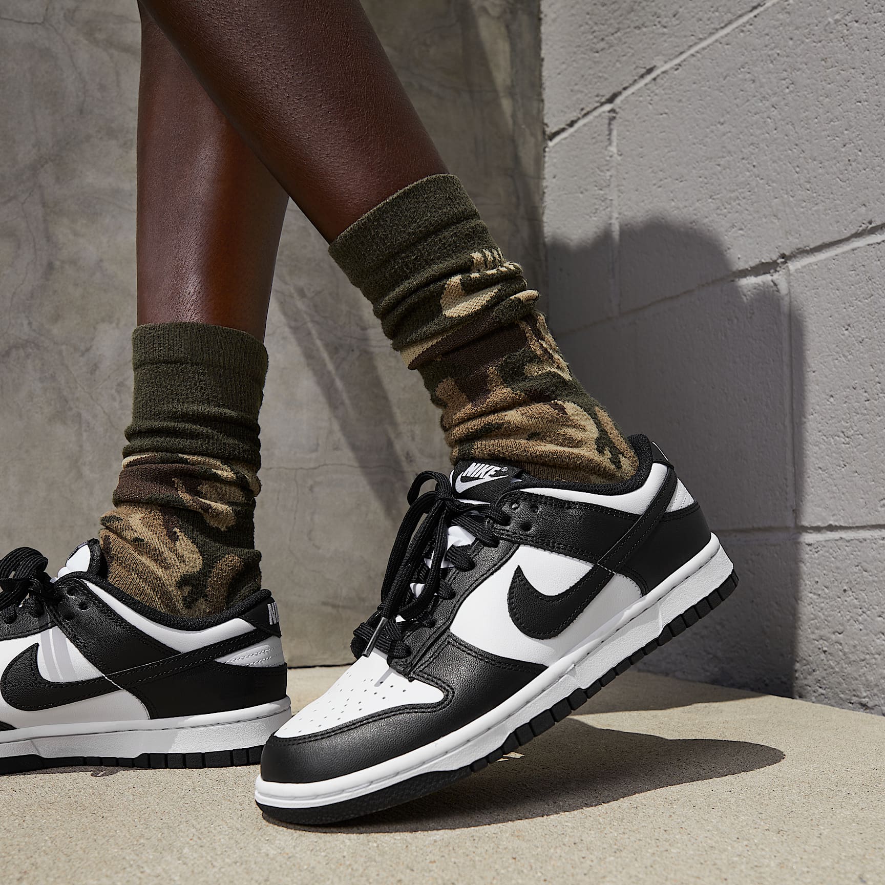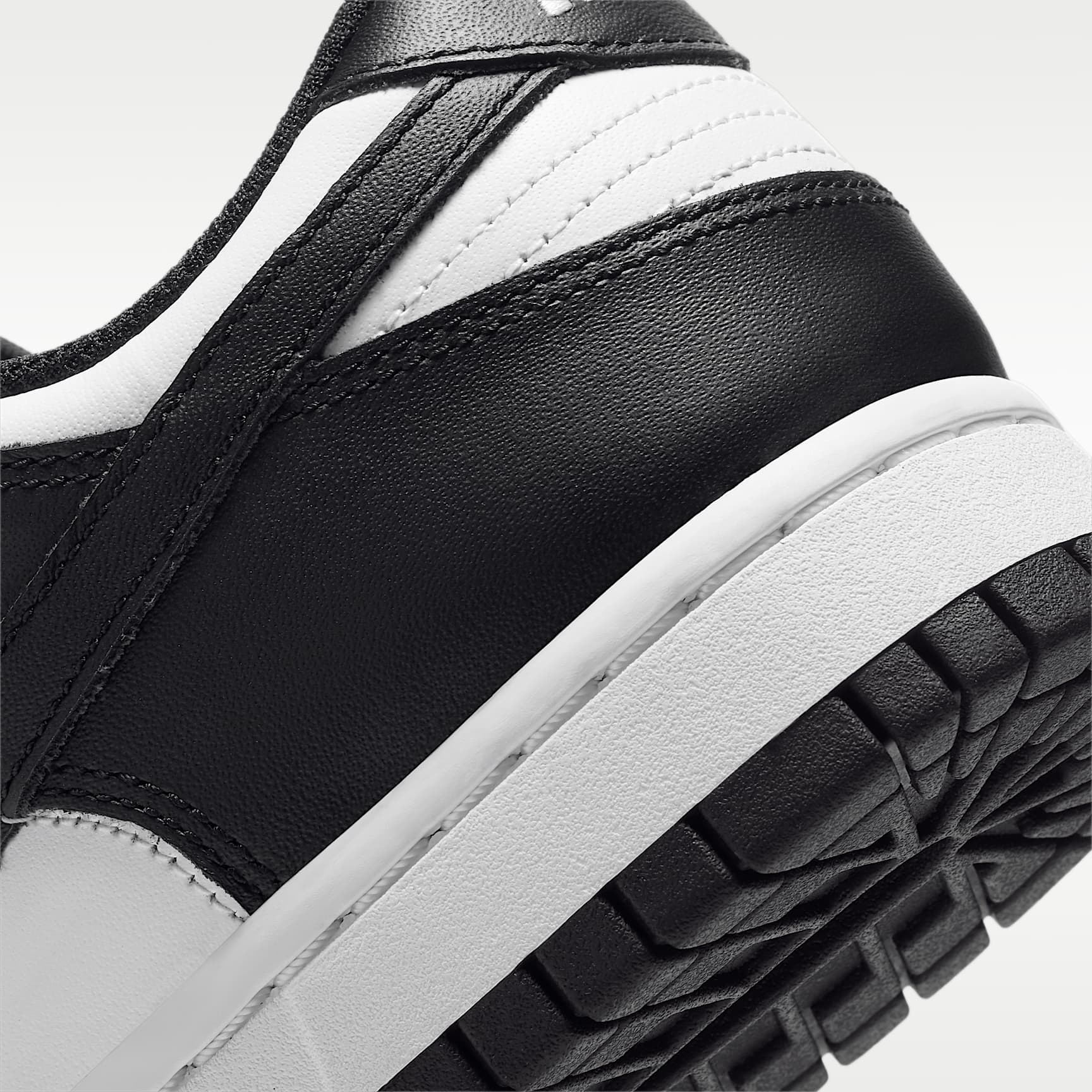 TRUE TO YOUR CREW. Created for the hardwood but taken to the streets, the '80s b-ball icon returns with perfectly shined overlays and classic team colours. With its iconic hoops design, the Nike Dunk Low channels '80s vintage back onto the streets while its padded, low-cut collar lets you take your game anywhere—in comfort. Benefits * The crisp leather on the upper has a slight sheen, ages to soft perfection and features durable overlays reminiscent of '80s b-ball. * The foam midsole offers lightweight, responsive cushioning. * The padded, low-cut collar adds a sleek look that feels comfortable. * The bold colour-blocking on select versions returns to the university colours released in 1985, letting you choose who reigned supreme and rep your team. * The rubber sole with a classic hoops pivot circle adds durability, traction and heritage style. Product Details * Low-cut collar * Foam insole